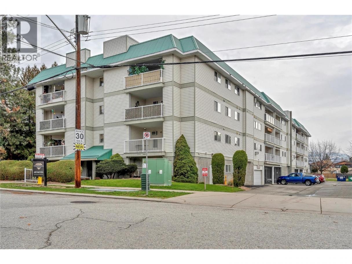 Corner, 2 bed 2 bath condo with view in the center of town. Walk to downtown, walk to malls. Everything is so handy. Enjoy this well-maintained spacious home with full laundry, generously sized bedrooms toward the quiet side of the building, walk through closet for main bedroom, balcony toward the street, and the benefits of being in a corner unit. New hot water tank. Well run strata with maintenance under control. There will be nothing to do except arrange the furniture and enjoy your new place. Cats welcome, 55 plus age restriction, and nonsmoking bylaw. Dry underground parking and storage unit ready for your use. (id:6769)