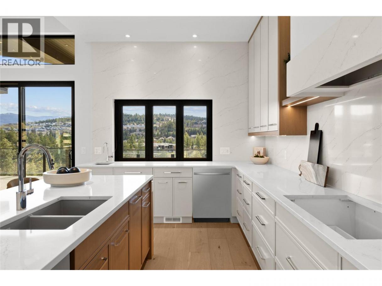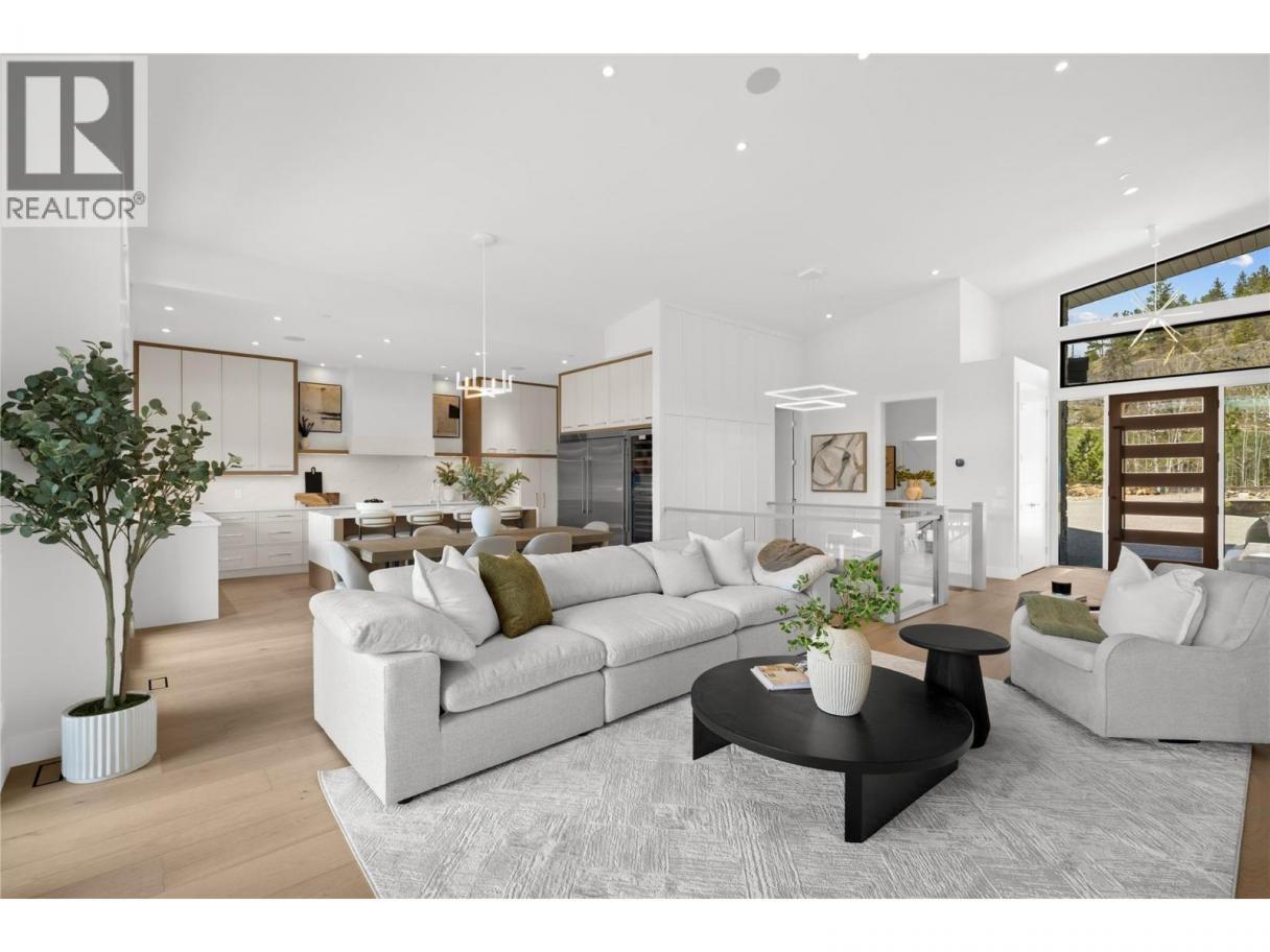Nestled in the heart of the Okanagan, Predator Ridge Properties offers an unparalleled blend of luxury homes, breathtaking views, and resort-style amenities—perfect for those seeking an elevated lifestyle in a vibrant, master-planned community. In the prestigious Wildsong enclave this just-completed Serenity Peak build, by award-winning Carrington Homes, is a masterpiece. The 5-bed, 4-bath walkout rancher spans over 3,700 sq.ft., featuring soaring ceilings, accordion and pass-through windows, and high-end finishes. The open-concept layout highlights a designer kitchen with a massive island, floor-to-ceiling cabinets, and a walk-through pantry. The luxurious primary suite offers sweeping views, an ensuite with heated floors, and a spacious walk-in closet roughed-in for laundry. Two additional laundry areas provide added flexibility. Enjoy outdoor living with a covered deck, walkout patio with built-in speakers, low-maintenance yard, and in-ground saltwater pool with an automatic cover. A 3-car garage completes this exceptional property, located minutes from Sparkling Hill, Predator Ridge Golf Course, Silver Star, downtown Vernon, local beaches, and parks. Community residents enjoy access to championship golf, a state-of-the-art fitness centre, pool, racquet courts, hiking and biking trails, dining, a local market, community events, and a wellness-focused lifestyle. Live the luxury Okanagan lifestyle with Predator Ridge Properties. GST applicable. (id:6769)