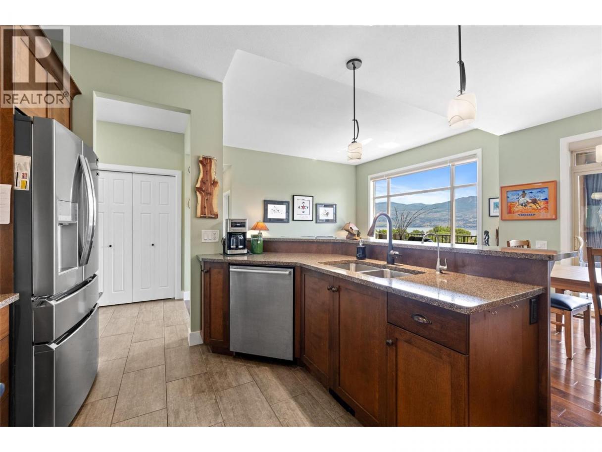 Discover exceptional Okanagan living in this well-maintained gated community of Sonoma Pines. The main level of this walk-out rancher features panoramic lake and mountain views, an open-concept living, dining and kitchen area, a primary bedroom with ensuite and a walk-in closet, an office (easily a bedroom}, full bathroom, laundry, double garage, and a deck with 2 privacy screens, awning and a BBQ gas hookup. The lower level offers a spacious family room with 3 bedrooms, plus a full bathroom, and a patio. Throughout the home there are newer appliances: fridge (2023) range (2022) washer and dryer (2022) water tank (2023), as well as carpets (2023). The kitchen and all bathrooms feature granite counter tops. Located within the Sonoma Pines community there are no age restrictions. Residents enjoy a clubhouse with a gym, library, pool tables, shuffleboard, a full kitchen and events room. Sonoma Pines is ideally located close to Gellatly Walkway, beaches, hiking trails, golf, wineries, restaurants, shopping and the Westside Farm Loop. No PTT or Speculation Tax. THIS ONE IS AVAILABLE AND EASY TO SHOW! (id:6769)