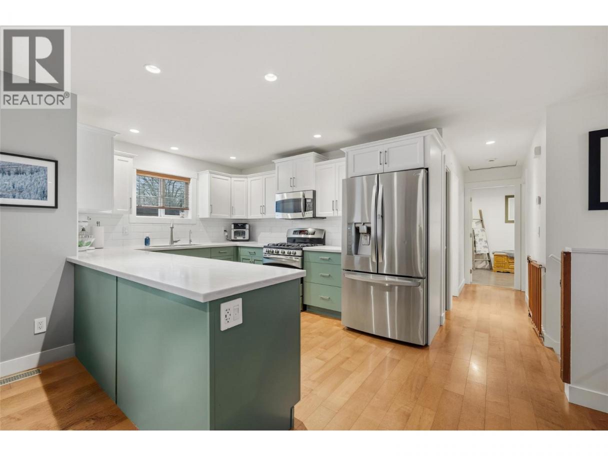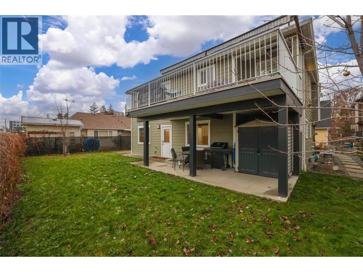 This stunning property is located in downtown Kelowna, just a short walk away from shopping, dining, green spaces, and designated walking and biking paths. The main level features a versatile bedroom/office and ample storage space. One bedroom, one bath private entry suite, with new carpets, laundry facilities, and a private patio. The upper level showcases a bright, open-concept layout that includes a spacious dining and living area, complete with a cozy fireplace perfect for chilly winter days. The upgraded kitchen features stainless steel appliances, ample cupboard space, and wraparound counters ideal for meal prep and baking. The large balcony off the dining area is perfect for entertaining. The large primary suite offers custom closet space, laundry facilities, and a four-piece ensuite bathroom. Additionally, there is another bedroom and bathroom, completing the floor. The property also includes a two-car garage, two tandem parking spots for the suite or RV or boat storage, and extra parking on the left side of the house. (id:6769)