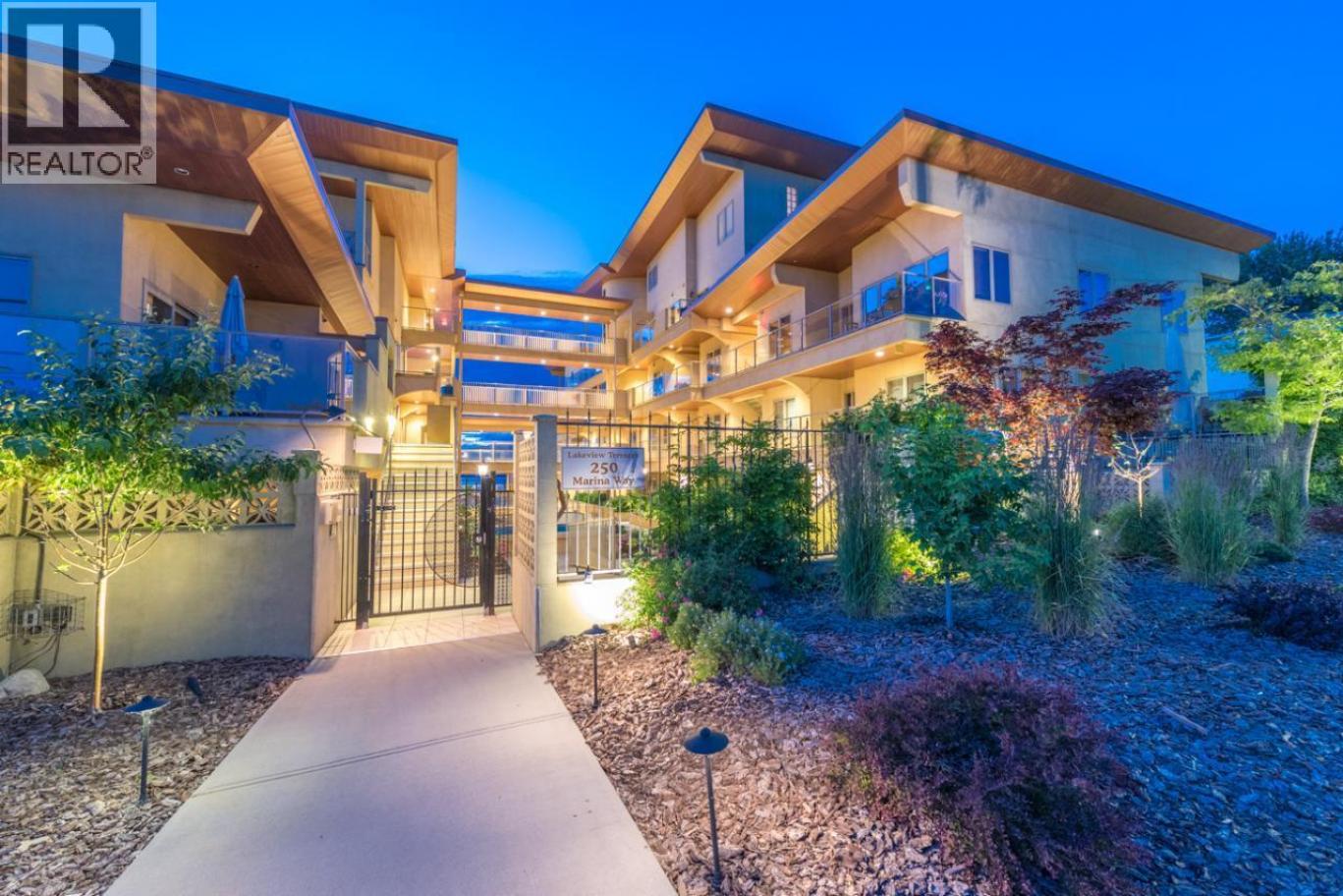 Built with convenience and luxury in mind, Lakeview Terraces is a stunning piece of architecture that rests across from Okanagan Lake waterfront. Found within is this wonderful, east facing, 3 bedroom, 2 bathroom condominium offering is a loft style primary suite, expansive windows, 2 gas fireplaces, 2 entertainment patios and views to the lake. Comes with 2 secured parking spaces, a storage locker and almost everything is included in the strata fee. Complex offers a recreation centre, fitness room, outdoor pool and beautiful fountains and statues. Beach, marina, yacht club and downtown amenities are all just steps away! (id:6769)