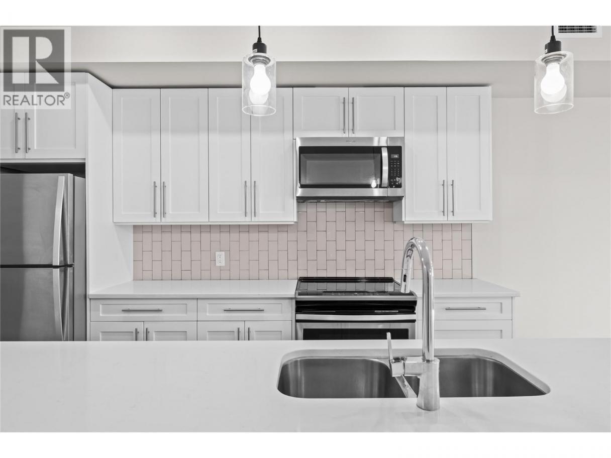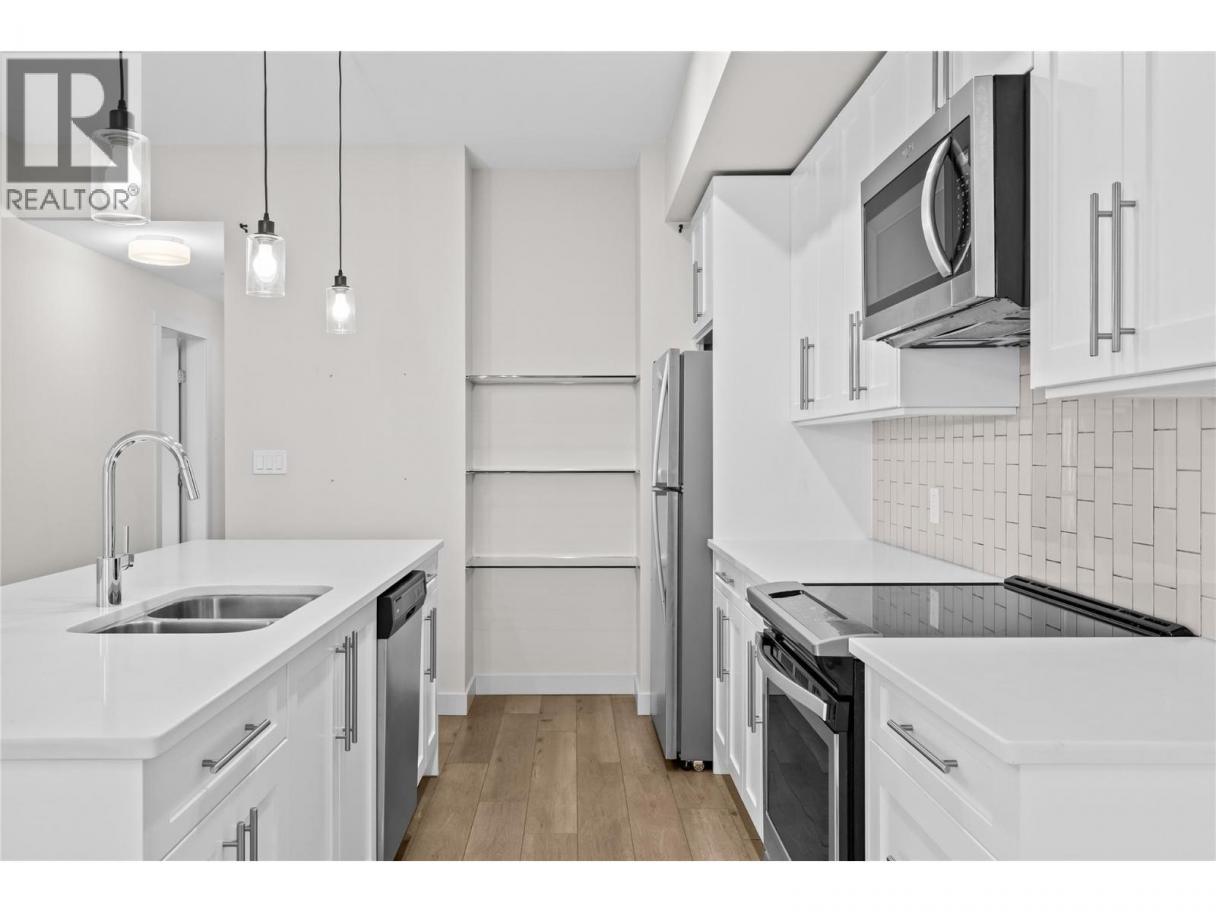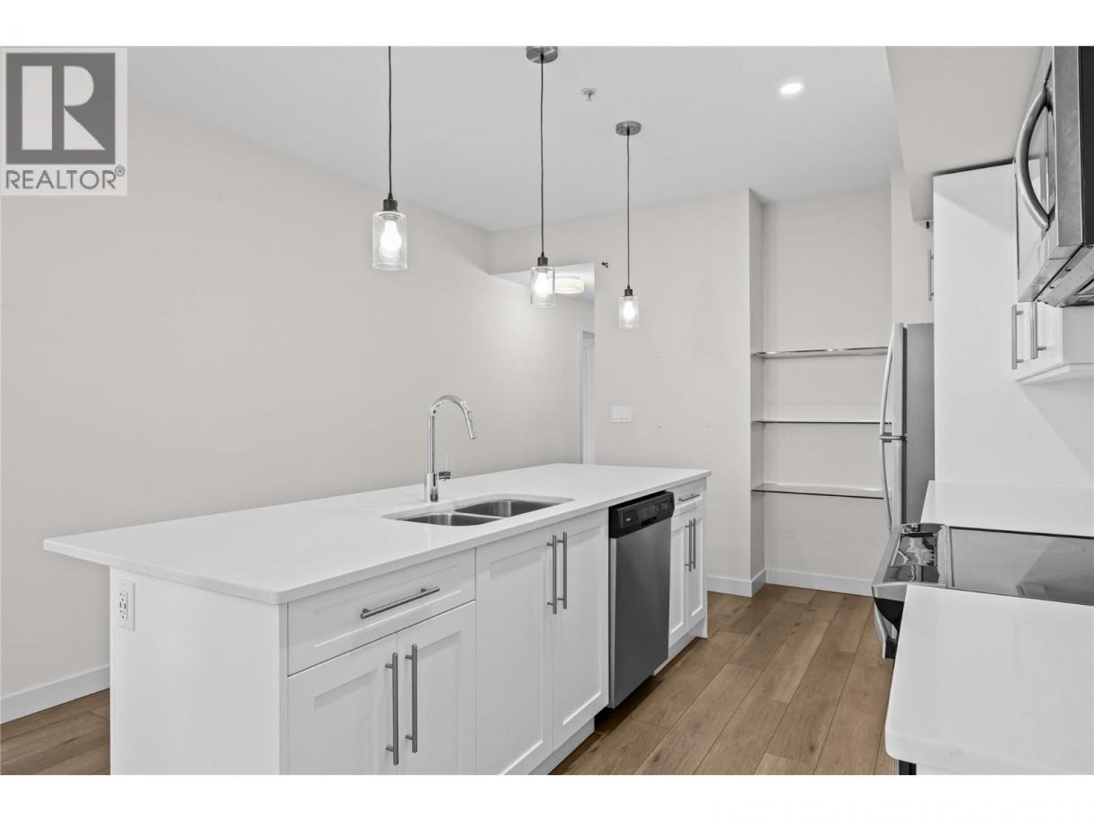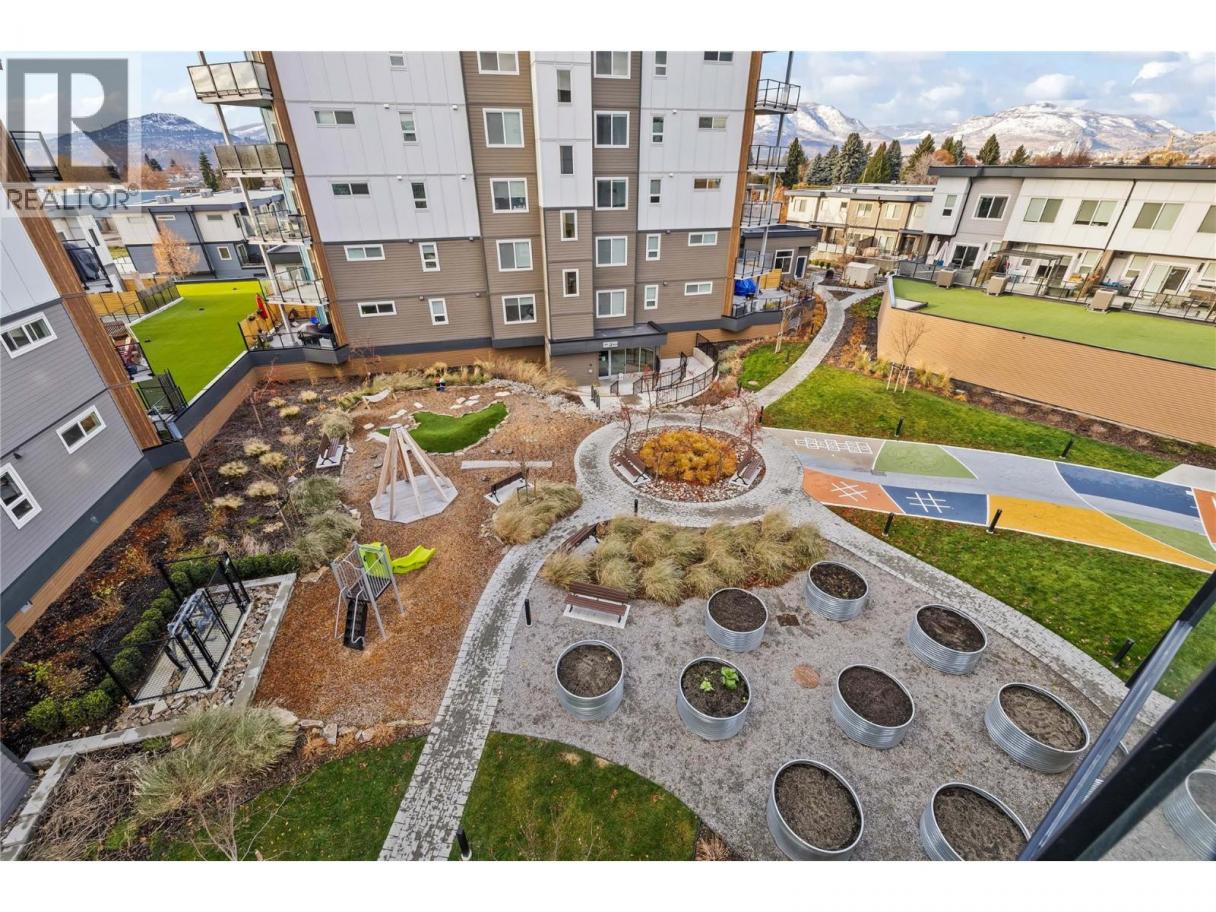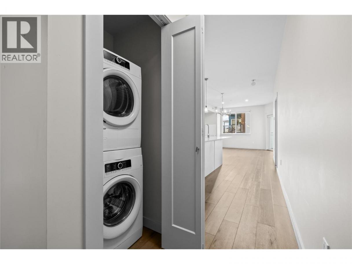 Introducing an extraordinary opportunity at Green Square—an exceptional condo that sets the bar for modern Lower Mission living. Perfectly situated on Mission Springs Dr, this home offers unmatched walkable convenience to some of Kelowna's best beaches, boutique shopping, restaurants, recreation like the H2O Centre and bike trails. This spacious floor plan offers 892 sqft. of thoughtfully designed space with 2 bedrooms, 2 bathrooms, 1 secure underground parking stall and a external storage locker! The open-concept layout welcomes you with abundant natural light from the large bright windows. High-end finishes include quartz countertops, European-inspired flat panel cabinetry, chrome fixtures, and stainless steel appliances, creating a sleek contemporary feel. Step onto the covered, SW-facing corner patio with a gas BBQ hookup—ideal for relaxing or entertaining. Green Square delivers an impressive array of lifestyle amenities for the development: enjoy the rooftop patio, tend to the community garden, or stay active in the fitness facility. Added conveniences include a dog/bike wash station and secure bike storage. A rare offering in one of Kelowna’s most desirable neighbourhoods. This home is vacant and ready for a quick possession! (id:6769)