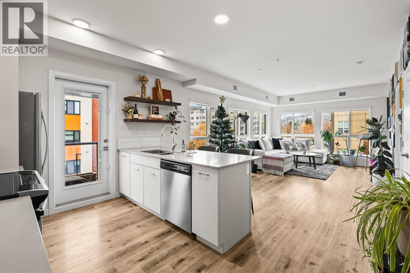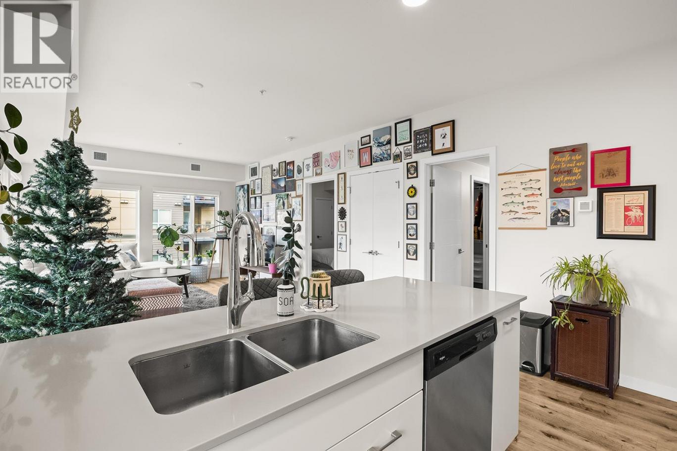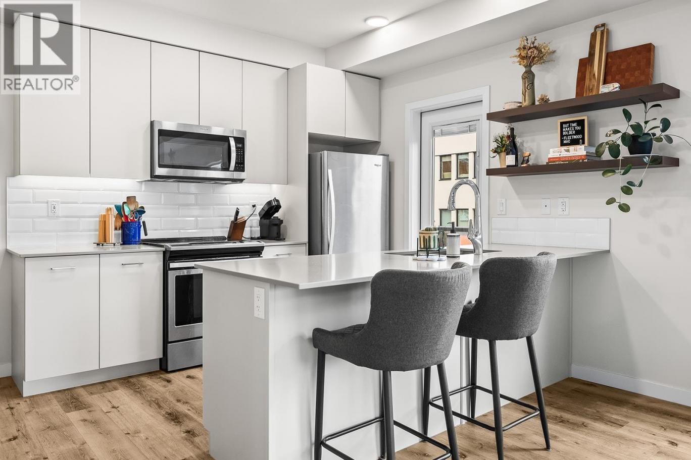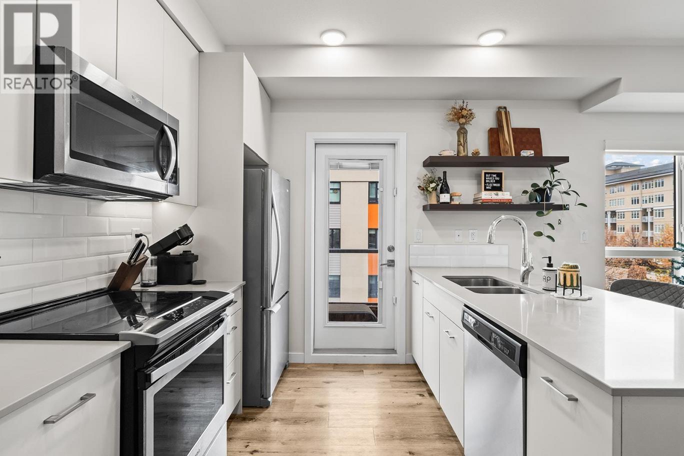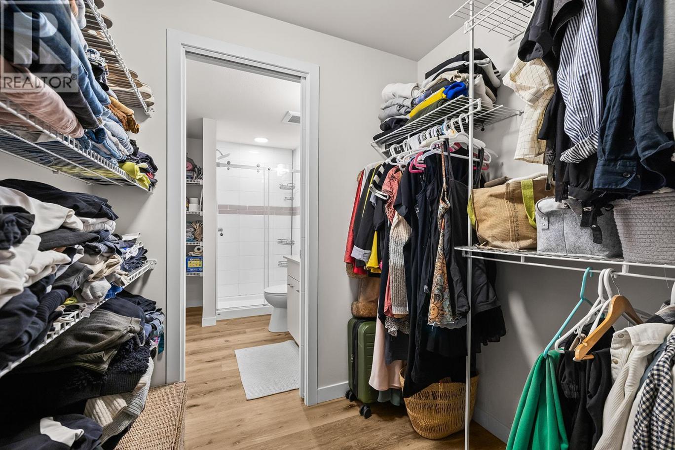 A bright and modern corner unit in the heart of Glenmore, this thoughtfully designed condo offers stylish living in one of Kelowna’s most convenient neighborhoods. This thoughtfully designed home features a sought-after split floorplan, giving each bedroom its own walk through closet and direct access to a full bathroom. Large windows on multiple sides fill the space with natural light, complementing the open concept layout and contemporary kitchen with quartz countertops, stainless steel appliances, and soft-close cabinetry. Enjoy a covered balcony for outdoor relaxation, plus building amenities such as a guest suite, rooftop terrace with BBQ area, bike storage, and a dog wash station. Just minutes to downtown, UBCO, shopping, parks, transit, and all Glenmore conveniences, this is modern living in an unbeatable location. (id:6769)