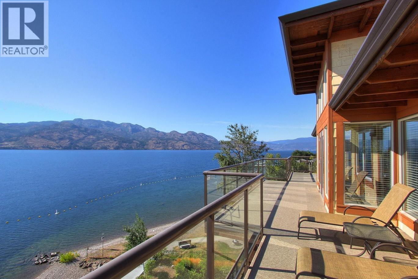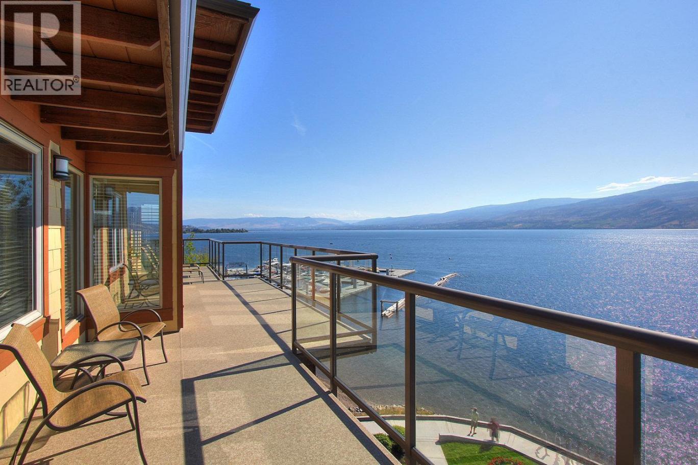 Welcome to your dream home at The Cove! This luxury 3 bedroom, 3 bathroom Penthouse, almost 1,500sqft is perfectly located front-row, lakefront with unparalleled panoramic views of the lake, surrounding mountains, and twinkling city lights. A ginormous 743 sq ft wrap-around deck, this is truly a lake view like no other, so close you’ll feel like you can reach out and touch the water. Inside, you’ll find spacious living spaces with newer engineered hardwood floors, granite countertops, and rich wood cabinetry. Three sets of French doors seamlessly connect indoor comfort with outdoor living, perfect for entertaining or unwinding in total serenity. Offered fully furnished and turnkey, this unit is move-in or rental-ready, with optional on-site rental management available. Located in a year-round vacation destination, residents enjoy access to resort-style amenities including a fitness center, private sandy beach, restaurant & lounge, two seasonal pools with hot tubs, waterslide, tennis & pickleball courts, the pampering Spa at The Cove, a private theatre, putting green, and scenic fire pits & BBQ areas. The Cove also sits directly between two world class alpine resorts, only 75 minutes to Big White Mountain and 95 minutes to Apex Mountain Resort. Family- and dog-friendly, this unit can’t be beat! This is lakeside luxury living at its finest, whether you’re looking for a private escape, a savvy investment, or both, allowing short term or long term rentals. (id:6769)