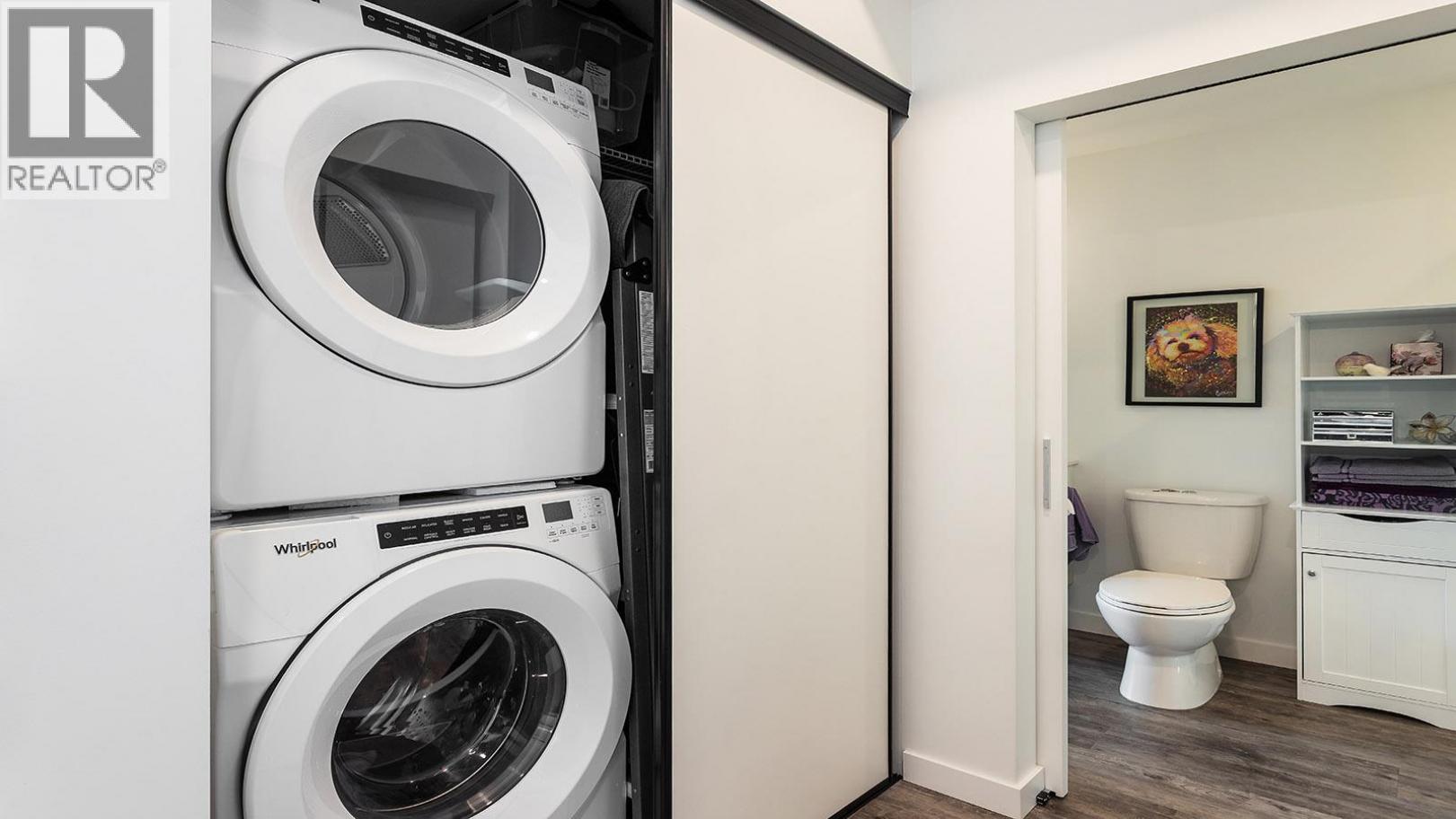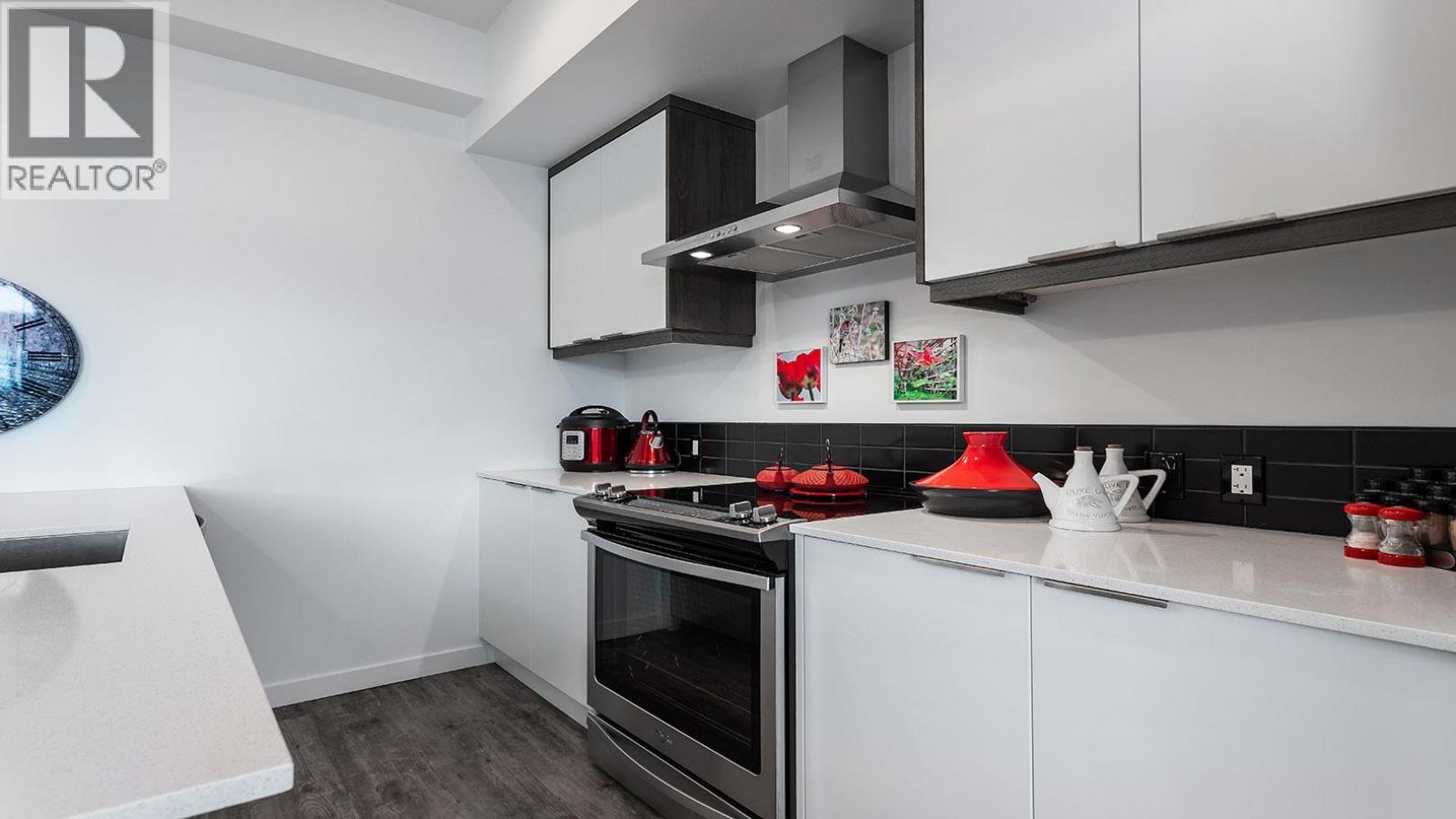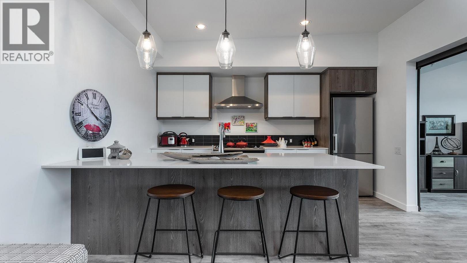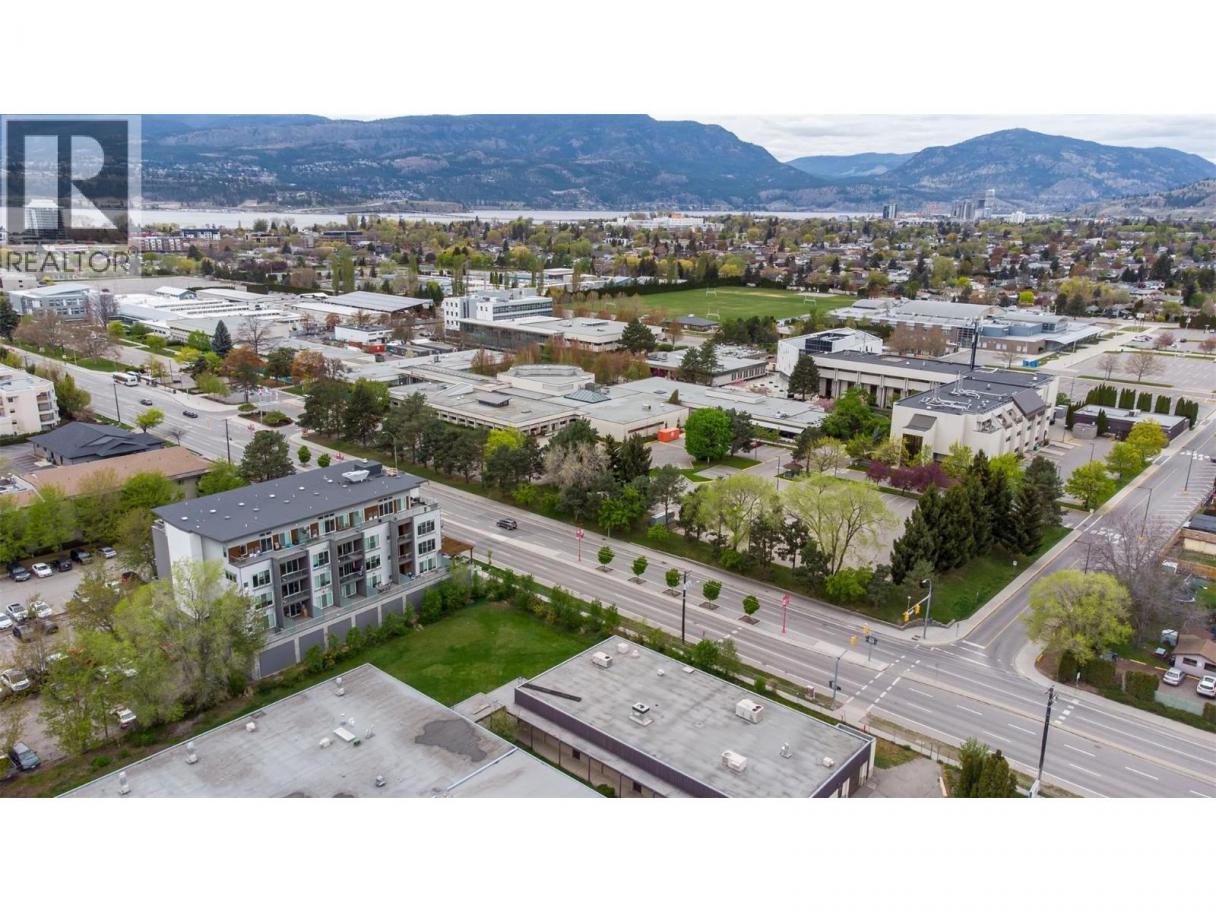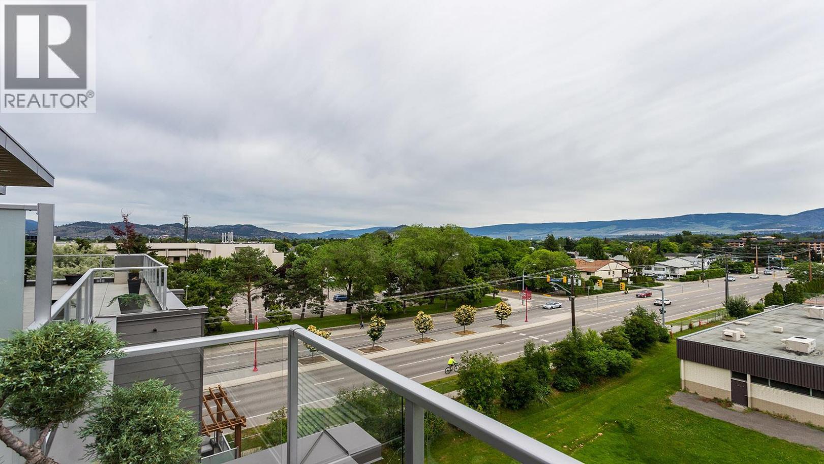 Welcome to SOLE on KLO — a bright, contemporary retreat perfectly positioned in the heart of the Lower Mission. This 1 bedroom plus den, 1 bathroom residence offers effortless modern living with a rare nearly 300 sq. ft. outdoor terrace capturing expansive east-facing mountain views and gentle morning light. Inside, an open-concept layout is enhanced by sleek finishes, including quartz countertops, stainless steel appliances, modern cabinetry, and durable vinyl plank flooring. The spacious den provides valuable flexibility, easily functioning as a second sleeping area with room for a queen Murphy bed, ideal for guests or hybrid living needs. The bedroom is paired with a well-appointed bath featuring clean, modern lines and a glass-enclosed shower. Large windows and sliding doors draw natural light throughout the home while seamlessly connecting the interior living space to the oversized terrace, perfect for outdoor dining, relaxing, and taking in the panoramic landscape. Additional features include in-suite laundry and a generously sized parking stall. Located directly across from Okanagan College and moments from the boutiques, cafes, and waterfront pathways of Pandosy Village, this residence offers exceptional walkability and a vibrant urban lifestyle. (id:6769)