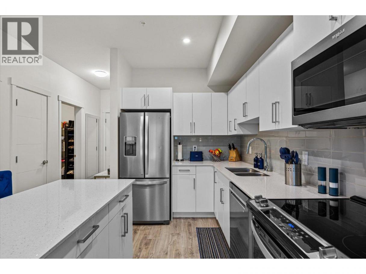 AFFORDABLE LIVING IN WEST KELOWNA - LOOKING FOR A MODERN, LIKE-NEW HOME? ABODE is a perfect place to call home for first-time buyers and retirees looking to downsize. Experience the best of West Kelowna living at ABODE, a community where lifestyle, comfort, and convenience come together seamlessly. With beaches, wineries, golf courses, trails, shops, cafes, and restaurants all close by, everything you love about the Okanagan is right at your fingertips. Inside the home, you'll enjoy a bright, open 1 BEDROOM + DEN layout enhanced by 9' ceilings and stylish vinyl plank flooring. The modern kitchen is designed for both beauty and practicality, featuring quartz countertops, flat-panel cabinetry, and stainless-steel appliances. A versatile live/work area offers added flexibility, while the 6' x 10' private deck—with a subtle lake view—creates a nice spot to unwind. You'll also enjoy 1 underground parking stall & storage locker. Life at ABODE goes far beyond your front door. The building is designed as a social hub, offering amenities such as a residents’ lounge with a big-screen TV and ping pong table, a computer nook, a full kitchen, a games room, fitness centre, dog wash station, bike repair station, guest suite, and EV charging stations. It’s a place where relaxation, activity, and community naturally come together. Add the peace of mind of a New Home Warranty. Don’t miss your chance to secure a home in this vibrant community. (id:6769)
