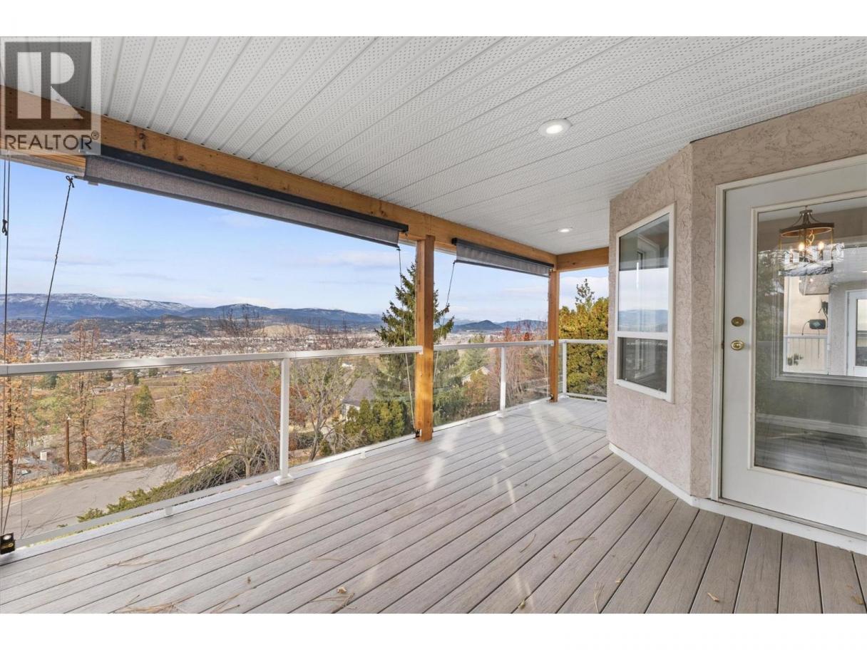 Welcome to this beautifully updated Black Mountain home offering true one-level living with panoramic lake, mountain, and city views. Set on a generous .25-acre lot, this 3-bedroom home plus main-floor office features 2,621 Sq Ft of finished living space, with an additional 700 Sq Ft of unfinished area ready for your ideas. Everything you need is conveniently located on the main floor, including the primary bedroom, laundry, and office—making it an ideal option for growing families, empty nesters, or down sizers looking for comfort without compromise. Recent updates include new flooring, fresh paint, and an impressive $30,000 deck featuring durable composite boards—perfect for entertaining or simply soaking in the views. As the sun sets, enjoy watching the skyline come alive from your expansive outdoor space. Built in 1993 and thoughtfully refreshed, this home blends solid construction with modern touches. Located just minutes from wineries, Black Mountain Golf Course, parks, schools, dining, and shopping, this neighbourhood offers an active, family-friendly lifestyle. Big White Ski Resort is only 40 minutes away for winter adventures, while summer brings endless hiking and biking opportunities. A rare combination of views, functionality, and location—this is a home you’ll love coming back to every day. (id:6769)