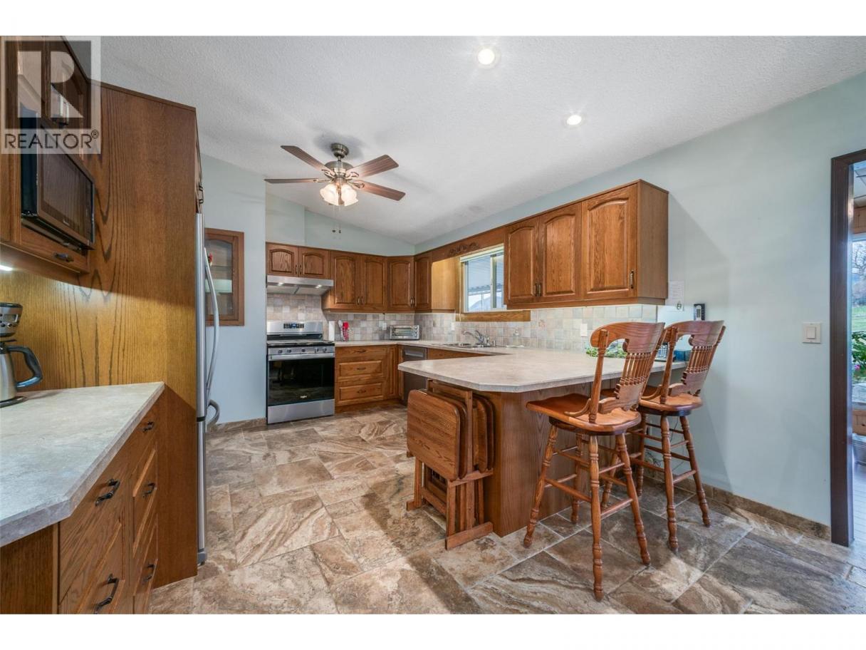 First time on the market, this immaculate 3 bdrm/2.5 bath home sits proudly upon a .46 acre lot, at the end of a quiet no-thru road. Pride of ownership is evident throughout this perfect family home w/lovely curb appeal. The beautifully landscaped, fully fenced yard offers a Y-shaped driveway w/ample parking for RV/boat/toys! Inside, the welcoming foyer leads to a bright upper-level w/vaulted ceilings in the kitchen, dining & living areas. The custom kitchen features warm wood soft-close cabinetry, new s/s appliances incl. gas stove, Italian tile backsplash & travertine flooring. A sunny UV & heat protected sunroom overlooks the peaceful backyard, while the living room w/its cozy wood-burning fp, offers lake, winery & mountain views. The upper level further incl. a sizeable primary bdrm w/2 walk-in closets, a 2-piece ensuite plus 2 additional bdrms & a spacious main bathroom. Downstairs offers a family room w/gas fp, large storage/flex area, laundry, 3 piece bath & access to the single garage w/man door. The backyard shines w/its pristine outdoor entertainment area, covered deck w/gas BBQ hookup & hot tub surrounded by flower gardens, fruit/ornamental trees & shrubs. Major upgrades incl. brand new roof & newer Hardie/aluminum siding, windows/doors, A/C & furnace w/humidifier, HEPA filters & U/G irrigation. Access to backyard from side & rear vehicle gates PLUS driveable alley way behind. Just a 15-minute walk to downtown West Kelowna & close to schools, shopping & amenities. (id:6769)