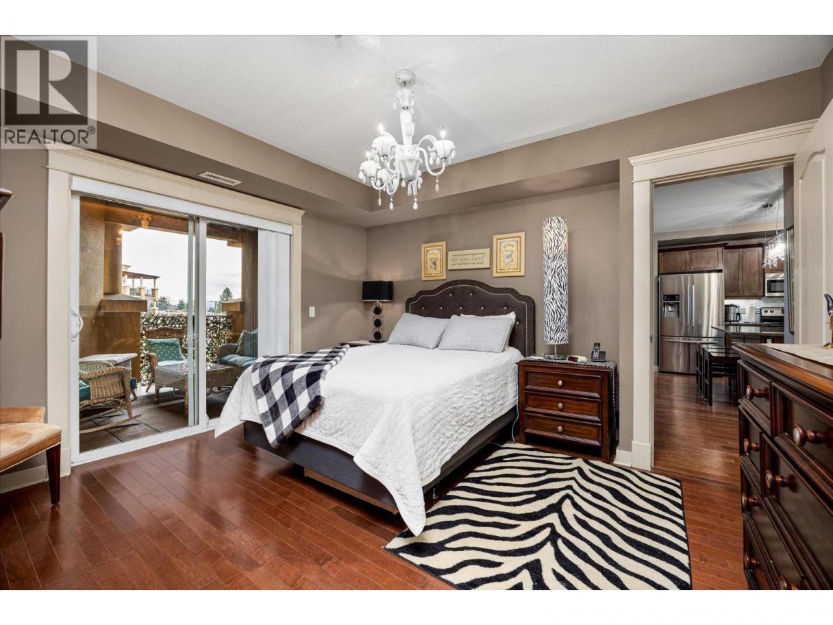 Experience panoramic lake and mountain vistas from this refined fourth floor condo, thoughtfully designed for comfort, luxury, and privacy. Gleaming hardwood floors run throughout the bright, open-concept living area, anchored by a sleek gourmet kitchen with stainless steel appliances, granite countertops, and a large bar island that’s perfect for both entertaining and everyday living. The highly sought-after dual primary layout offers exceptional flexibility, with two spacious bedrooms, each featuring its own walk-in closet and spa-inspired ensuite. A versatile den and third full bathroom provide ideal space for a home office, media room, or guests. Indoor living flows seamlessly onto two private decks—host gatherings on the main deck overlooking Okanagan Lake, or relax on the second deck framed by tranquil mountain views. Additional highlights include secure underground gated parking and a generous storage locker. Situated on the renowned Boucherie Wine Trail, you’re just minutes from wineries, beaches, golf, and all Westbank amenities. This is Okanagan living at its finest. (id:6769)