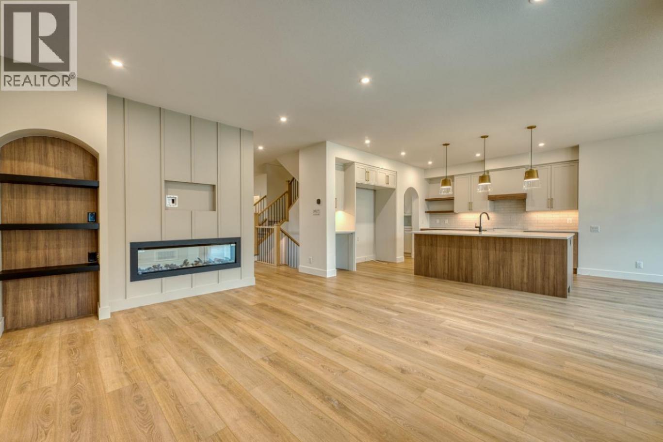 The Olive, a modern farmhouse by Carrington Home, is a stunning new build located in the Orchard in the Lower Mission. Designed with a soft, inviting color palette, this thoughtfully laid-out home offers the perfect balance of style and function. The spacious open-concept living area features custom arches and a striking double-sided electric fireplace that connects the great room and home office. The chef’s kitchen includes a large island, plenty of cabinets, and a 10pc appliance package. A butler’s pantry and mudroom enhance organization and convenience. Upstairs, the luxurious primary bedroom boasts vaulted ceilings, a faux-wood beam, and electric fireplace, enjoy a spa-like ensuite with dual vanities, and a walk-in closet. Two additional bedrooms, a full bath, and a bonus room complete the upper level. The finished basement includes a rec room with an electric fireplace and is roughed in for a potential future development. The Olive offers timeless elegance and modern living. GST Applicable (id:6769)