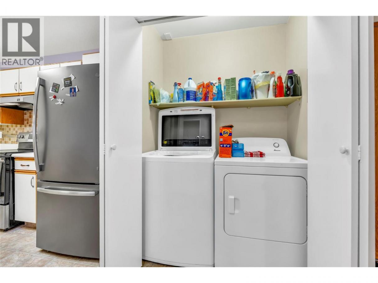 Enjoy easy, low maintenance living in this bright and welcoming condo designed for comfort and convenience. The open concept layout connects the living and dining areas to a spacious, updated kitchen featuring a newer brushed-finish appliance package and plenty of cabinetry perfect for everyday living without the upkeep of a larger home. Two generously sized bedrooms, with the primary offering a private two piece ensuite. Step into the enclosed east facing balcony and start your mornings with warm sunshine and peaceful mountain views a perfect spot for coffee, reading, or simply unwinding. This home includes in unit laundry, covered carport parking, and a private storage locker. The well managed 55+ complex offers a social room, and games room creating a friendly community atmosphere for those looking to stay active and connected. Ideally located within walking distance to Walmart, Starbucks, transit, and scenic Shaka Lake, this is a wonderful opportunity for downsizers seeking comfort, simplicity, and a convenient Penticton lifestyle. Hot water is included in the condo fee (id:6769)