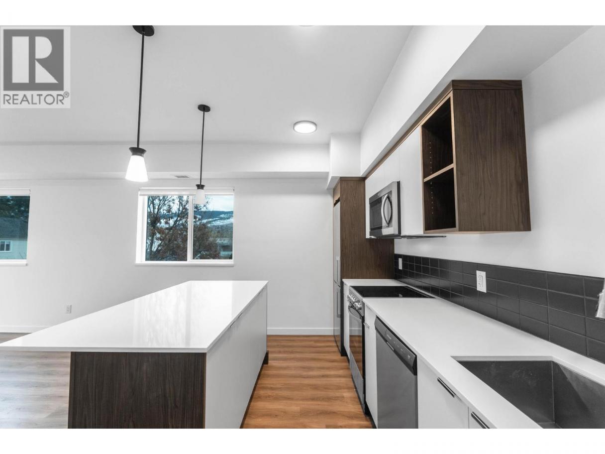 Welcome to Sole Rutland—where convenience meets contemporary living. This modern 3-bedroom corner-unit condo offers an unbeatable location just steps to schools, a one-minute drive to essential amenities, and only 10 minutes to UBC Okanagan. Whether commuting or heading to the mountains, you’ll appreciate being just 40 minutes from Big White Ski Resort. The bright, open-concept layout is ideal for entertaining, featuring a stylish kitchen with stainless steel appliances, a functional island, and in-suite laundry, forced air heating/cooling. Step onto your private deck and enjoy both morning and evening sunshine—perfect for relaxing year-round and located on the quiet side of the building. The primary bedroom includes a walk-in closet and a 3-piece ensuite with stand-up shower for added comfort. Additional highlights include two parking stalls, a secure storage locker, and a move-in-ready condition in a thriving, growing community. Great investment with 3 bedrooms, book your showing today! (id:6769)