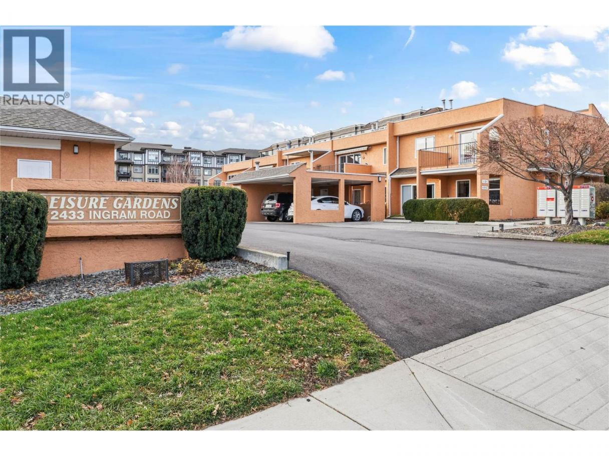 Great Location & Price! Lovely 2 bedroom home in Leisure Gardens. Centrally located minutes from shopping, other amenities, walking trails & wineries. This ground floor, corner unit is bright and open and perfectly located within the community. Kitchen has views to the lake & newer appliances.The large living room area with gas fireplace & newer solar blinds has direct access to your spacious patio.Covered parking is also right outside your patio door. Enjoy the best of convenience and tranquility in this 55+ community. 1 dog or 1 cat allowed, max 14"" at the shoulder Strata fee includes heat for the unit and gas for the fireplace! (id:6769)