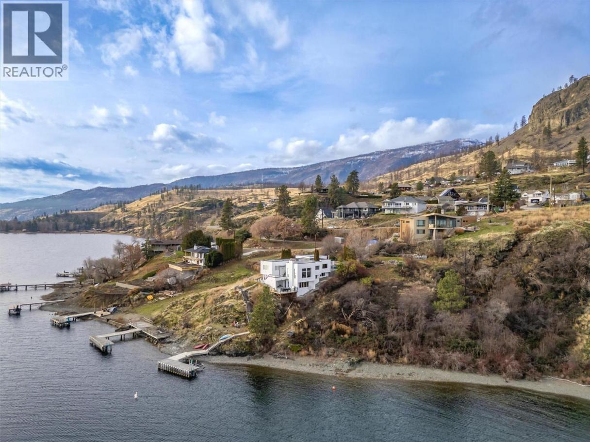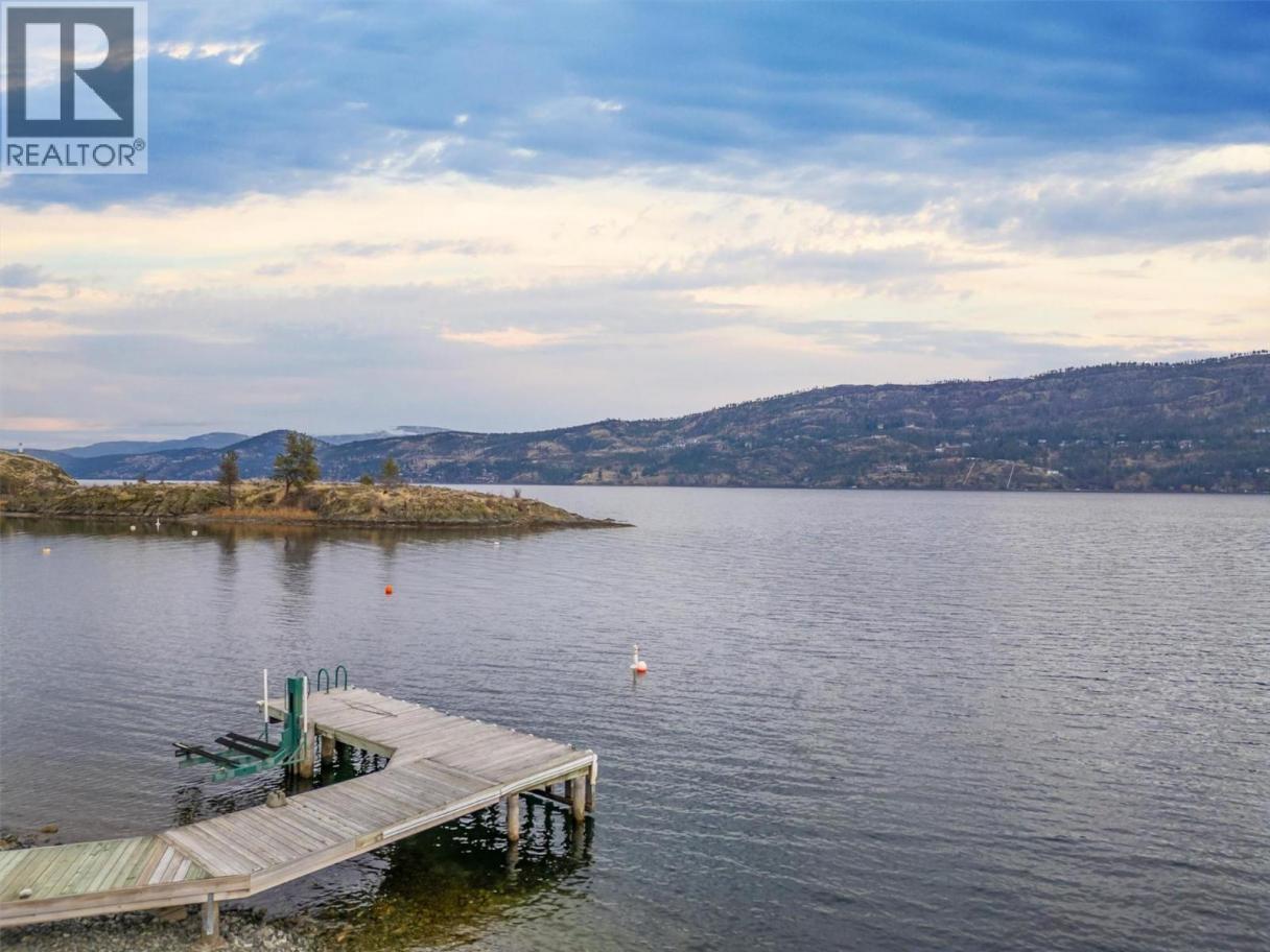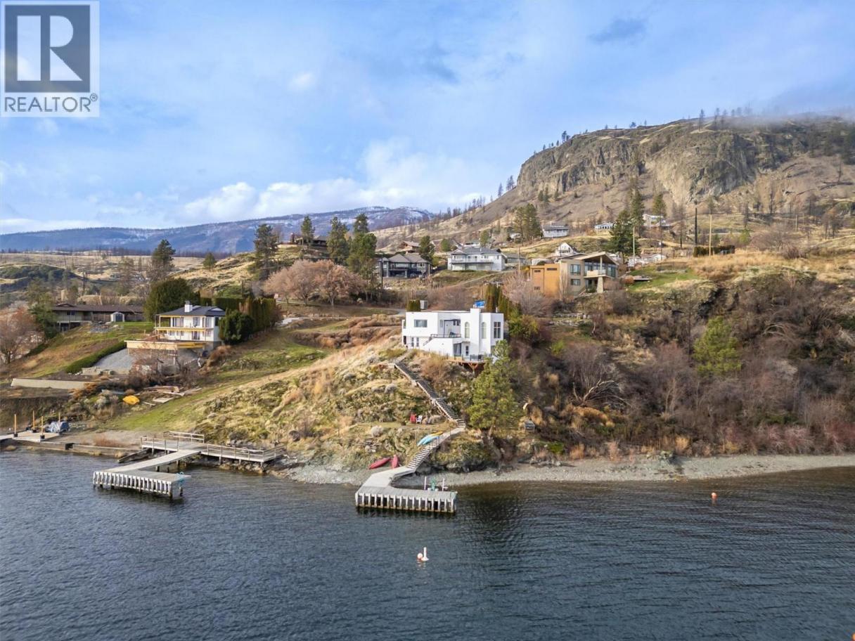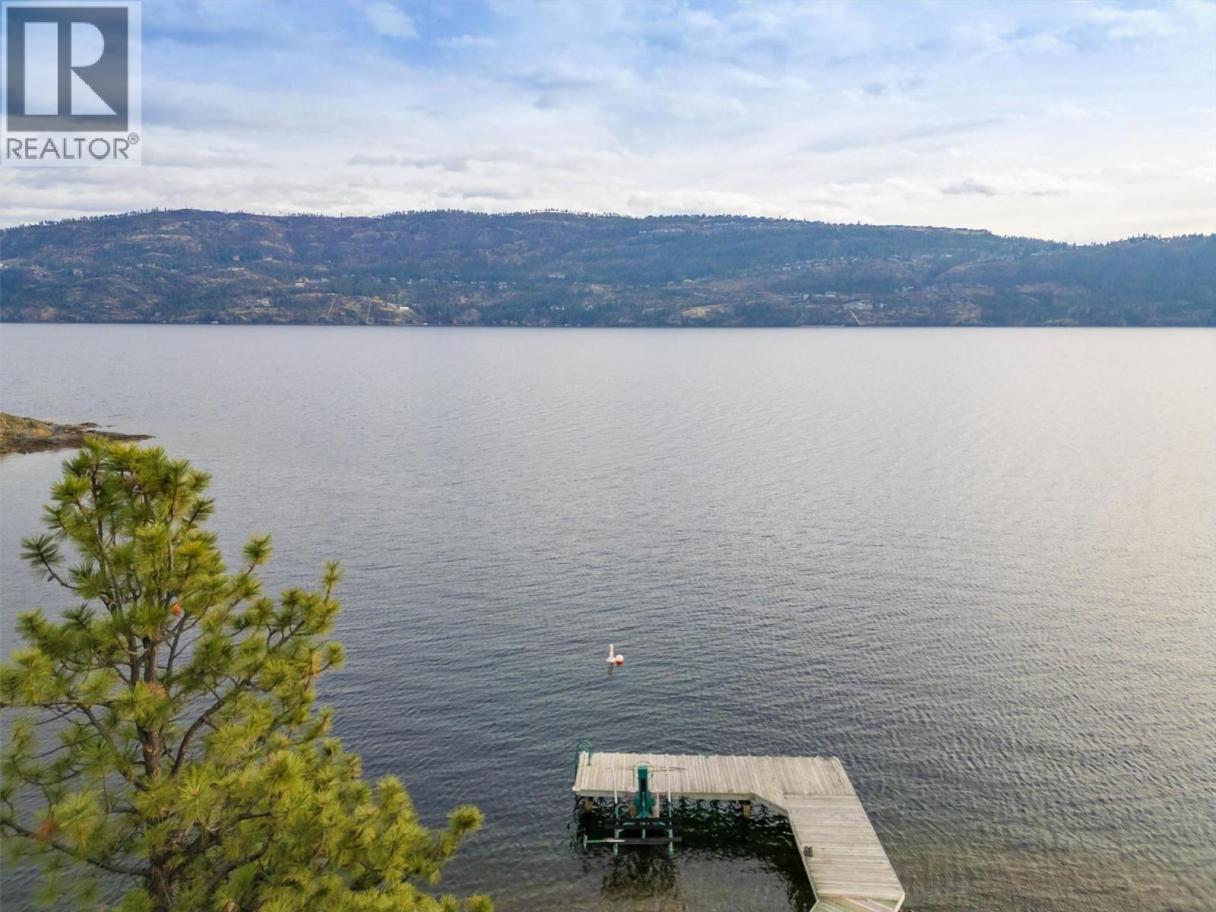 A rare opportunity to own an architectural gem on Okanagan Lake. Welcome to 15 Traders Cove Road. This striking home offers over 70 ft of private lake frontage with panoramic, unobstructed views across Traders Cove Regional Park. Thoughtfully renovated, the residence features vaulted ceilings and oversized windows that invite natural light and frame breathtaking views. The modern kitchen includes quartz counters, a gas range, and custom cabinetry. Multiple lake-facing decks create seamless indoor-outdoor living, while well a custom stair well leads to a private dock with deep-water moorage, a lakeside fire pit, and a kayak launch area. The lower-level suite, with its own kitchen and entrance, is perfect for guests, extended family, or a B&B. Surrounded by parkland, the home enjoys exceptional privacy and is alive with wildlife: birds, deer, and more. At the top of the lot, there may be potential to build a detached garage or carriage house, offering even more flexibility for future use (buyer to verify with municipality). Outside the Speculation & Vacancy Tax zone, this turn-key property is ideal as a full-time residence or seasonal getaway. Newly installed solar panels bring down operating costs and are a great compliment to the electric heat. Peaceful Traders Cove is just minutes by car or boat from downtown Kelowna. (id:6769)