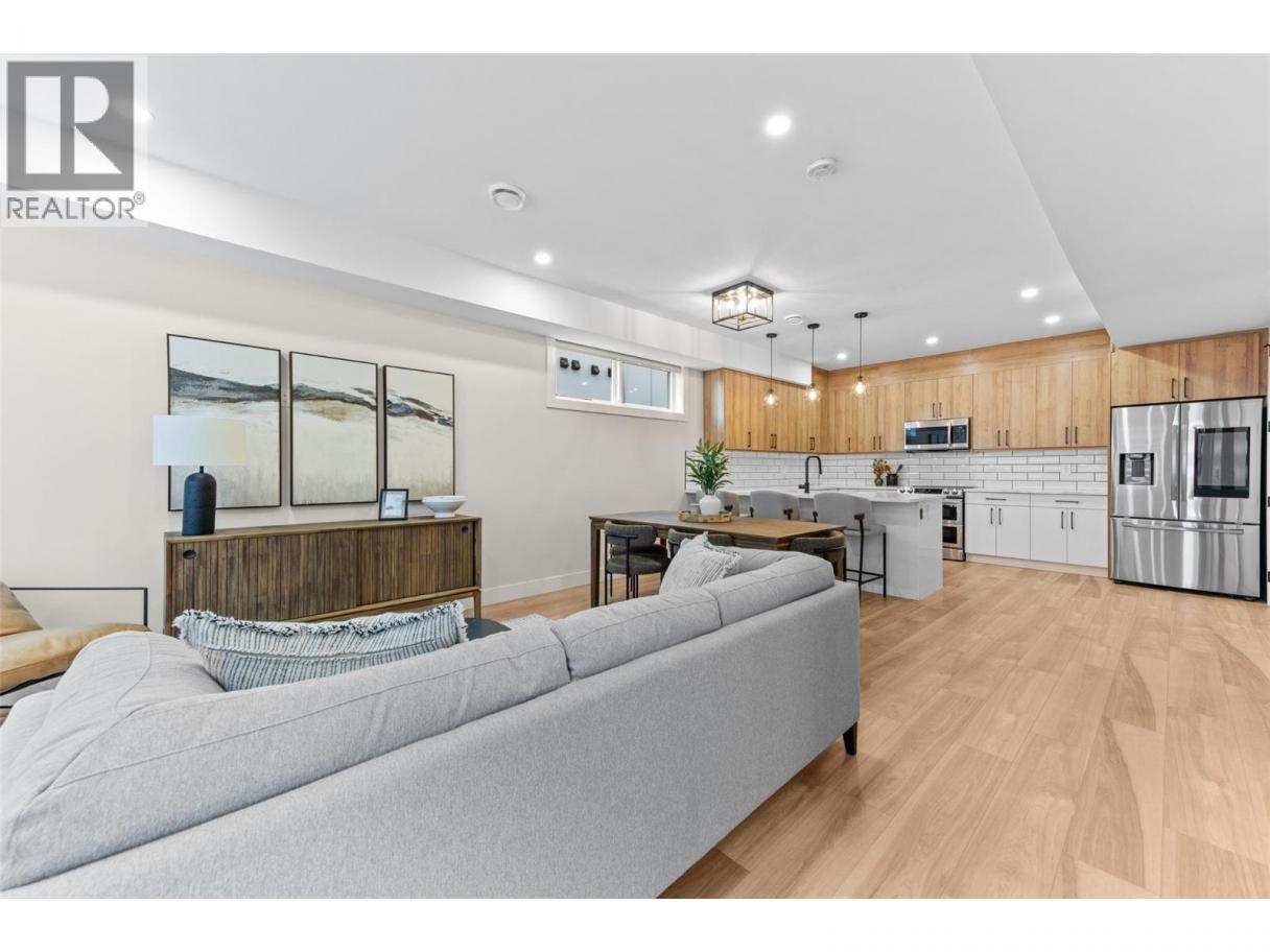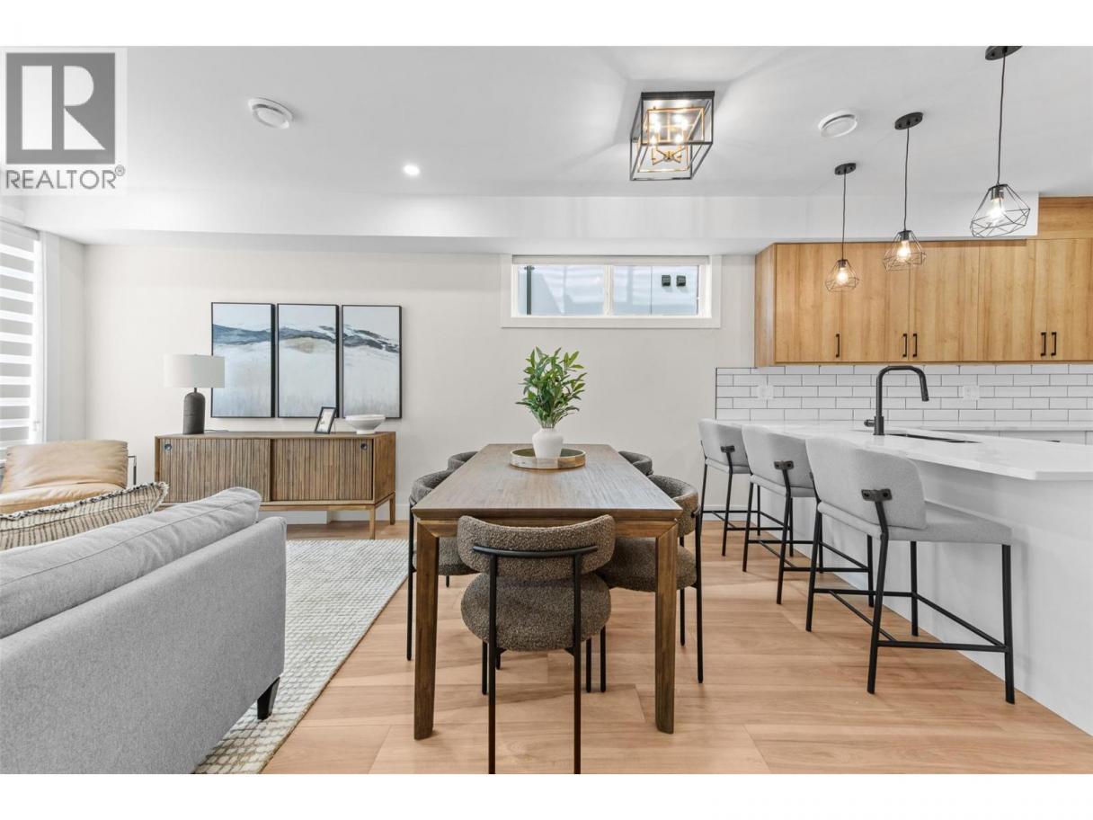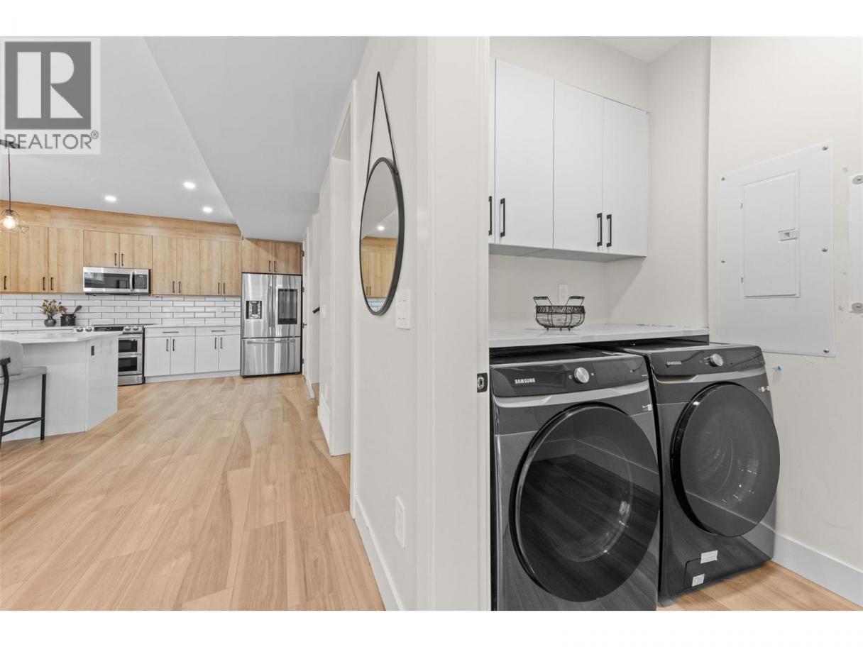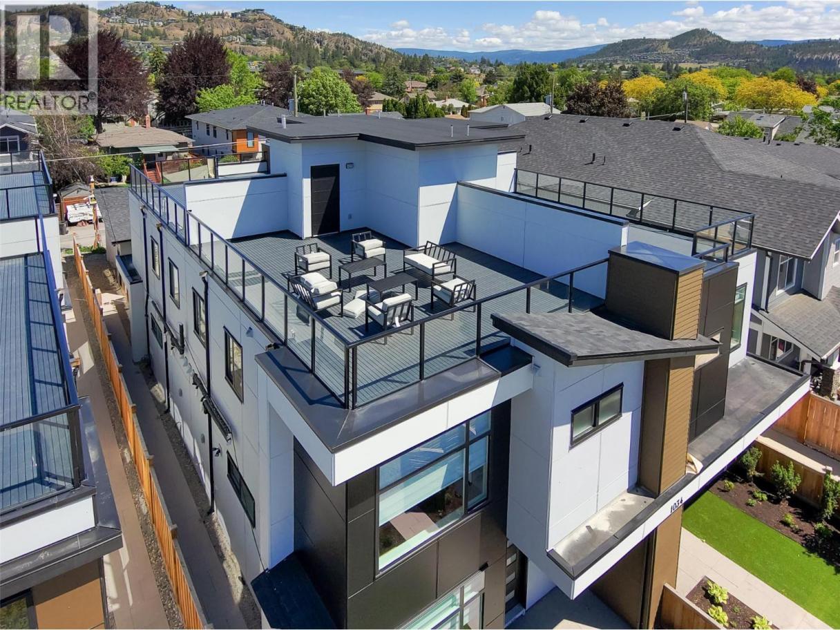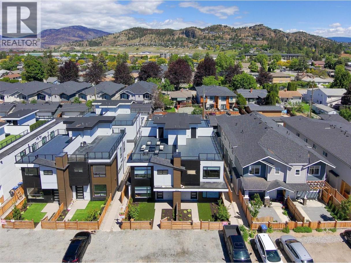 This brand-new townhome in Kelowna’s vibrant downtown core offers 3 bedrooms, 3 bathrooms, and two spacious patios, including a rooftop patio with stunning mountain views, designed for exceptional outdoor living. Centrally located, it is just steps from all downtown amenities and incredible outdoor recreation, making it the epitome of urban living. The open floor plan boasts a large kitchen with quartz countertops and two-toned cabinetry, equipped with top-of-the-line LG stainless steel appliances such as a ceramic top dual oven, fridge with quick access side panel, dishwasher, and above-range microwave, all open to the dining room and living room overlooking a private yard. The upper level features 3 bedrooms and 2 full bathrooms, including a primary suite with a generous walk-in closet and full ensuite bathroom. The expansive rooftop patio is ideal for sunbathing or future hot tub installation, offering breathtaking views. Conveniently near Knox Mountain, hiking trails, shopping, schools, and within walking distance of Lake Okanagan and local beaches, this home combines urban and outdoor living with beautiful finishes and quality appliances, perfect for those seeking a new home with a great walk score. (id:6769)