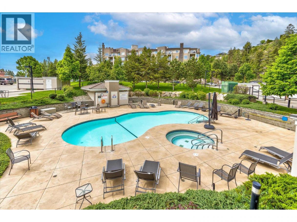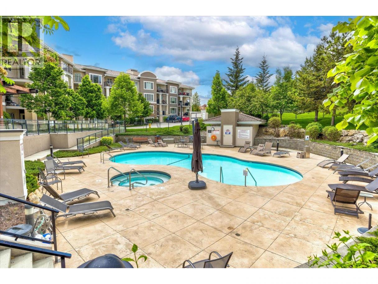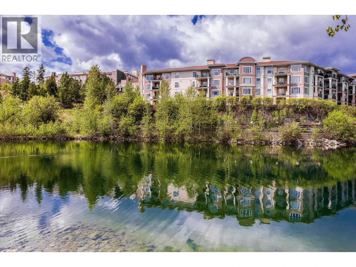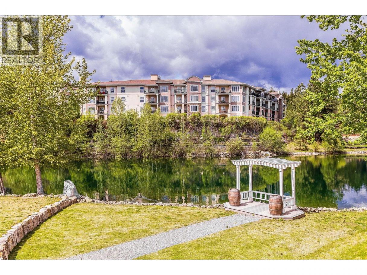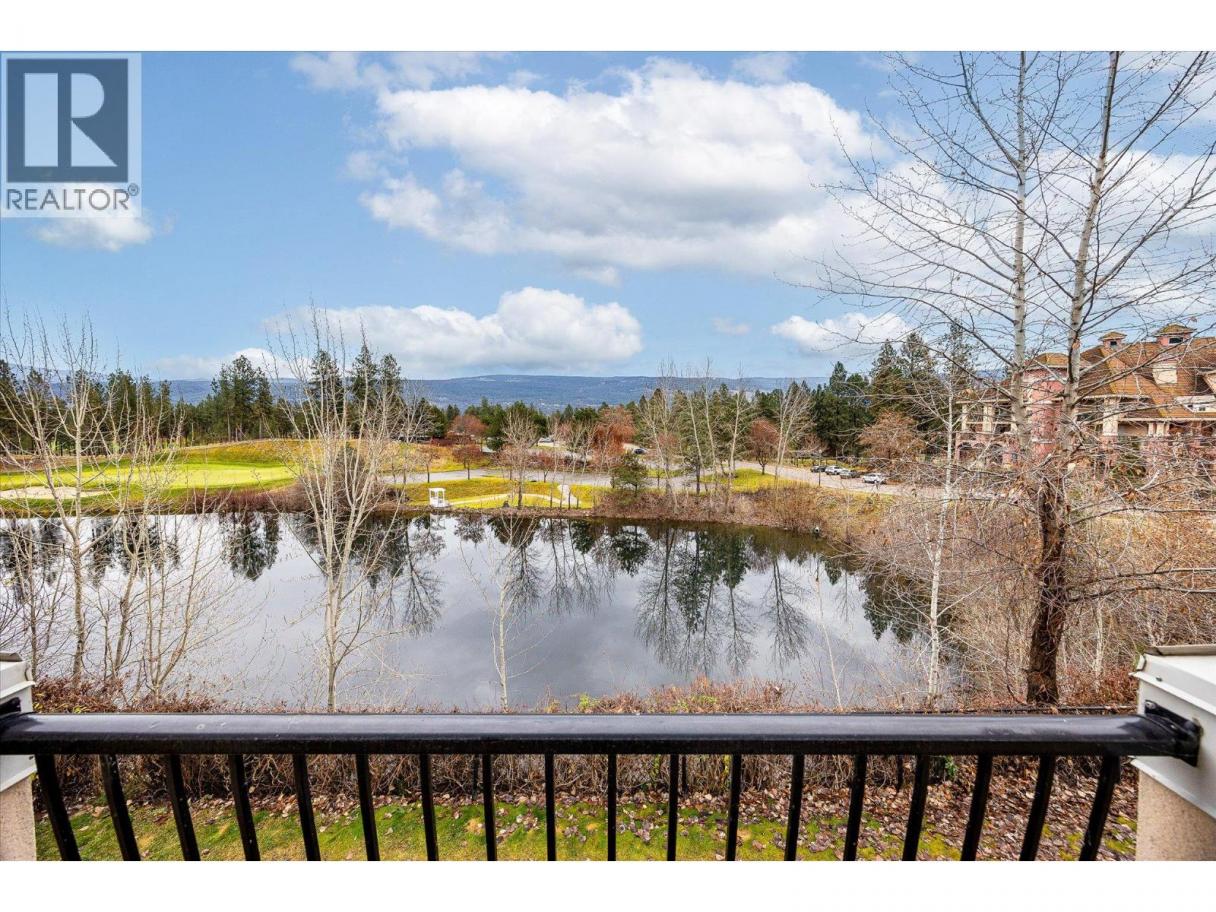 Welcome to The Pointe at Quail Ridge, in Kelowna’s sought-after University District. This vacant, move in ready corner end-unit offers rare privacy with no neighbours on either side and stunning 270-degree views through six large windows overlooking the man-made lake, the 18th hole of Quail Golf Course, and the clubhouse. At 1435 sq. ft this spacious two-bedroom plus den layout is one of the largest available and the best-priced per square foot in the area. The home features engineered hardwood floors, fresh paint, coffered ceilings with double crown moulding, a dramatic floor-to-ceiling gas fireplace, custom blinds, and exceptional storage including a fully shelved pantry and in-unit storage room. The kitchen boasts marble countertops, an oversized island/bar seating four, and ample cabinetry for all your culinary needs. The primary suite includes a luxurious jetted tub, while the private covered deck with gas BBQ hookup provides the perfect spot to relax and take in serene golf course and pond views. Additional highlights secure fob entry, one parking stall, bike storage, and access to the building’s pool and hot tub. Ideally located just five minutes from Kelowna International Airport, within walking distance to the Quail Golf clubhouse, and close to UBCO, wineries, trails, shopping, and dining, this home combines space, light, luxury, and convenience in a quiet, resort-style setting. Move-in-ready condo with panoramic views in one of Kelowna’s most desirable communities. (id:6769)