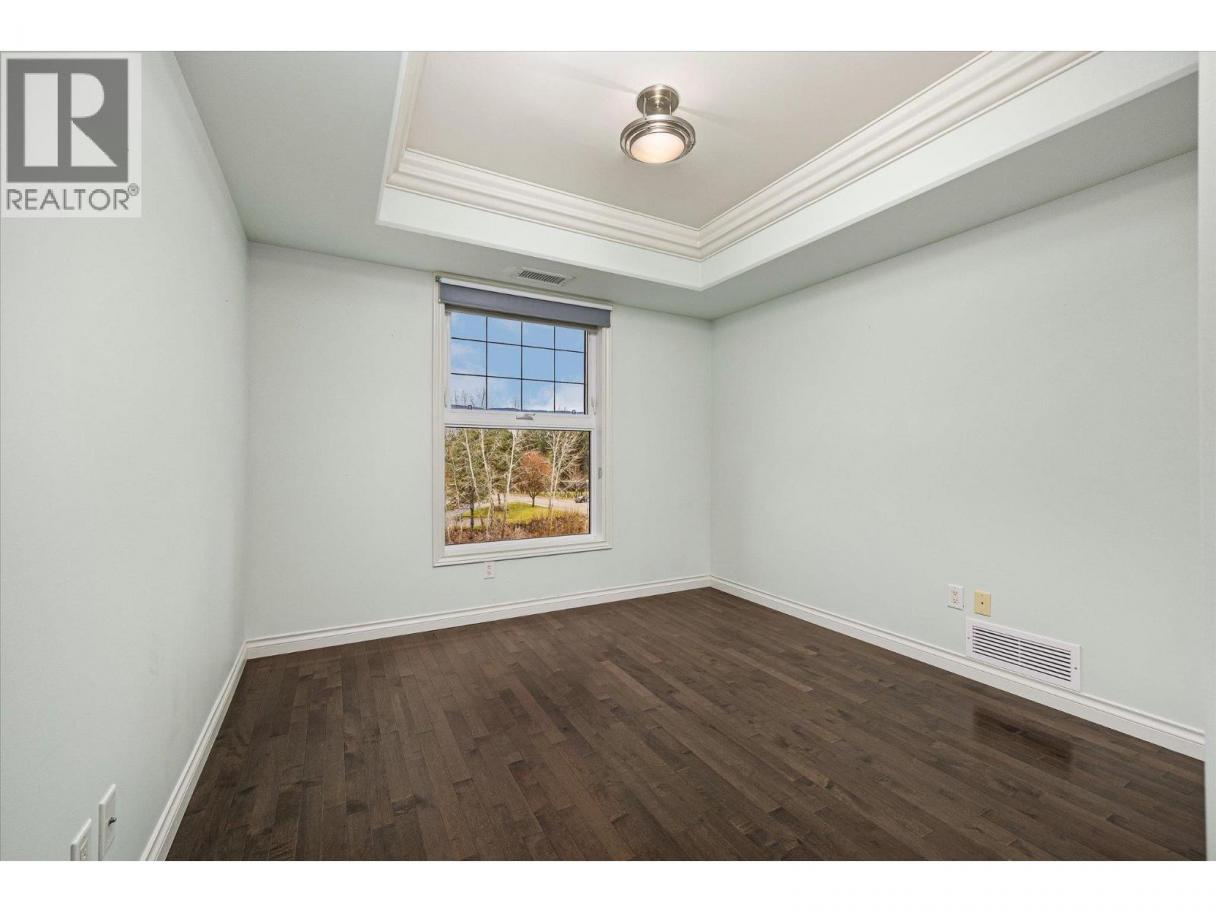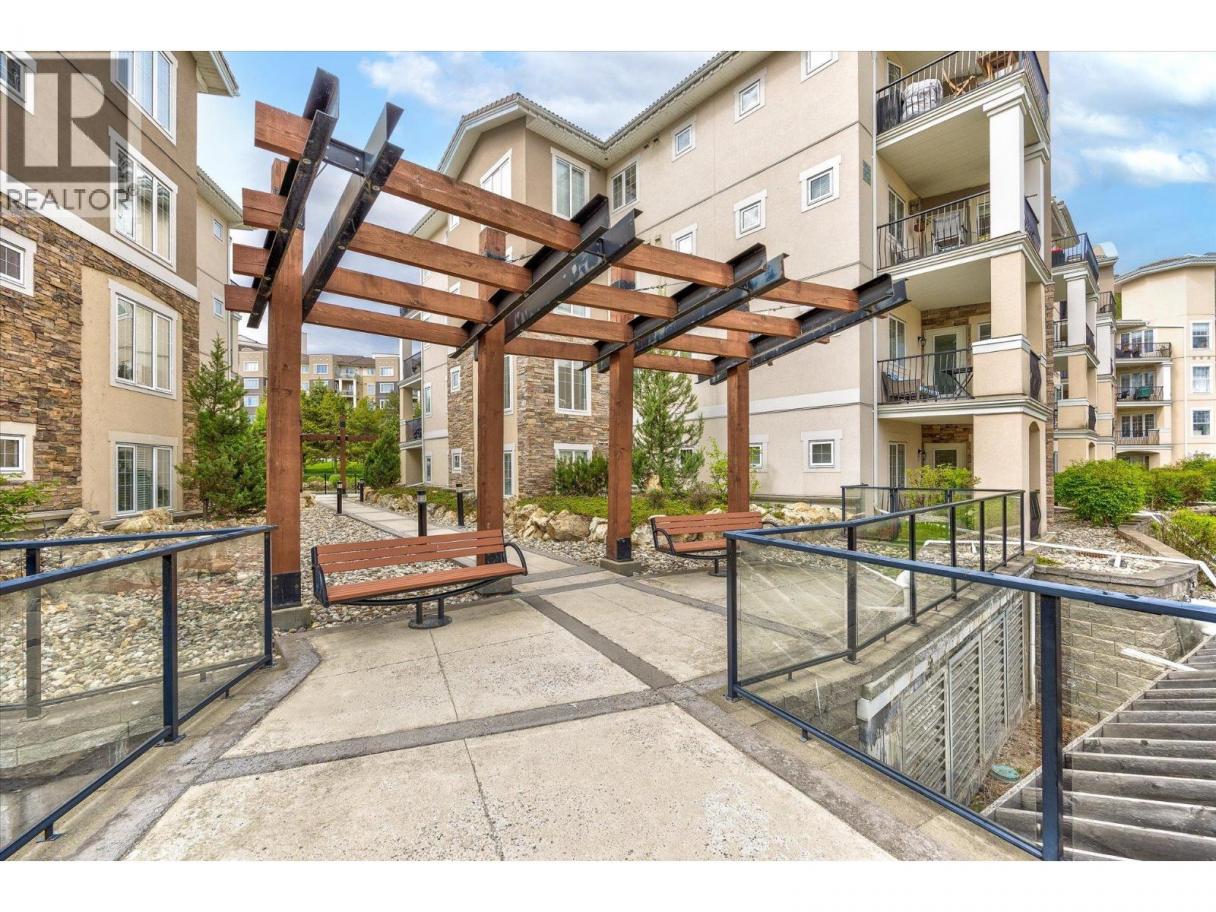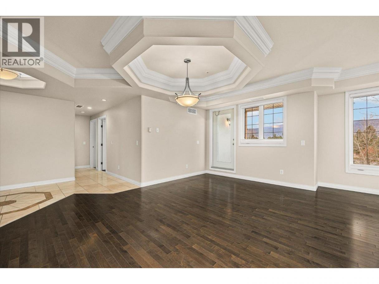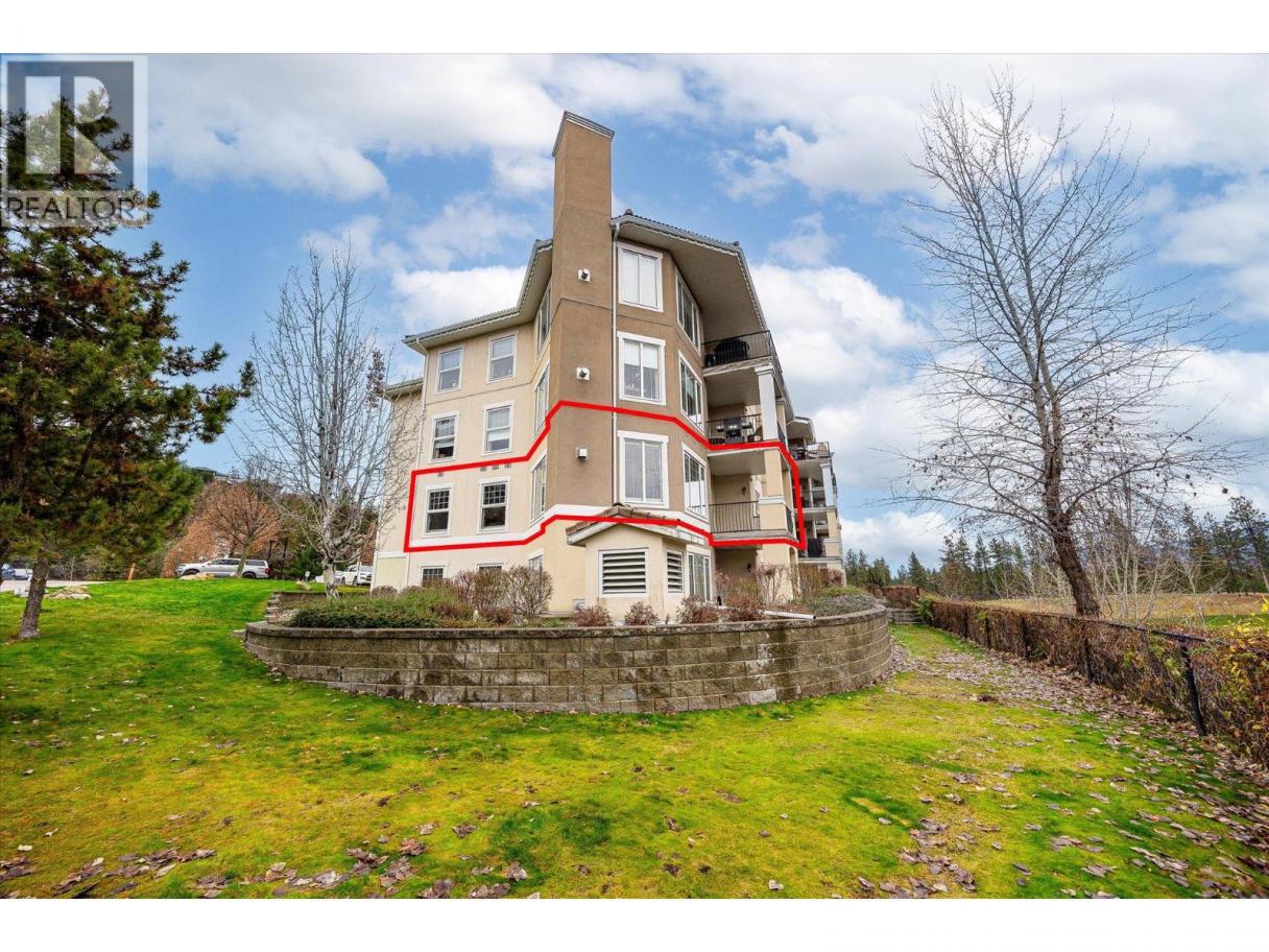Welcome to The Pointe at Quail Ridge, in Kelowna’s sought-after University District. This vacant, move in ready corner end-unit offers rare privacy with no neighbours on either side and stunning 270-degree views through six large windows overlooking the man-made lake, the 18th hole of Quail Golf Course, and the clubhouse. At 1435 sq. ft this spacious two-bedroom plus den layout is one of the largest available and the best-priced per square foot in the area. The home features engineered hardwood floors, fresh paint, coffered ceilings with double crown moulding, a dramatic floor-to-ceiling gas fireplace, custom blinds, and exceptional storage including a fully shelved pantry and in-unit storage room. The kitchen boasts marble countertops, an oversized island/bar seating four, and ample cabinetry for all your culinary needs. The primary suite includes a luxurious jetted tub, while the private covered deck with gas BBQ hookup provides the perfect spot to relax and take in serene golf course and pond views. Additional highlights secure fob entry, one parking stall, bike storage, and access to the building’s pool and hot tub. Ideally located just five minutes from Kelowna International Airport, within walking distance to the Quail Golf clubhouse, and close to UBCO, wineries, trails, shopping, and dining, this home combines space, light, luxury, and convenience in a quiet, resort-style setting. Move-in-ready condo with panoramic views in one of Kelowna’s most desirable communities. (id:6769)