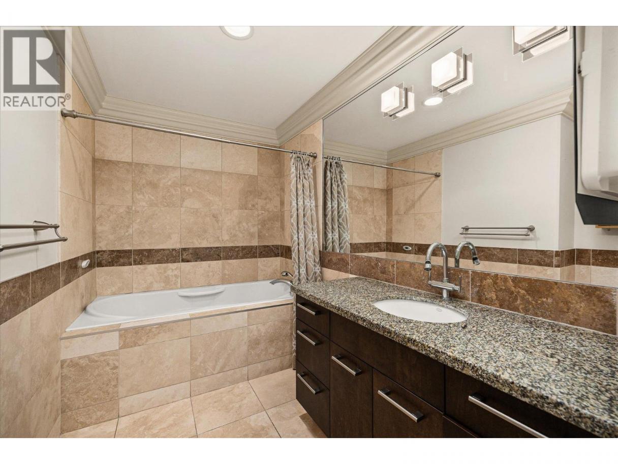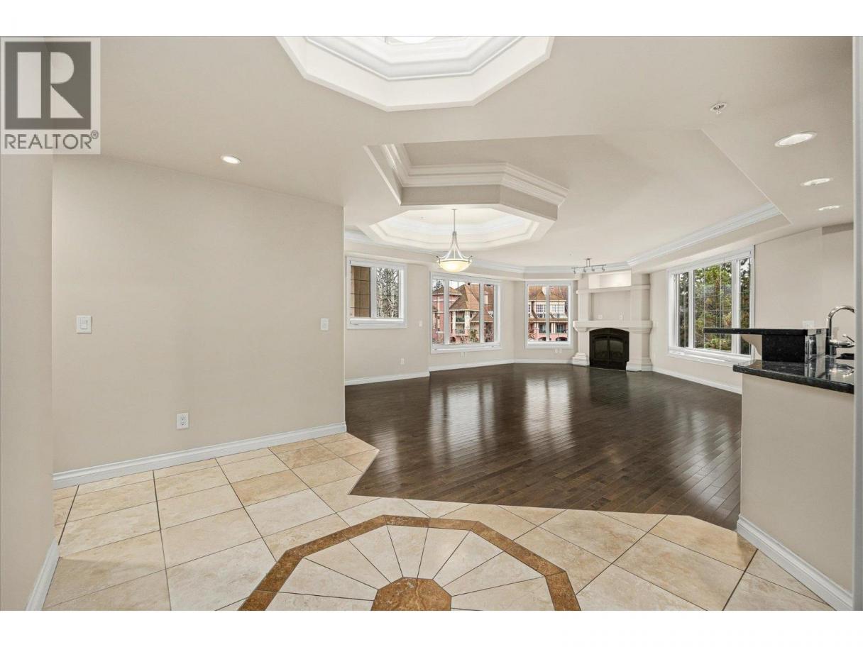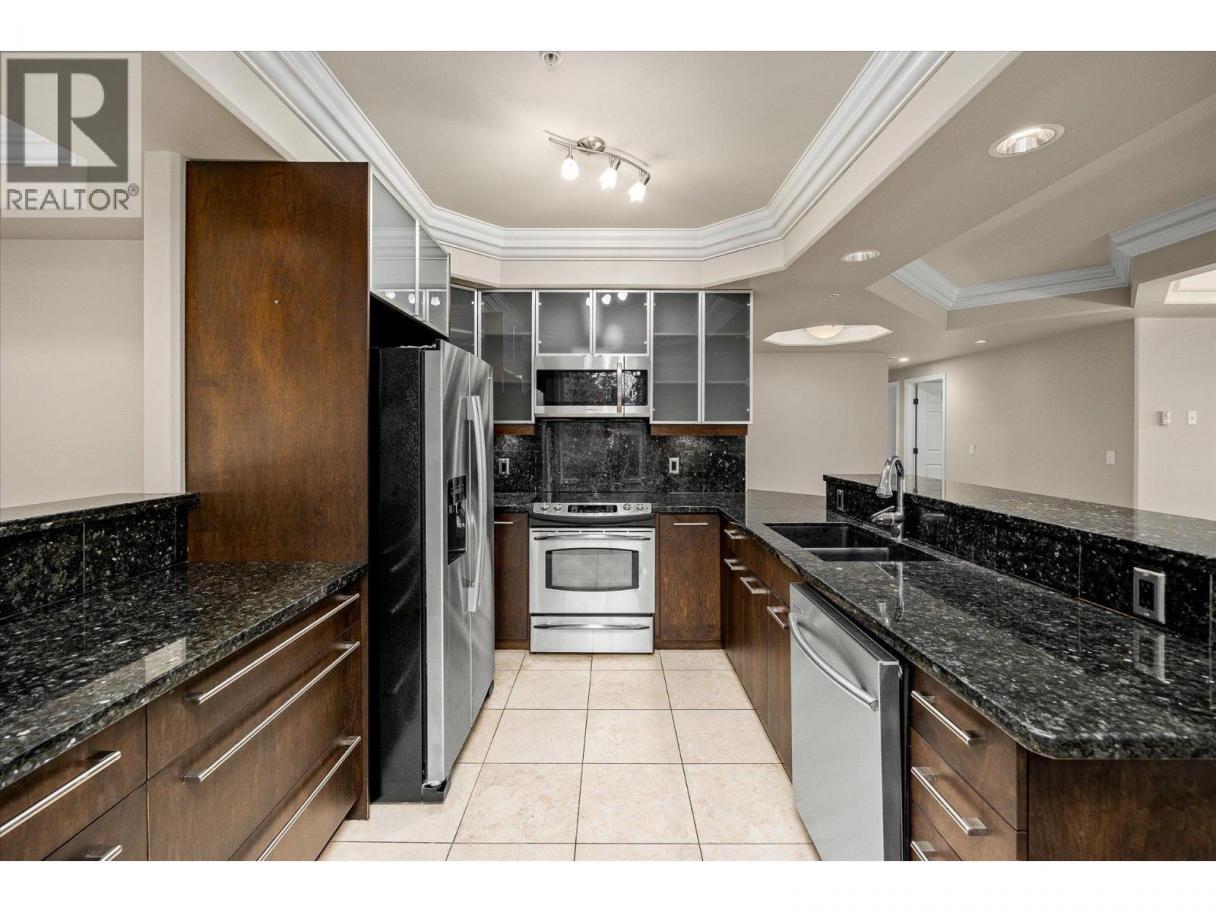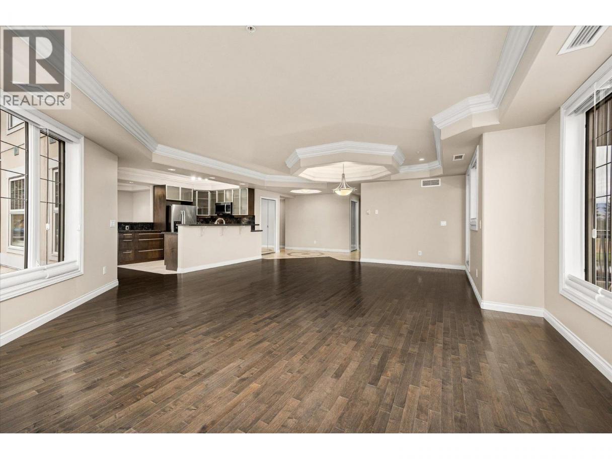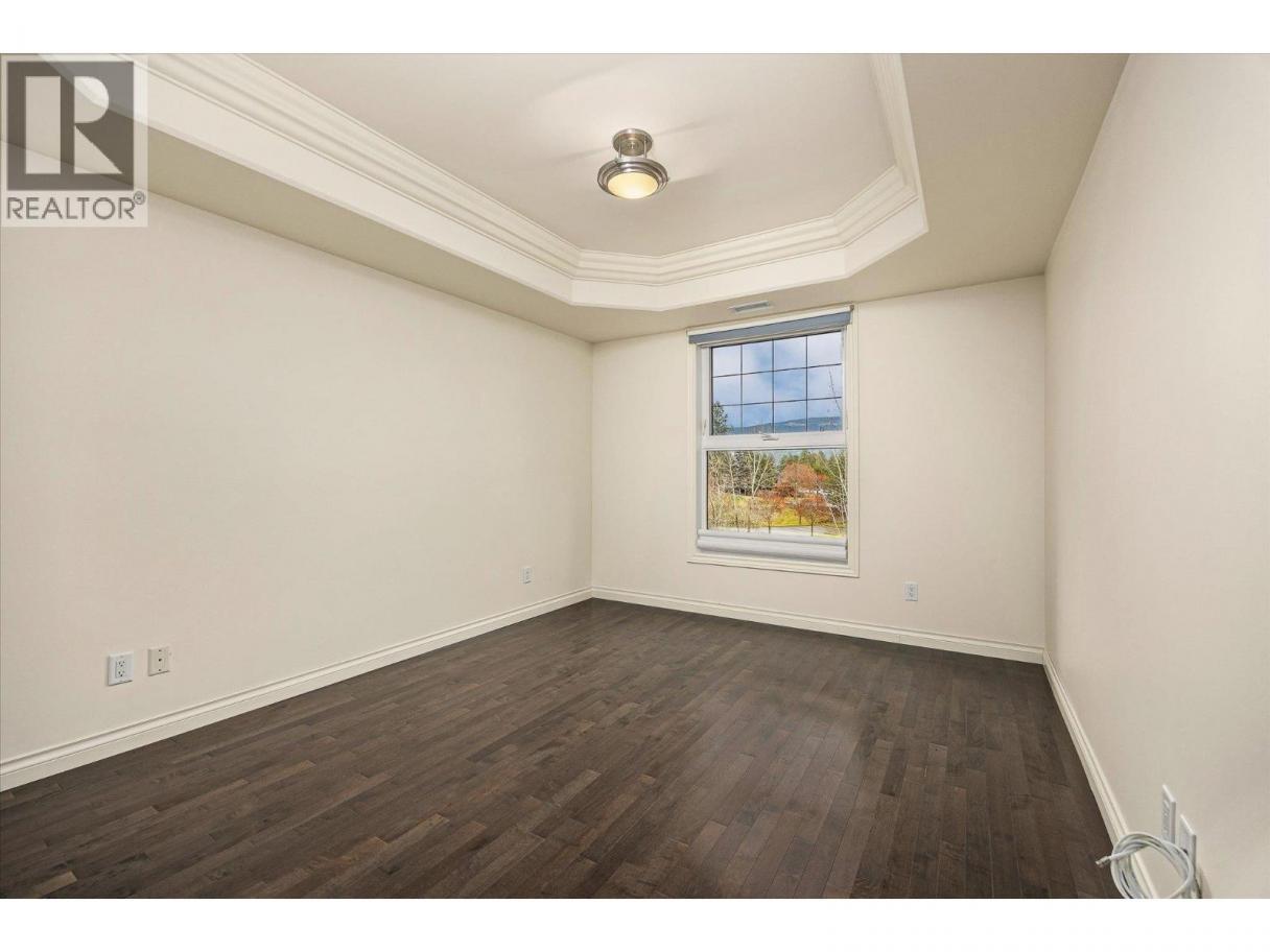 Welcome to The Pointe at Quail Ridge, in Kelowna’s sought-after University District. This vacant, move in ready corner end-unit offers rare privacy with no neighbours on either side and stunning 270-degree views through six large windows overlooking the man-made lake, the 18th hole of Quail Golf Course, and the clubhouse. At 1435 sq. ft this spacious two-bedroom plus den layout is one of the largest available and the best-priced per square foot in the area. The home features engineered hardwood floors, fresh paint, coffered ceilings with double crown moulding, a dramatic floor-to-ceiling gas fireplace, custom blinds, and exceptional storage including a fully shelved pantry and in-unit storage room. The kitchen boasts marble countertops, an oversized island/bar seating four, and ample cabinetry for all your culinary needs. The primary suite includes a luxurious jetted tub, while the private covered deck with gas BBQ hookup provides the perfect spot to relax and take in serene golf course and pond views. Additional highlights secure fob entry, one parking stall, bike storage, and access to the building’s pool and hot tub. Ideally located just five minutes from Kelowna International Airport, within walking distance to the Quail Golf clubhouse, and close to UBCO, wineries, trails, shopping, and dining, this home combines space, light, luxury, and convenience in a quiet, resort-style setting. Move-in-ready condo with panoramic views in one of Kelowna’s most desirable communities. (id:6769)