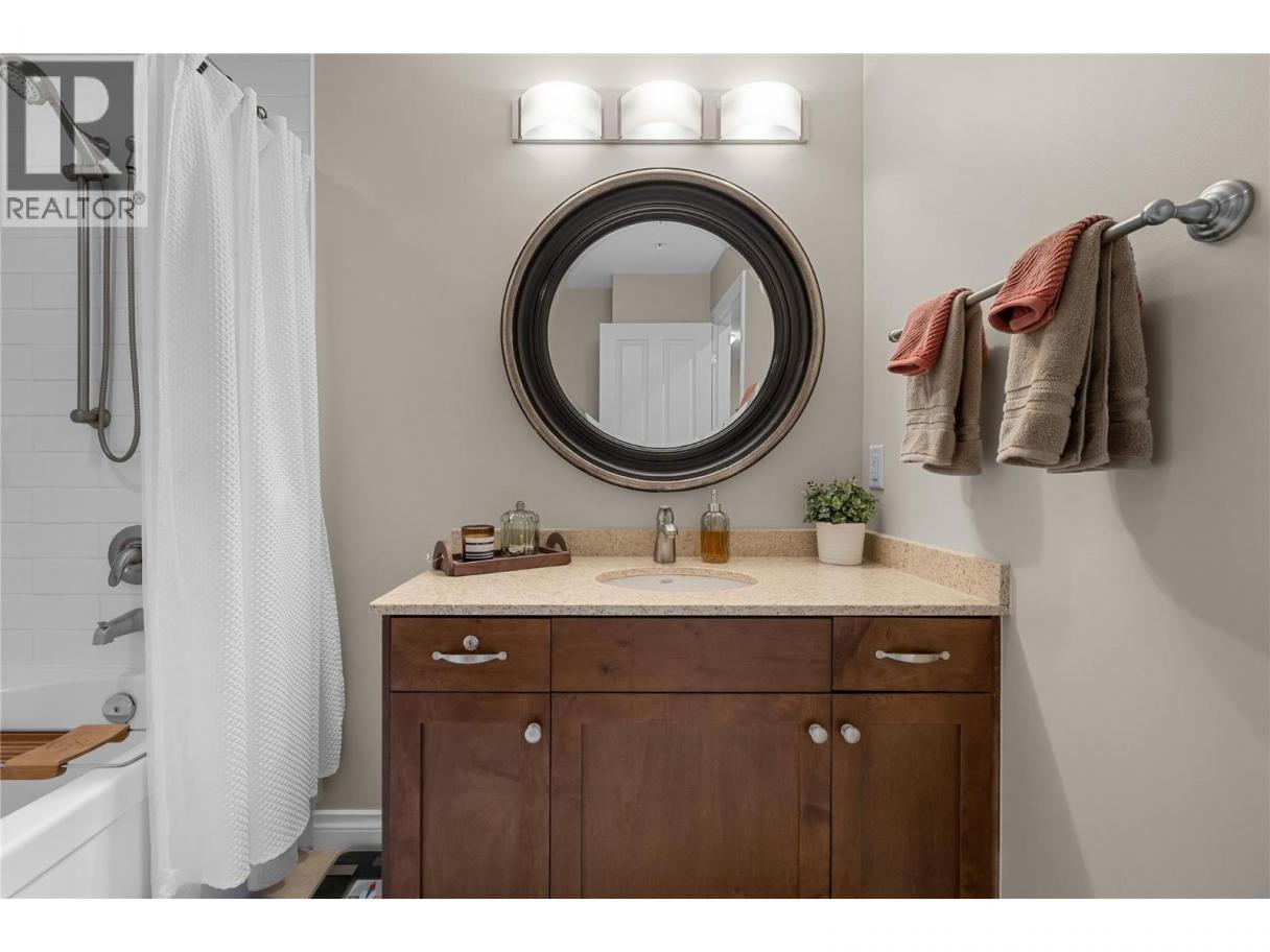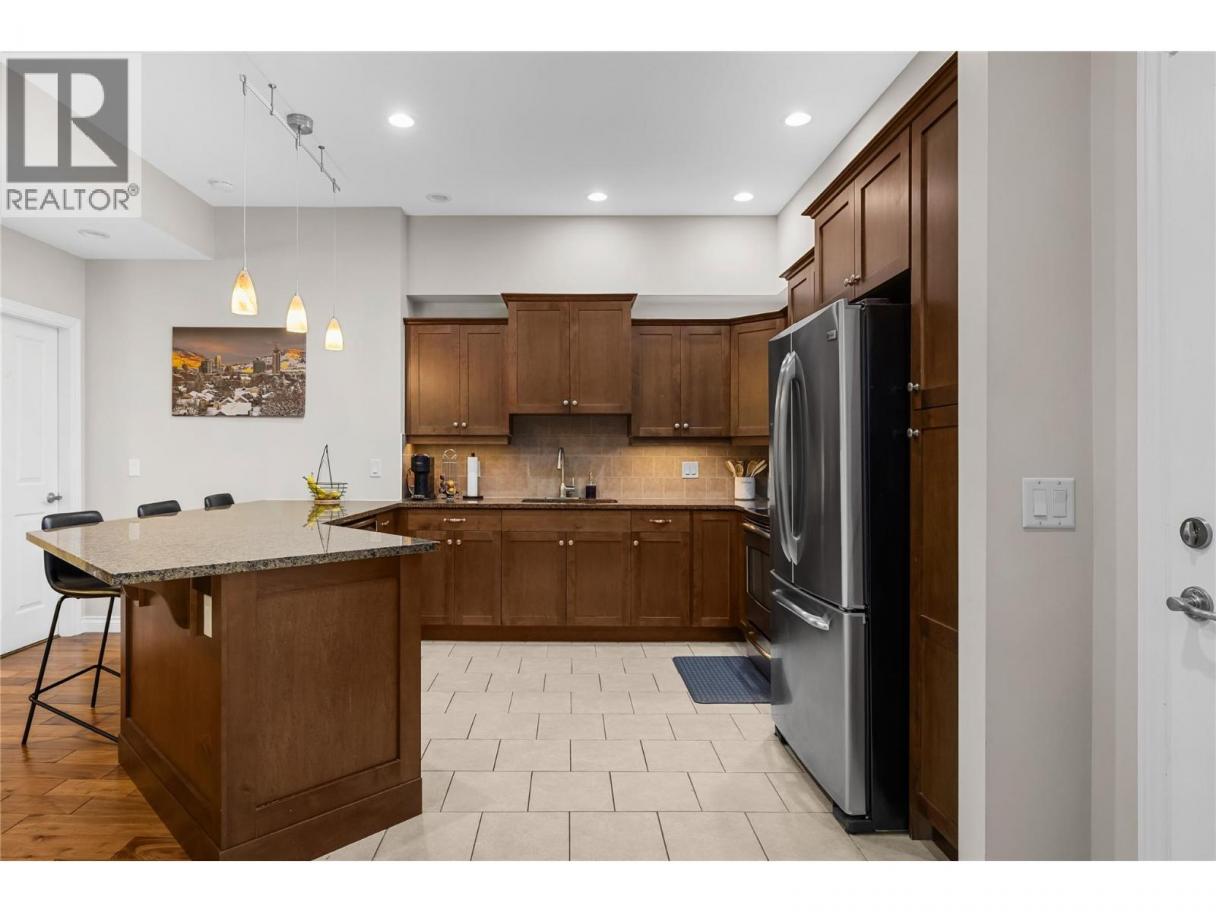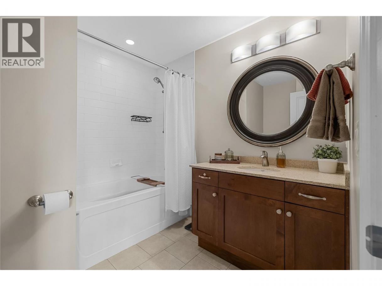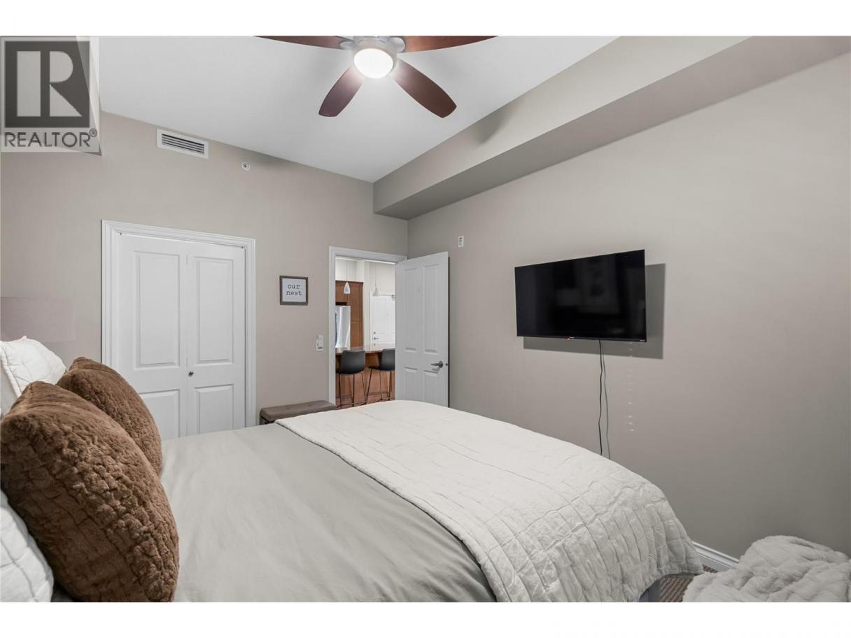 Welcome to this LAKE VIEW PENTHOUSE with 2 PARKING STALLS at Miravista, where comfort meets resort-style living in a desirable community. This home offers a spacious layout ideal for living and entertaining. The open-concept living and dining area is filled with natural light from vaulted ceilings and windows, creating a welcoming atmosphere. The kitchen features solid wood cabinetry, granite countertops with a sit-up bar, and flows seamlessly into the main living area. Enjoy summer BBQs and beautiful lake views from the SE-facing deck. The well-proportioned bedrooms include a spacious primary with room for a king bed, walk-in closet, and ensuite. An additional bedroom and den offer flexibility for guests or a home office. Fresh paint and a new stacking washer/dryer make this home move-in ready! Miravista enhances your lifestyle with amenities like an outdoor pool, hot tub, games room, and lounge. Features include 2 side-by-side secure underground parking stalls, a storage locker, and strata fees covering hot water, heat, and air conditioning. Ideally located close to Save-on-Foods, restaurants, wineries, transit, and amenities like the Johnson Bentley Memorial Aquatic Centre, City Hall, and trails. This well-managed community is an exceptional opportunity for homeowners and investors. Monthly rentals are allowed, with one pet (dog/cat up to 18"" at the shoulder). (id:6769)