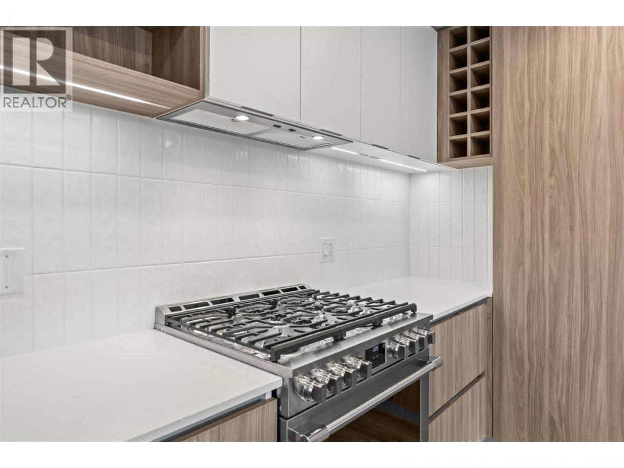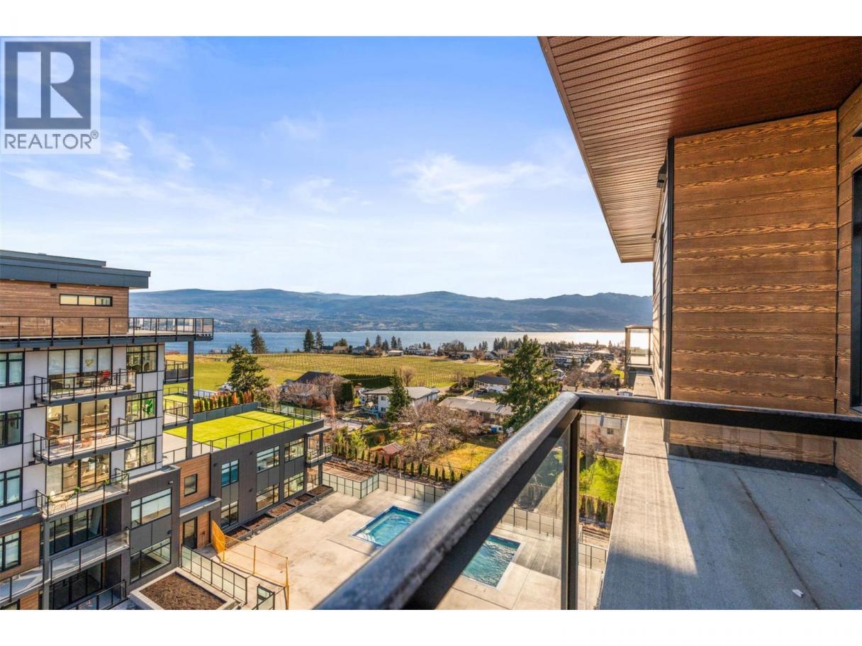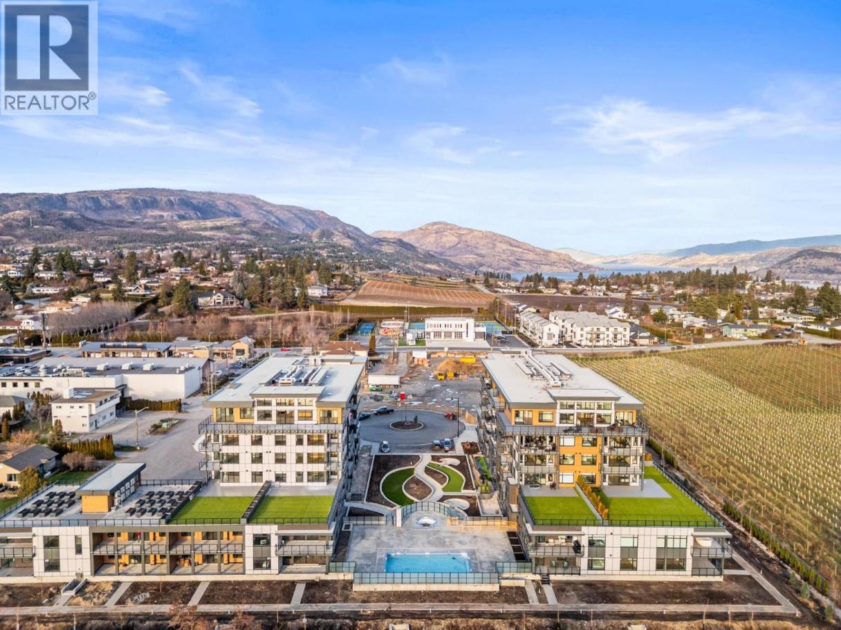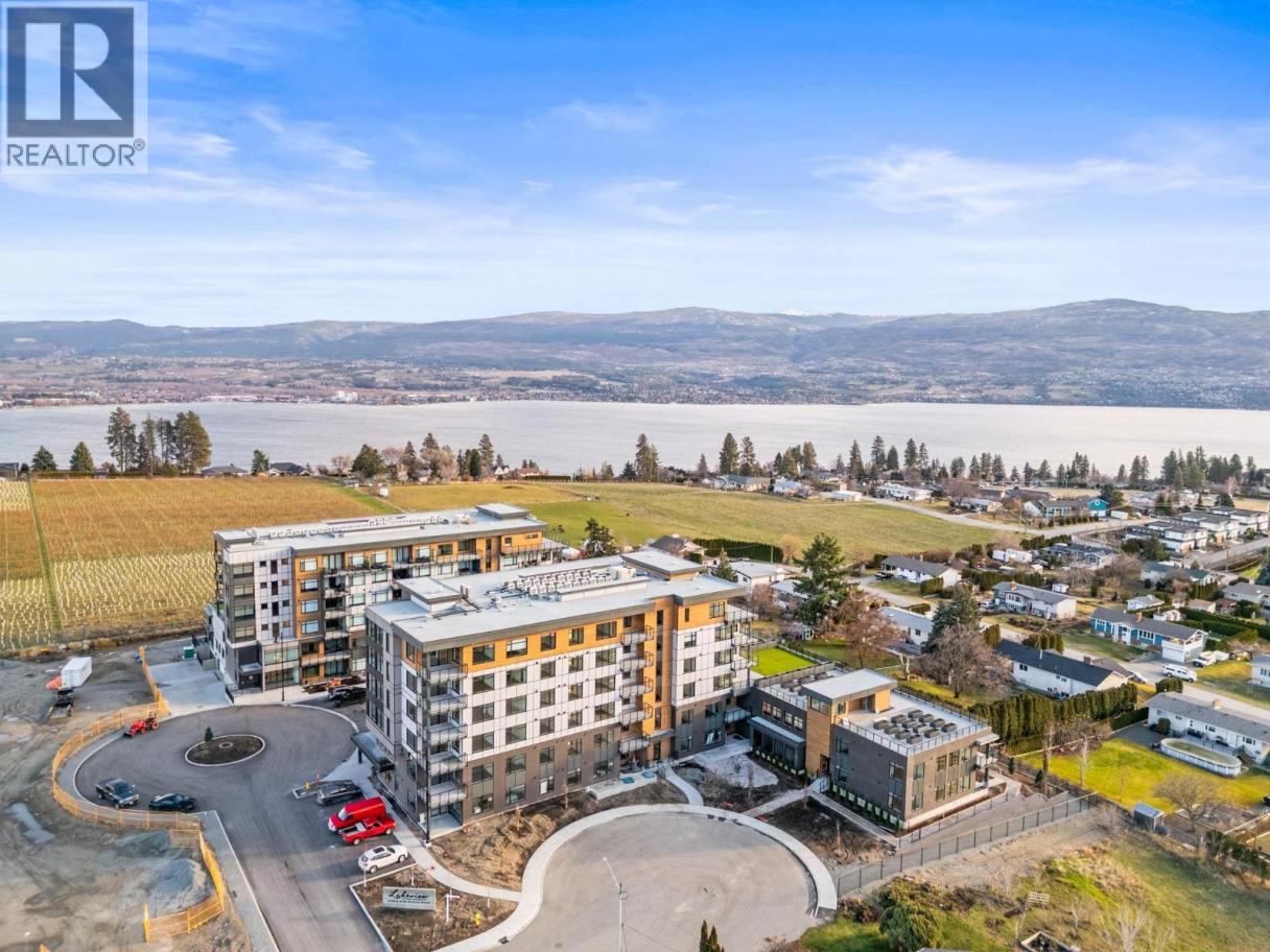 Experience elevated living in this brand-new 2 bedroom + den, 2 bathroom corner residence, where thoughtful architecture meets breathtaking surroundings. Wrapped in an expansive glass deck, the home captures sweeping views across the lake, vineyards, and mountains, while floor-to-ceiling windows bathe the interior in natural light. At the heart of the home is a stunning chef-inspired kitchen, anchored by an oversized quartz island perfect for entertaining. Premium finishes include a gas cooktop, built-in wine fridge & pantry wall, microwave, custom drawer organizers, imported Italian cabinetry, and sleek luxury vinyl plank flooring that flows seamlessly through the space. The smart layout places the bedrooms on opposite sides of the home, offering enhanced privacy for owners and guests alike. Wake up to unforgettable vistas in the primary retreat, featuring a walk-through closet and a serene, spa-style ensuite with heated tile flooring. Designed with comfort and convenience in mind, this home also includes a spacious deck, one secure parking stall + storage locker, and welcomes up to 2 pets. Residents enjoy a resort lifestyle with access to an onsite greenhouse, outdoor pool + hot tub, fitness centre, dog wash, community gardens, secure parcel delivery, and the advanced Butterfly entry system. Ideally located, this home is just steps from a brand-new community centre, schools, bistro, market, & sports courts & only minutes to beaches, boat launches, and celebrated wineries. (id:6769)