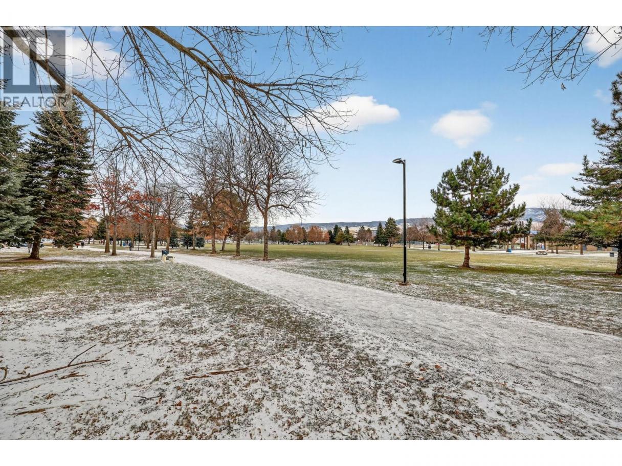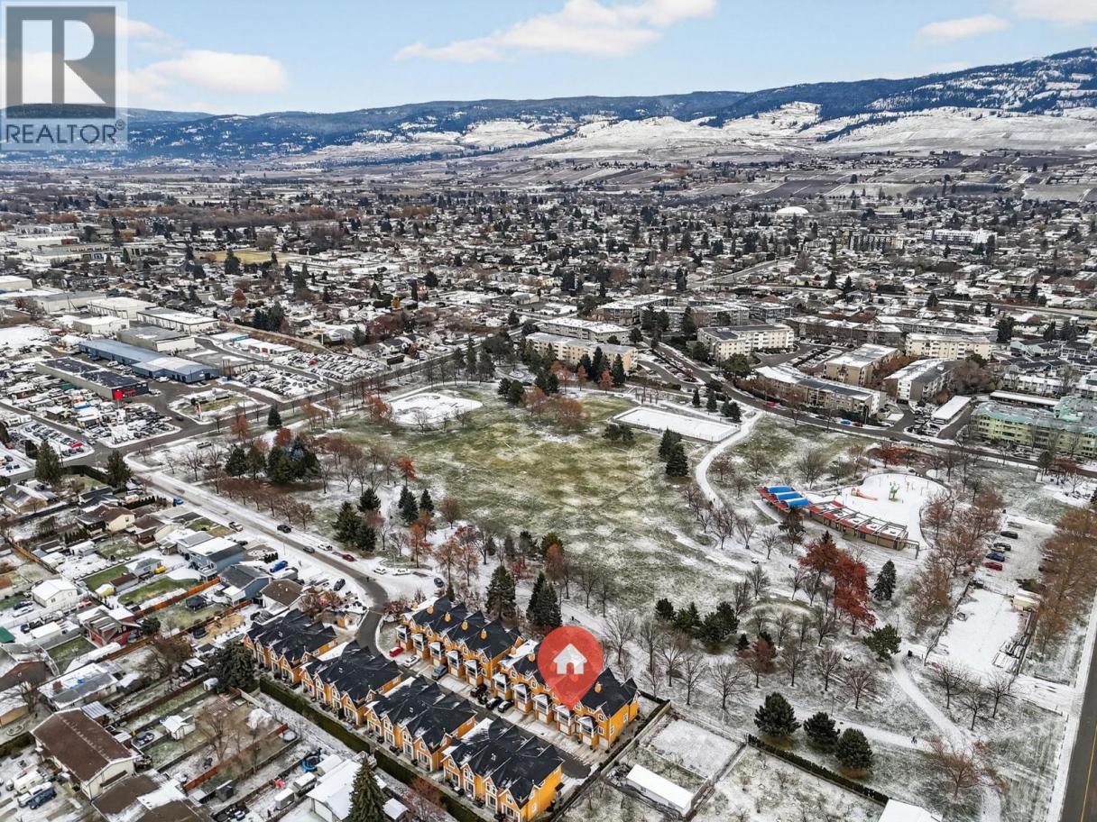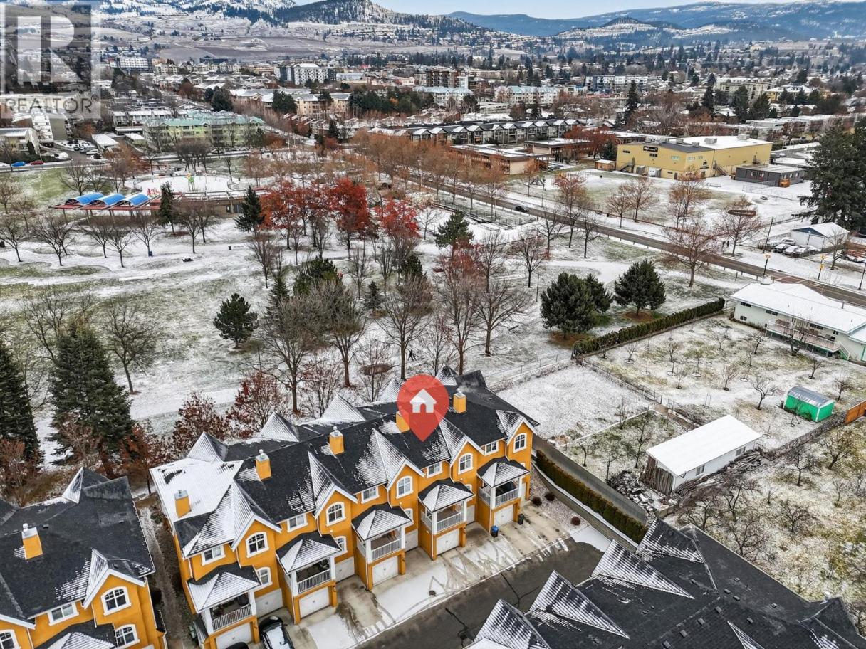 Parkside Villas truly lives up to its name. This attractive townhome fronts directly onto Ben Lee Park, with green space, trails, & recreation literally at your doorstep. Offering 3 beds & 2.5 baths, this well-designed home features heritage fir flooring reclaimed from a historic Saskatchewan schoolhouse, a hickory built-in bookshelf, & additional custom kitchen cabinetry (because storage should never be optional). The eat-in kitchen includes an eating bar, custom roller drawers, window bench, a covered deck & a cozy corner gas fireplace for everyday comfort. Windows have a reflective film, for those hot Okanagan summers too (but don't worrry, your central a/c will keep you cool). Upstairs on the bedroom level is also the spacious laundry rm! Lower walk-out level has comfortable craft/play or family rm. A rare standout: this is the only home in the complex with a separate walk-out door, perfect for welcoming guests from the attached dble garage. Plus there are 2 add'l driveway parking stalls which provide convenient visitor parking. Recent updates include a high-efficiency furnace, hot water tank, washer, dryer, refrigerator & a 2-year-old roof, offering peace of mind. Set in a central and walkable, park-side location, Ben Lee Park features a water park, accessible playground, skateboard park, basketball courts, walking trails & expansive green space - an unbeatable extension of your yard. A rare combination of location, upgrades & parking, this one checks all the boxes! (id:6769)