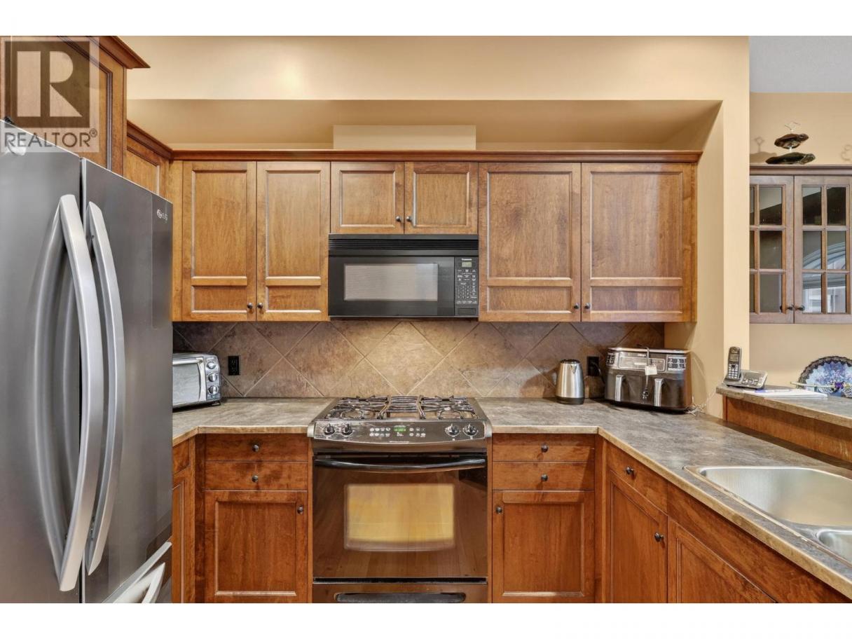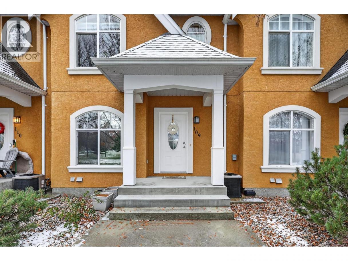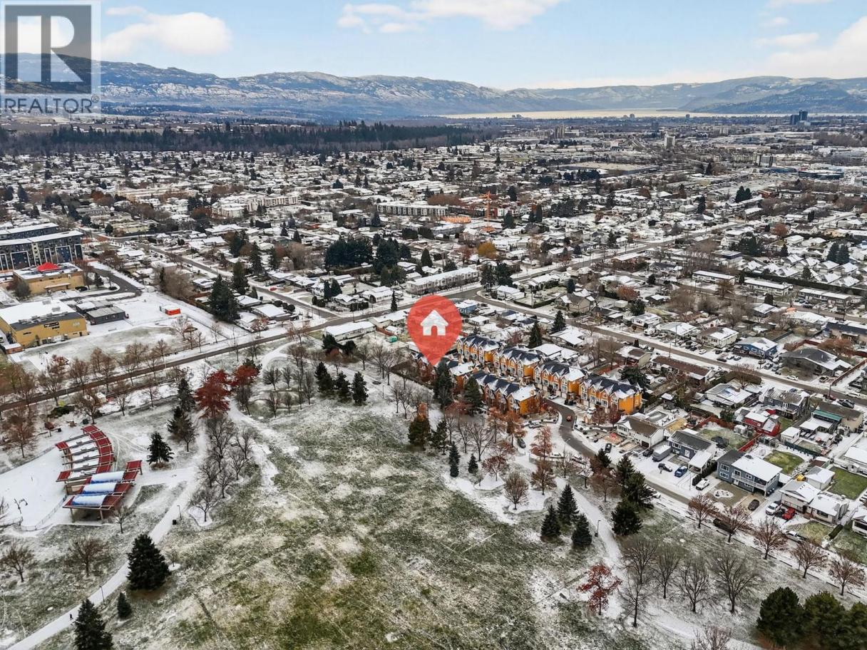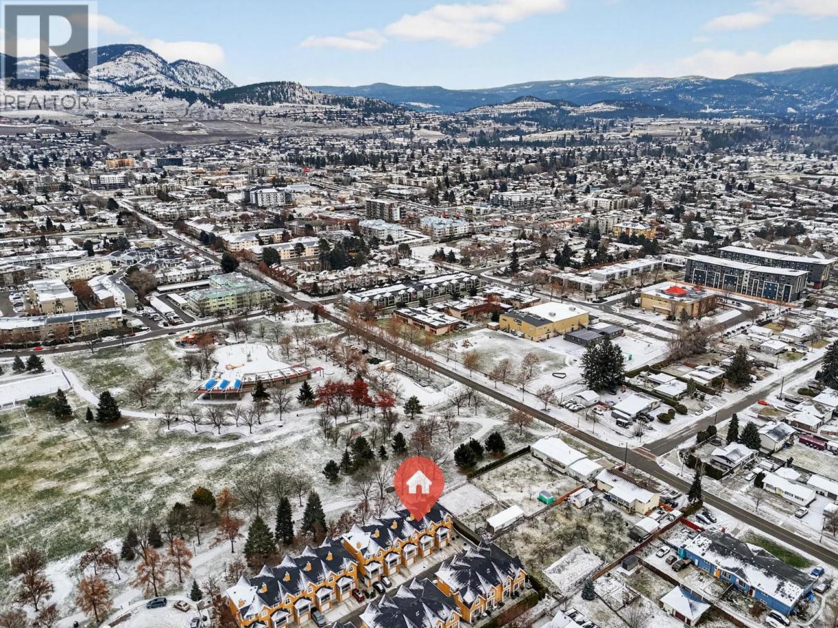 Parkside Villas truly lives up to its name. This attractive townhome fronts directly onto Ben Lee Park, with green space, trails, & recreation literally at your doorstep. Offering 3 beds & 2.5 baths, this well-designed home features heritage fir flooring reclaimed from a historic Saskatchewan schoolhouse, a hickory built-in bookshelf, & additional custom kitchen cabinetry (because storage should never be optional). The eat-in kitchen includes an eating bar, custom roller drawers, window bench, a covered deck & a cozy corner gas fireplace for everyday comfort. Windows have a reflective film, for those hot Okanagan summers too (but don't worrry, your central a/c will keep you cool). Upstairs on the bedroom level is also the spacious laundry rm! Lower walk-out level has comfortable craft/play or family rm. A rare standout: this is the only home in the complex with a separate walk-out door, perfect for welcoming guests from the attached dble garage. Plus there are 2 add'l driveway parking stalls which provide convenient visitor parking. Recent updates include a high-efficiency furnace, hot water tank, washer, dryer, refrigerator & a 2-year-old roof, offering peace of mind. Set in a central and walkable, park-side location, Ben Lee Park features a water park, accessible playground, skateboard park, basketball courts, walking trails & expansive green space - an unbeatable extension of your yard. A rare combination of location, upgrades & parking, this one checks all the boxes! (id:6769)
