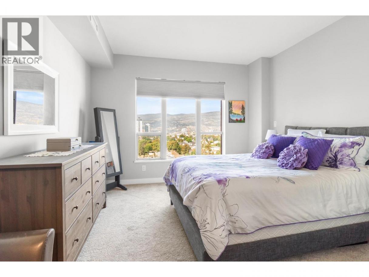Okanagan Lake views from every window and urban convenience meet in this 2 bed + den, 2 bath condo at Centuria Urban Village. With 1,276 sq ft of interior space, this 12th-floor home offers excellent separation between bedrooms, a flex room that could be an office, bar, or fitness space and generous open-concept living. Step onto your private balcony to enjoy views of Okanagan Lake and the downtown skyline. The building has low strata fees for the size and offers excellent amenities, including a fitness centre, outdoor pool, hot tub, sauna, and car wash. 2 underground parking stalls and a private storage locker are included. The storage locker is right in front of your stall for easy loading and unloading. Centuria is a well-managed strata with low monthly fees, all just steps from downtown Kelowna, groceries, restaurants, parks, and more. (id:6769)