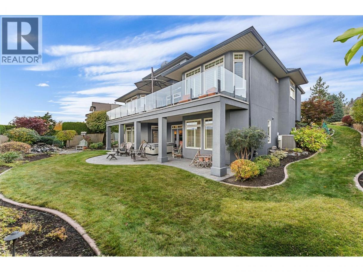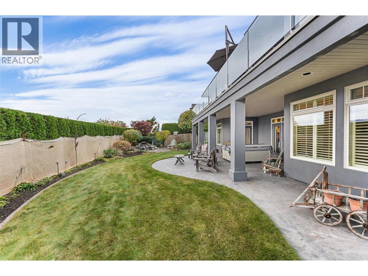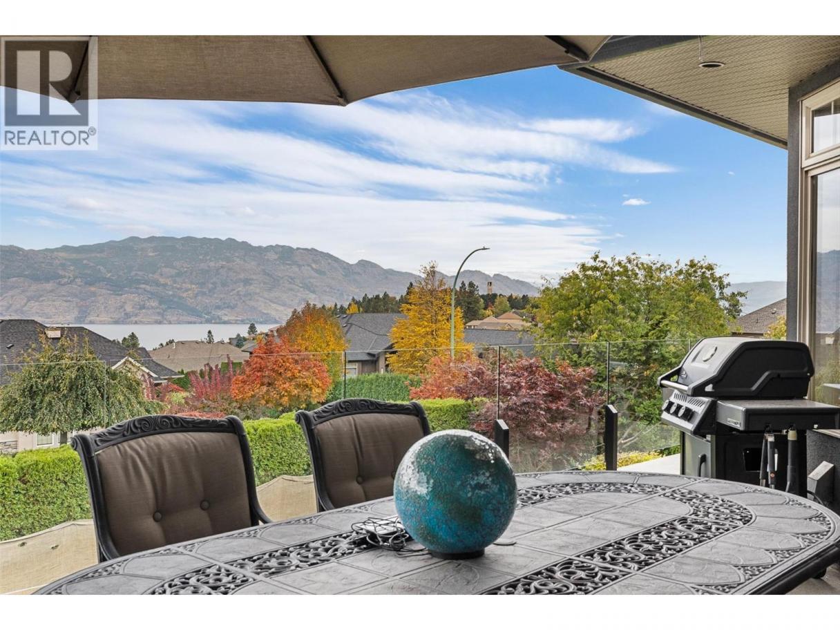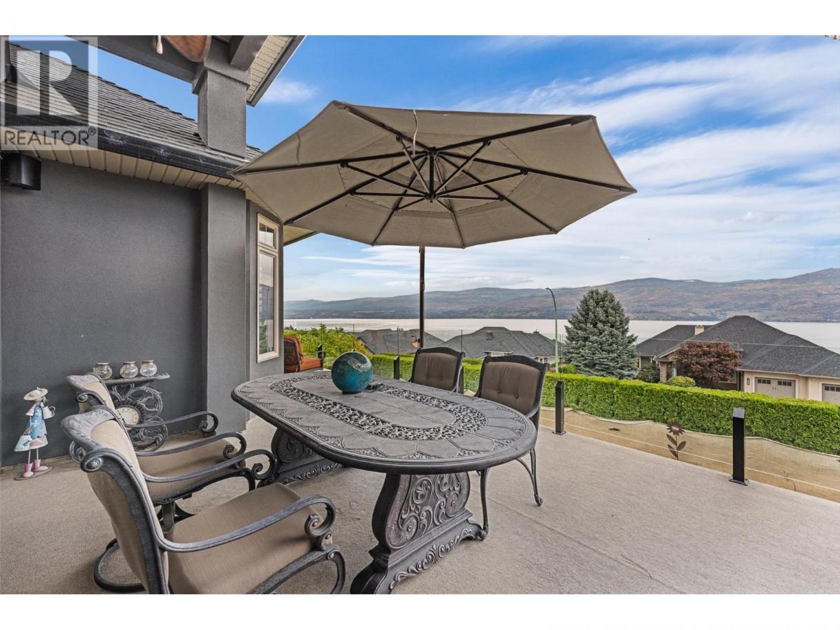 Set on a quiet private lane in Lakeview Heights, this beautifully designed walkout rancher captures sweeping lake, valley, and mountain views while offering exceptional space and versatility. Inside, the main level is filled with natural light, featuring high ceilings, warm hardwood floors, and large windows framing the lake at every turn. The open living and dining areas are anchored by a three-sided gas fireplace. The kitchen blends function and elegance with rich wood cabinetry, granite counters and backsplash, a generous island with seating, gas cooktop, premium appliances, and a built-in coffee machine. Step outside to the lakeview deck, perfectly suited for morning coffee or sunset dining. The main-level primary suite is a serene retreat with bay windows overlooking the water, a walk-in closet with custom built-ins, and a spa-inspired ensuite featuring heated floors, steam shower, jetted tub, and dual vanities. A dedicated office, powder room, and well-appointed laundry room complete the main floor. The walkout lower level offers remarkable flexibility with a rec room, wet bar, family room, bonus games room, home gym, workshop, wine cellar, and two additional bedrooms. Outdoors, the fully fenced backyard features covered & open patios and a hot tub—designed for relaxed Okanagan living. A double garage with extensive storage & a rare cargo elevator adds functionality to the home. This home is being sold turnkey with the exception of artwork- its move in ready! (id:6769)