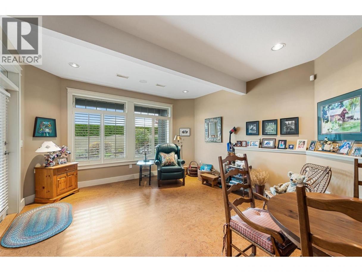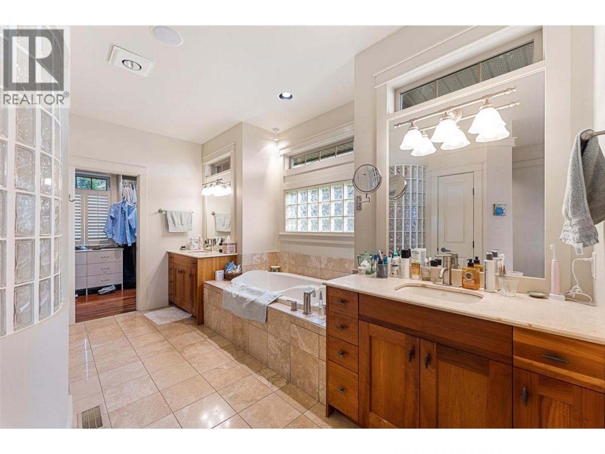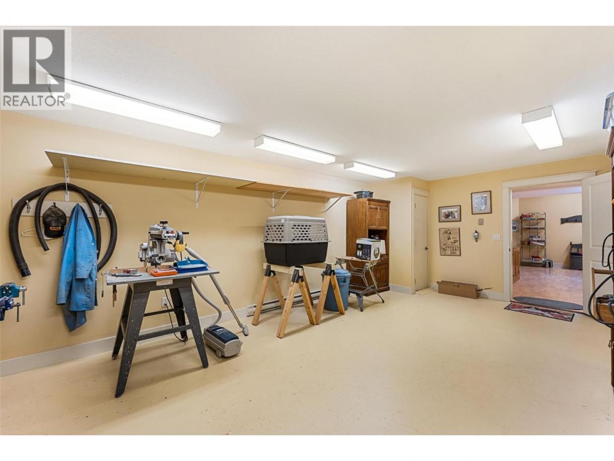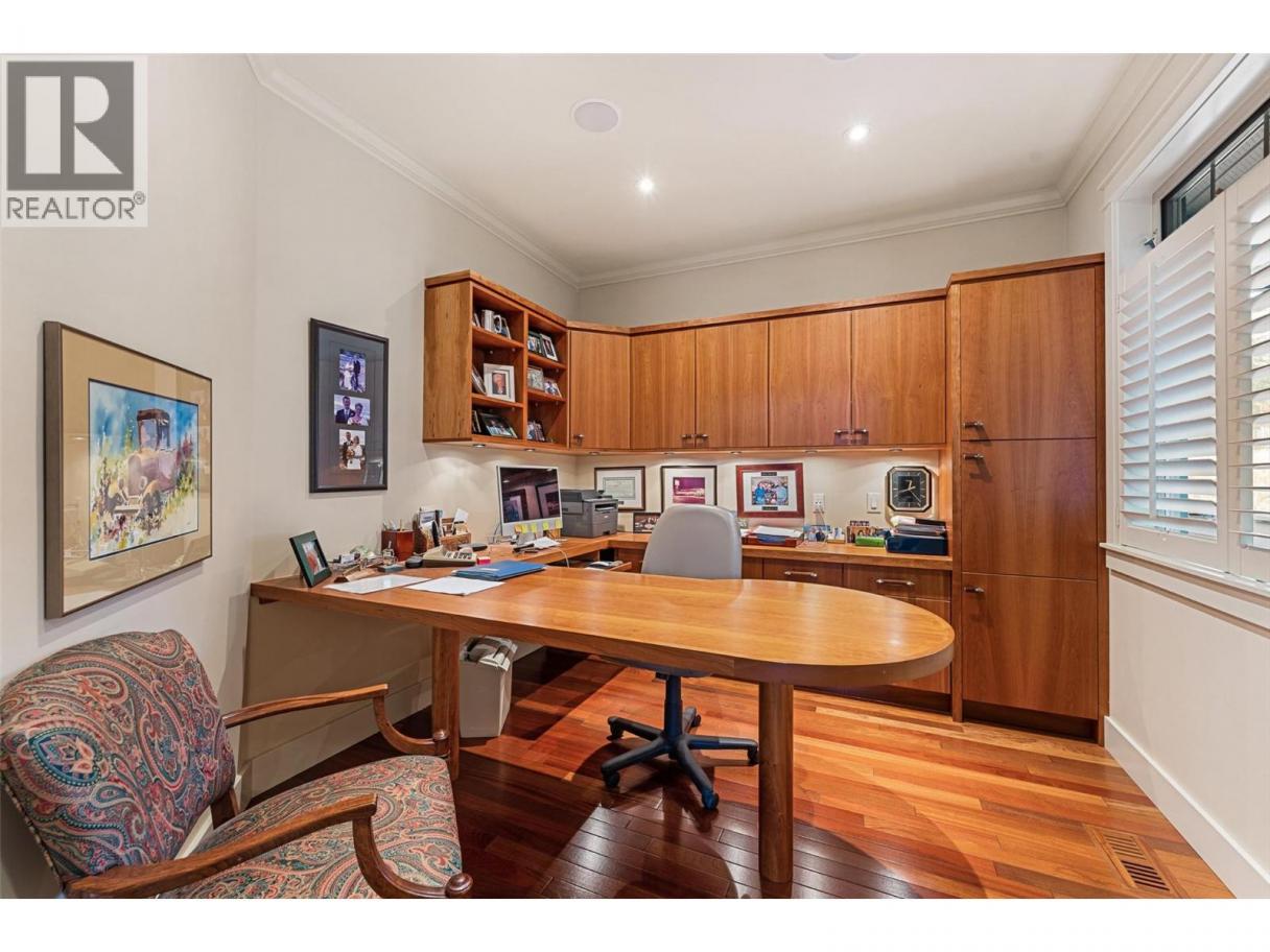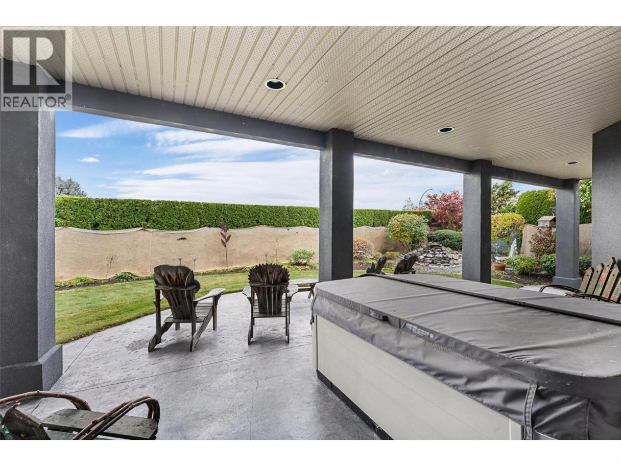 Set on a quiet private lane in Lakeview Heights, this beautifully designed walkout rancher captures sweeping lake, valley, and mountain views while offering exceptional space and versatility. Inside, the main level is filled with natural light, featuring high ceilings, warm hardwood floors, and large windows framing the lake at every turn. The open living and dining areas are anchored by a three-sided gas fireplace. The kitchen blends function and elegance with rich wood cabinetry, granite counters and backsplash, a generous island with seating, gas cooktop, premium appliances, and a built-in coffee machine. Step outside to the lakeview deck, perfectly suited for morning coffee or sunset dining. The main-level primary suite is a serene retreat with bay windows overlooking the water, a walk-in closet with custom built-ins, and a spa-inspired ensuite featuring heated floors, steam shower, jetted tub, and dual vanities. A dedicated office, powder room, and well-appointed laundry room complete the main floor. The walkout lower level offers remarkable flexibility with a rec room, wet bar, family room, bonus games room, home gym, workshop, wine cellar, and two additional bedrooms. Outdoors, the fully fenced backyard features covered & open patios and a hot tub—designed for relaxed Okanagan living. A double garage with extensive storage & a rare cargo elevator adds functionality to the home. This home is being sold turnkey with the exception of artwork- its move in ready! (id:6769)