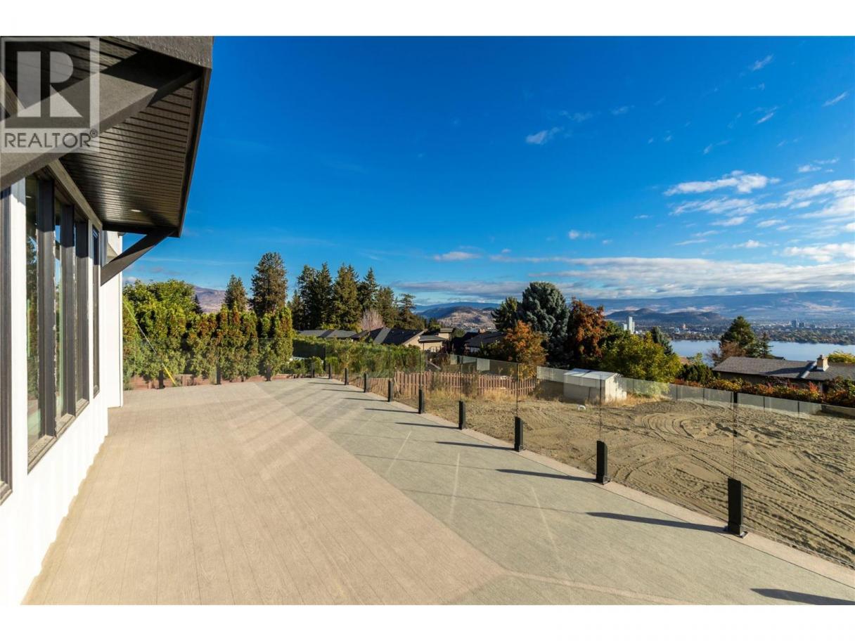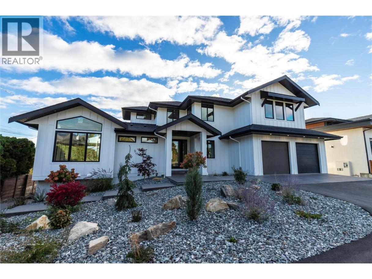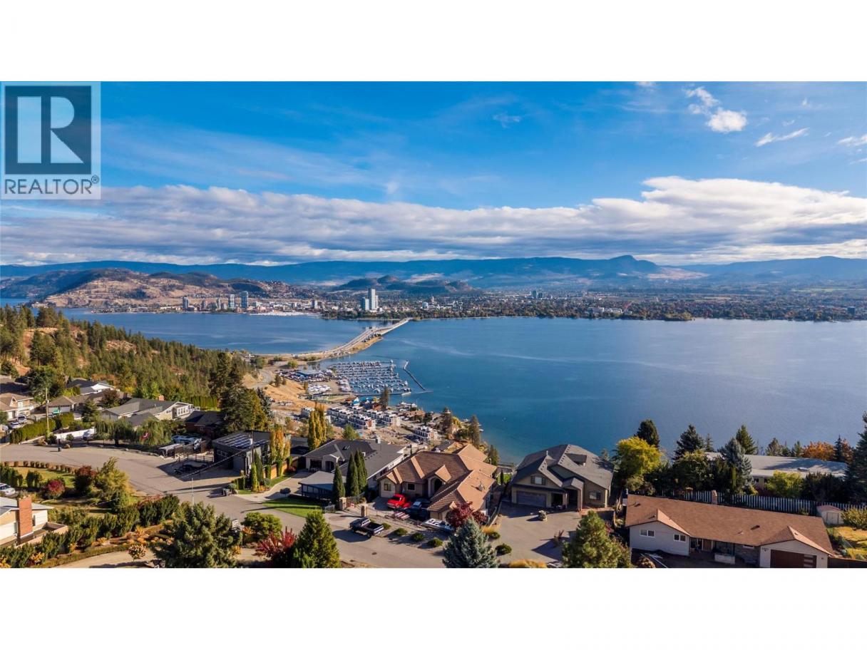 Perched to capture sweeping Okanagan Lake views, this exceptional luxury residence blends grand scale entertaining with thoughtfully designed everyday living complete with a private one bedroom suite. Arrive to a two car garage with storage/tool alcove and a dedicated utility area with high-efficiency furnace and systems. The main level impresses with vaulted ceilings, a gas fireplace, and an airy open-concept flow to the chef-inspired kitchen. Host with ease thanks to a beverage room and walk-in pantry, while a large dining area and expansive picture windows frame the lake like artwork. Versatility shines with a private nanny suite off the front entry complete with bed/sitting room and private bathroom, plus a separate two-piece powder room for guests. Upstairs offers a spacious bonus room, laundry, and two generous bedrooms with walk-in closets connected by a Jack-and-Jill bath. The primary suite is a true retreat with an oversized walk-in closet and spa-inspired five-piece ensuite. Downstairs, enjoy a large family/games area with wet bar, plus an additional bedroom and bathroom ideal for teens or guests. With 0.3 acres fully landscaped, it leaves nearly 0.2 acres ready for your dream pool, sports court, hobby vineyard, outdoor entertaining area and more. The self-contained 1-bedroom suite includes its own laundry and private outdoor sitting area. Ample driveway parking for owners and guests, plus separate side parking for the suite. (id:6769)