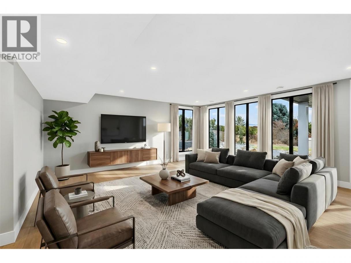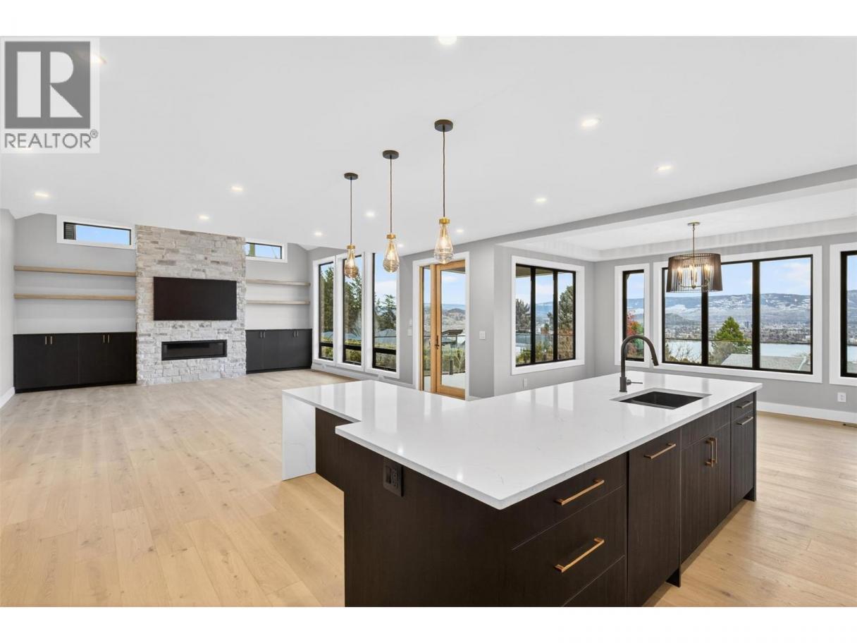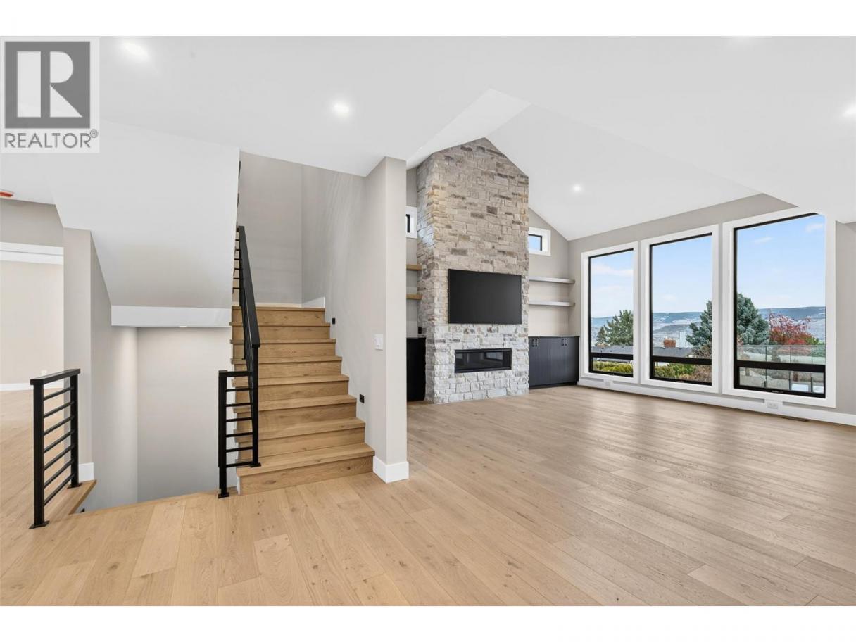Perched to capture sweeping Okanagan Lake views, this exceptional luxury residence blends grand scale entertaining with thoughtfully designed everyday living complete with a private one bedroom suite. Arrive to a two car garage with storage/tool alcove and a dedicated utility area with high-efficiency furnace and systems. The main level impresses with vaulted ceilings, a gas fireplace, and an airy open-concept flow to the chef-inspired kitchen. Host with ease thanks to a beverage room and walk-in pantry, while a large dining area and expansive picture windows frame the lake like artwork. Versatility shines with a private nanny suite off the front entry complete with bed/sitting room and private bathroom, plus a separate two-piece powder room for guests. Upstairs offers a spacious bonus room, laundry, and two generous bedrooms with walk-in closets connected by a Jack-and-Jill bath. The primary suite is a true retreat with an oversized walk-in closet and spa-inspired five-piece ensuite. Downstairs, enjoy a large family/games area with wet bar, plus an additional bedroom and bathroom ideal for teens or guests. With 0.3 acres fully landscaped, it leaves nearly 0.2 acres ready for your dream pool, sports court, hobby vineyard, outdoor entertaining area and more. The self-contained 1-bedroom suite includes its own laundry and private outdoor sitting area. Ample driveway parking for owners and guests, plus separate side parking for the suite. (id:6769)