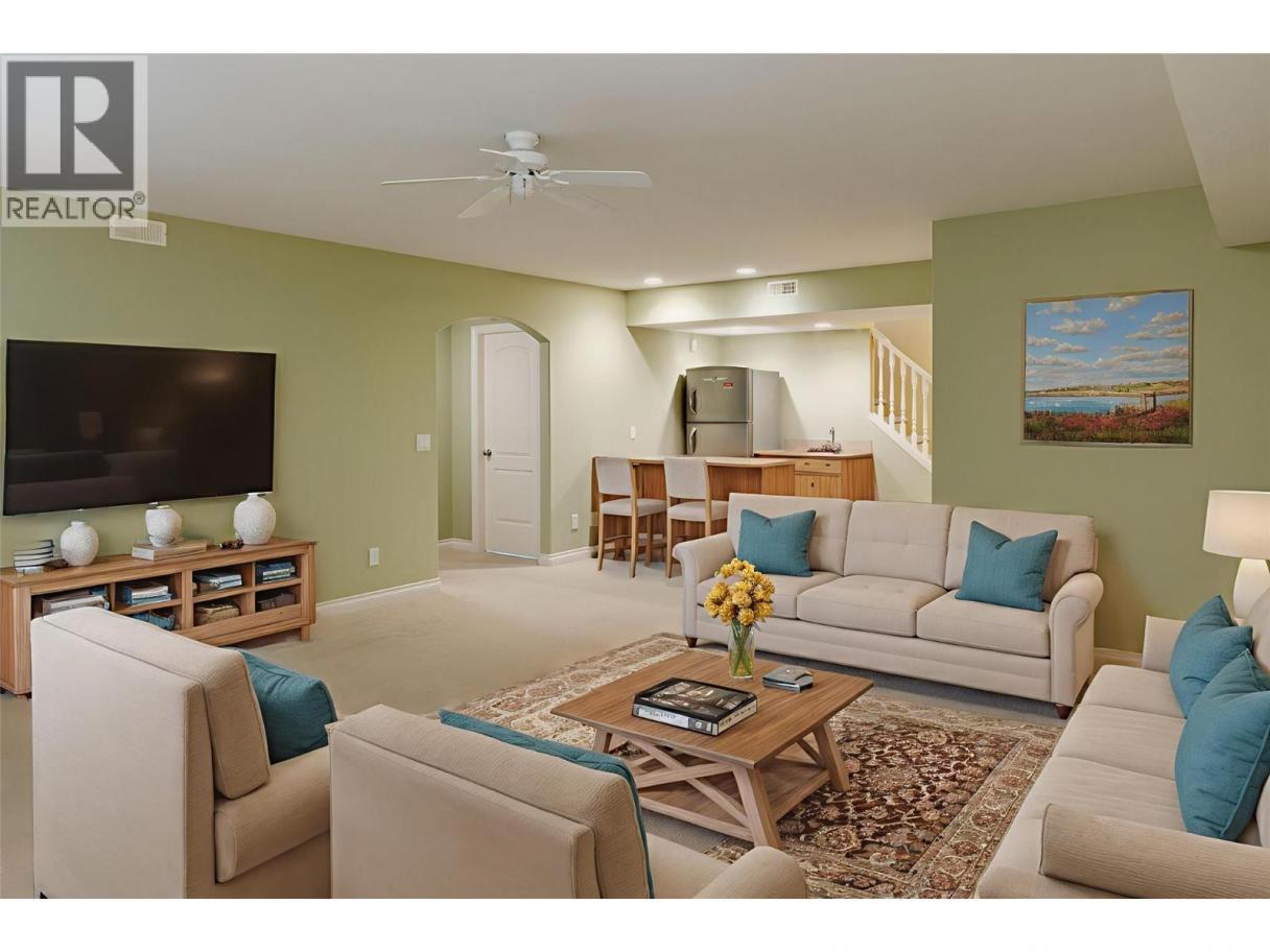 Discover this bright & inviting home offering a versatile floor plan and stunning valley views. Situated in a quiet, family-friendly Kettle Valley neighbourhood, famous as an award winning elite residential community with local shops and services. This residence provides the perfect blend of comfort and functionality. The main level features an open-concept design flooded with natural light, highlighted by warm hardwood flooring and a cozy gas fireplace. The spacious kitchen includes a large island with bar seating, stainless appliances, and a pantry — ideal for everyday living and effortless entertaining. Step outside to a generous sun deck to enjoy morning coffee or evening sunsets overlooking mature trees and mountains beyond. The primary suite is a true retreat, complete with its own fireplace, access to the deck, a walk-in closet, and a spacious ensuite with dual vanities and a soaker tub. The lower level offers two additional bedrooms, a full bathroom, a large family room with fireplace, and a wet bar area — presenting excellent flexibility for guests, a recreation space, or future suite potential. Enjoy the covered patio that seamlessly extends your living space outdoors. Additional highlights include a double garage, abundant storage, and welcoming covered entry set above the street for added privacy and presence.This is a fantastic opportunity to personalize and create your dream Okanagan home in a peaceful setting just minutes from schools, shops, parks & amenities. (id:6769)