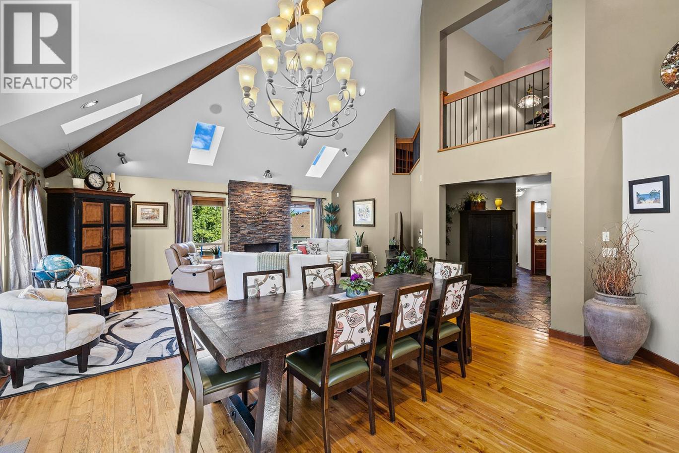 Experience true Okanagan living in Crawford Estates with your own private pool paradise. Featuring brand NEW roofs on both the main home and detached garage, this 6-bedroom, 6-bathroom home seamlessly blends timeless craftsmanship with modern comfort on a private, beautifully landscaped 0.4-acre lot. The striking exterior showcases timber and stone accents with dramatic rooflines that set the tone for the elegance within. Step inside to soaring vaulted ceilings, oversized windows, and a bright, open-concept design that fills the home with natural light. The chef-inspired granite kitchen features built-in appliances, a massive island, and abundant storage perfect for everyday living and entertaining. The spa-like primary suite offers a jetted tub, luxurious finishes, and tranquil views of the surrounding landscape. The walkout basement is an entertainer’s dream, complete with a custom bar, media lounge, and direct access to your private backyard oasis featuring a heated saltwater pool, hot tub, rock waterfall, and lush gardens. A detached, heated two-level garage/workshop adds versatility with its own bathroom, sauna, and wine cellar, ideal for hobbies, guests, or additional living space. With four covered parking spots, RV space, and ample room for family and visitors, this home perfectly balances function and sophistication. Nestled in one of Kelowna’s most desirable neighborhoods, Crawford Estates is known for its proximity to parks, trails, and top-rated schools. (id:6769)