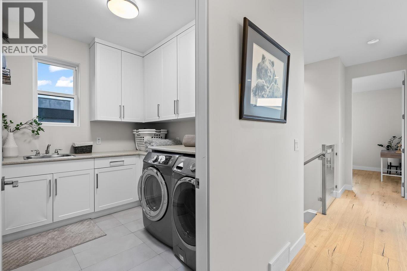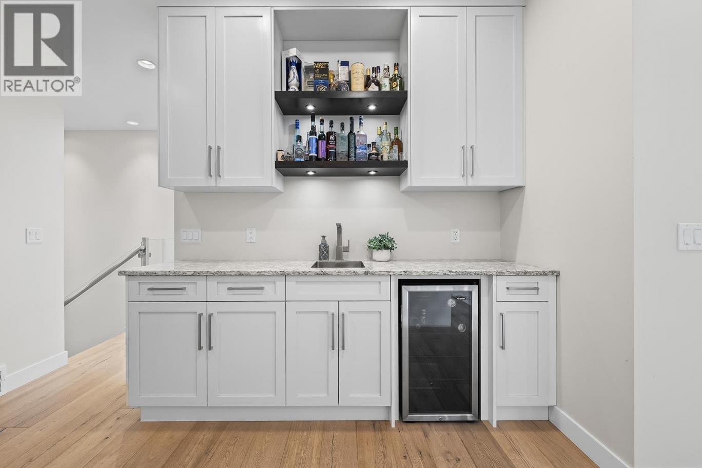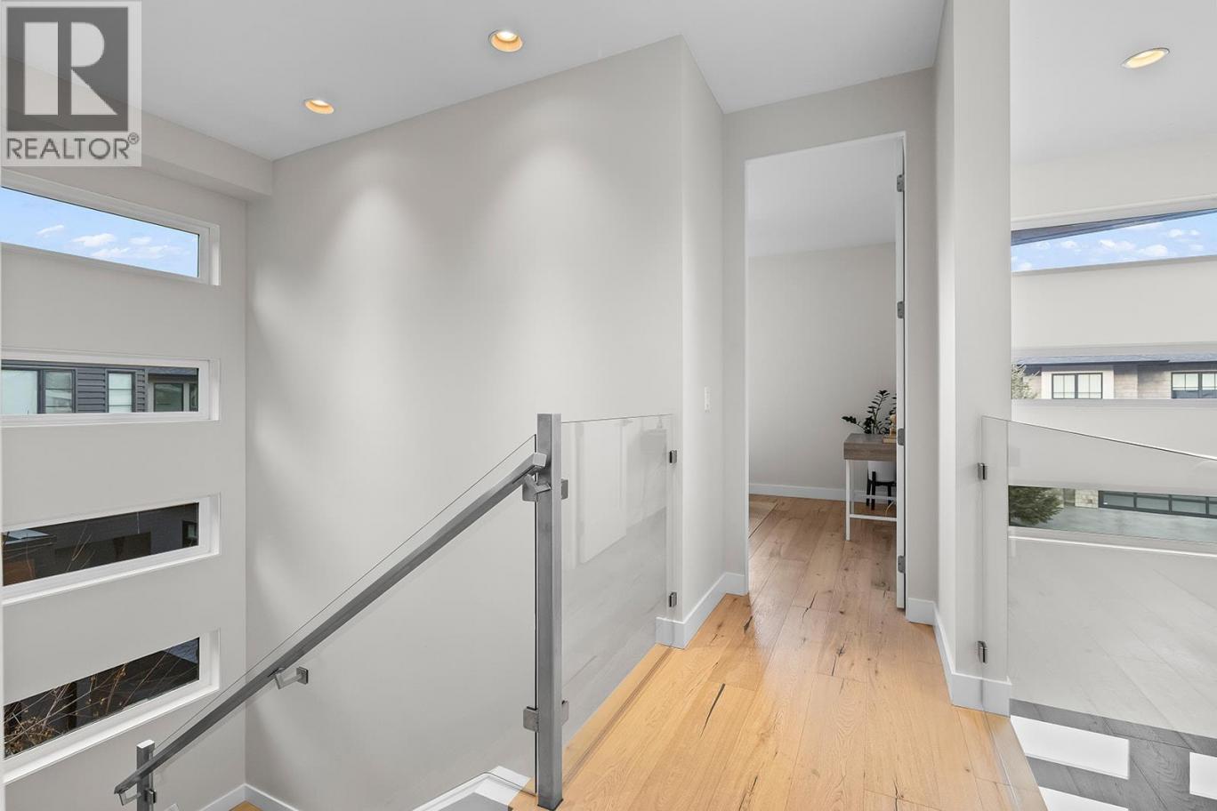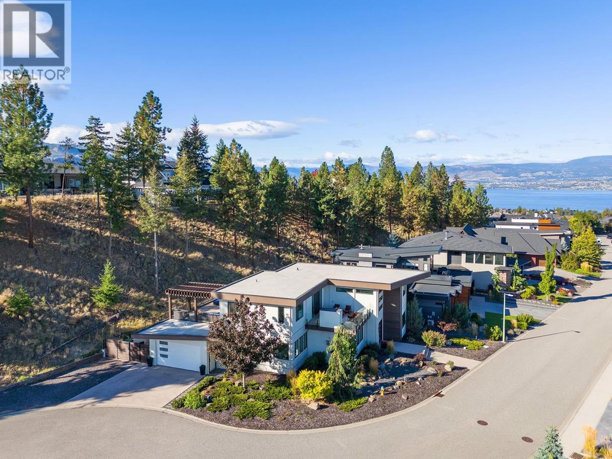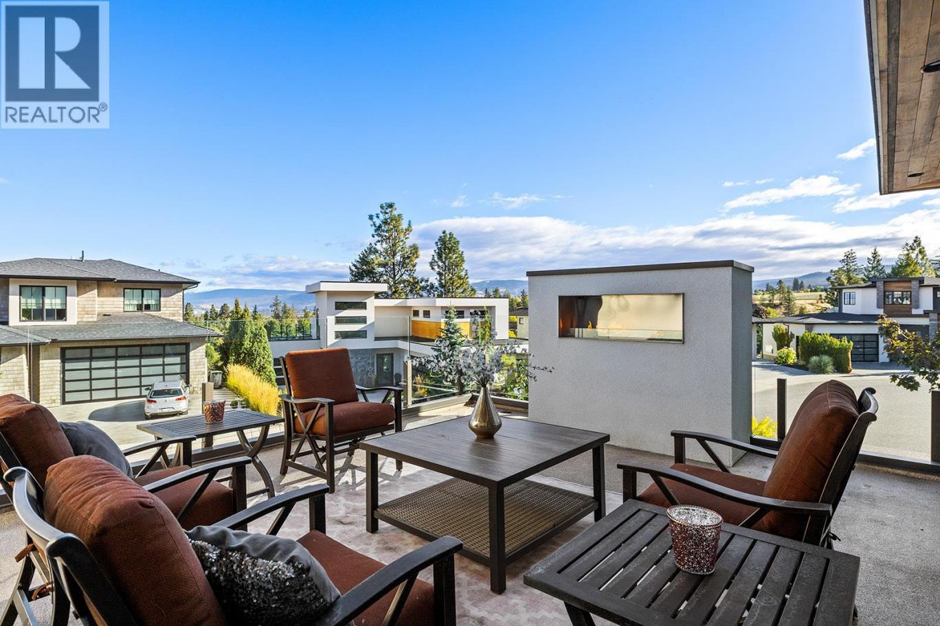 Welcome to 1091 Westpoint Drive, a stunning executive home perched at the summit of Woodland Hills, one of Kelowna’s most prestigious addresses. With over $350,000 in recent improvements and upgrades, this residence has been thoughtfully designed, built, & finished to reflect its elite setting. This is a home that truly rewards coming home—ideal for busy professionals, productive work-from-home days, entertaining friends & family, or enjoying relaxed family weekends. The main floor layout is exceptional, featuring a spacious great room with generous living & dining areas capable of hosting a dozen or more guests. The gourmet kitchen will impress any home chef, offering premium appliances including a double-door refrigerator, 6-ring gas stove, oversized island, & Quartz countertops. A large office/den with a striking floating carbon fibre desk accommodates multiple workstations & a glass-fronted wine room adds function & flair. The primary suite on the main floor is a private retreat, complete with a spa-inspired ensuite featuring a soaker tub, walk-in shower, & direct access to a primary-adjacent hot tub. Upstairs, four additional spacious bedrooms are connected by a central loft and media area with a built-in wet bar, plus access to two upper decks, one with outdoor fireplace & lake view. Additional features include white oak plank flooring, in-floor heating on the main, instant hot water on demand, smart lighting, 6-zone audio, & dual 5.1 surround systems. (id:6769)