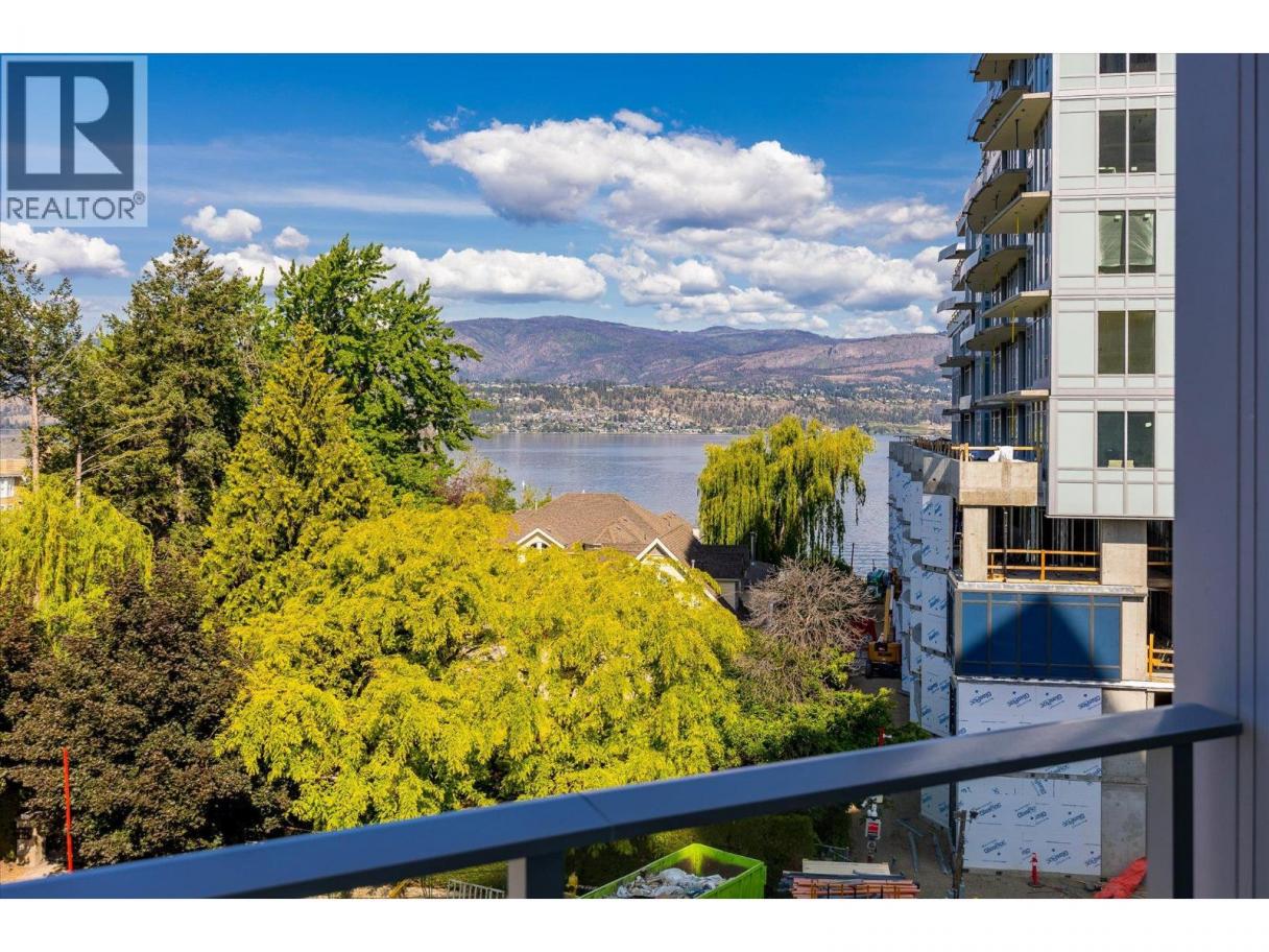 Priced well below assessed value of $854,000! Live steps from the shoreline in Aqua Waterfront Village, an elevated lakefront community in Kelowna’s desirable Lower Mission. This 2 bed, 2 bath home offers approx. 885 sq. ft. of intelligently designed interior space with two bedrooms, expansive windows and a spacious S/W balcony, offering natural light and lake views above the treetops. A split bedroom layout allows for privacy and flexibility. The kitchen features modern two-toned cabinetry, quartz countertops, under-cabinet LED lighting and a premium stainless steel appliance package, incl. a wine fridge. Enjoy luxury wide-plank vinyl flooring throughout the kitchen, living/dining area and bedrooms, blackout roller shades in both bedrooms and an energy-efficient central heating/cooling system. The spa-inspired bathrooms showcase porcelain tile and quartz countertops. 1 secure parking stall (with the rare chance to buy a 2nd stall), 1 storage locker, 1 bike locker are included. Amenities include an outdoor pool and hot tub, gas fire pits and BBQ’s, a fireside lounge and co working area, 2-level fitness centre, pet wash and bike wash and maintenance area. Vacant and ready for quick possession. Only a 5% deposit required. Buyer to verify all details and measurements if deemed important. All offers must be written on the Developer’s CPS. (id:6769)