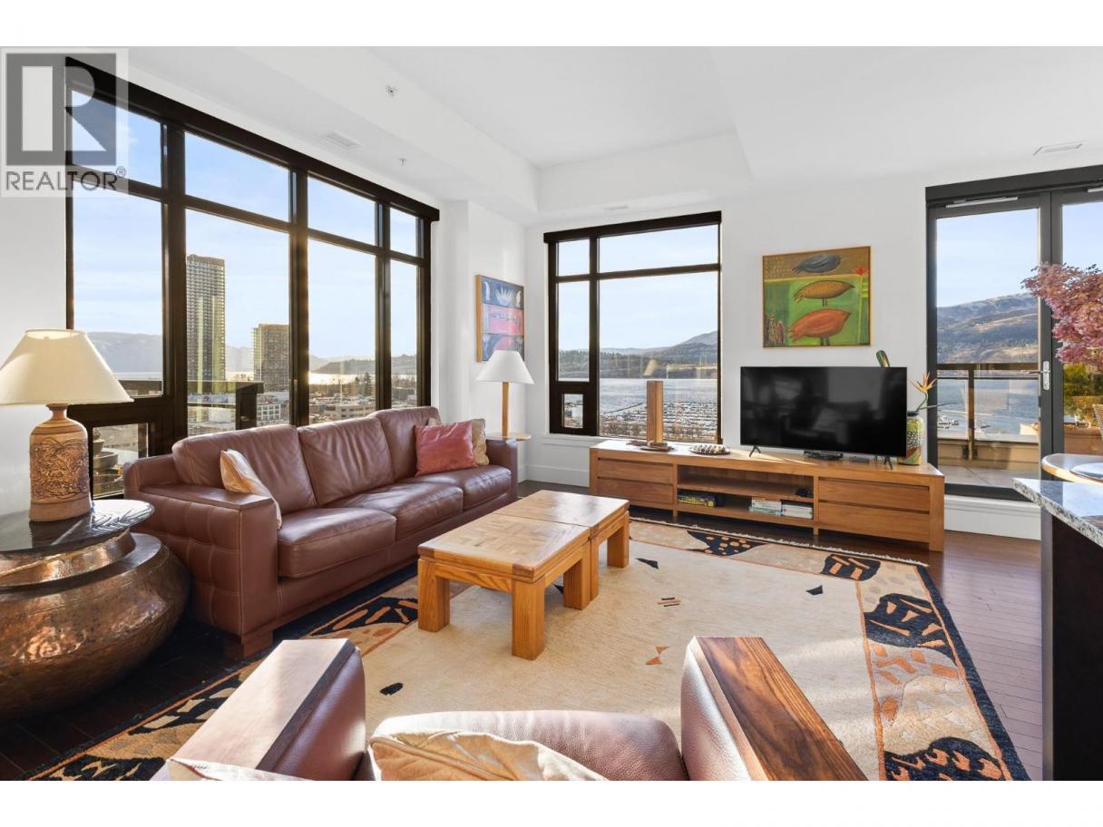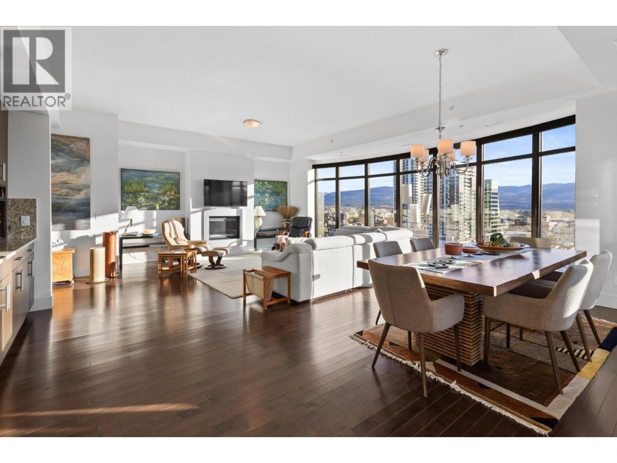 Welcome to the Sky Suite at The Madison, a rare luxury corner residence in one of Downtown Kelowna’s most exclusive boutique buildings. This expansive three bedroom, three bathroom condo offers over 2,400 square feet of refined living space, perfectly positioned to capture breathtaking lake and city views through dramatic floor-to-ceiling windows. Thoughtfully designed with elevated finishes throughout, the home showcases travertine, hardwood flooring, high-gloss granite, and custom cabinetry with generous closet and storage space. The gourmet oversized kitchen is a chef’s dream, featuring a granite island with eating bar, fully equipped stainless steel appliances, a six-burner gas stove, with an additional wet bar and wine fridge, ideal for both everyday living and entertaining. The luxurious primary suite is a private retreat, complete with a spa-inspired ensuite offering dual sinks, a glass-enclosed shower, and a soaker tub. Two additional bedrooms and bathrooms provide flexibility for guests, a home office, or family living. Step outside to enjoy two private balconies, perfect for soaking in the views and Okanagan sunshine. The Madison is a unique architecturally designed boutique building with only 57 residences across 15 storeys, offering privacy and exclusivity. Residents enjoy access to a fitness centre, and pets are welcome with restrictions. Located in the heart of the Downtown Kelowna Cultural District, this home boasts exceptional walkability. You’re steps from the waterfront, beaches, boardwalk, award-winning restaurants, cafes, galleries, shopping, and year-round cultural events. Whether it’s a morning stroll by the lake or an evening out downtown, everything Kelowna has to offer is right at your doorstep. (id:6769)