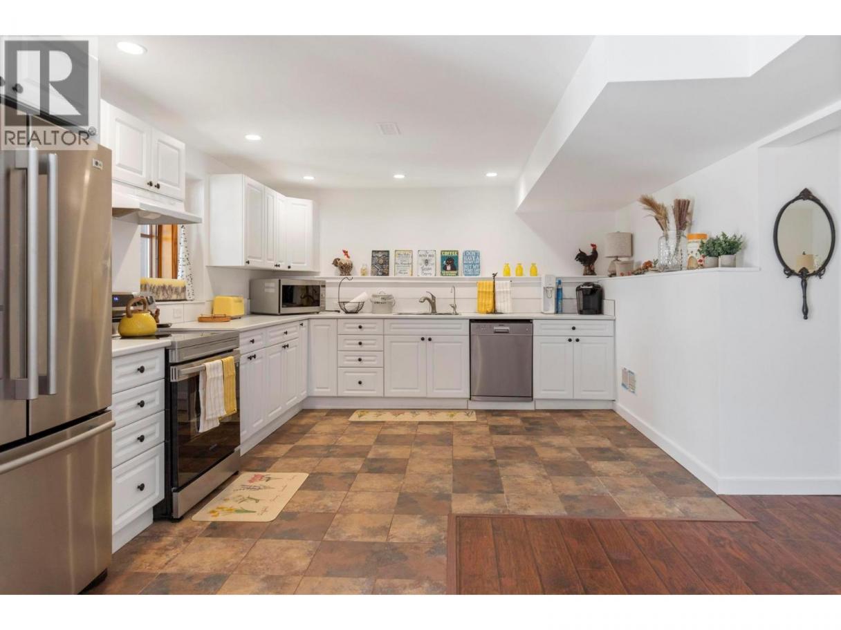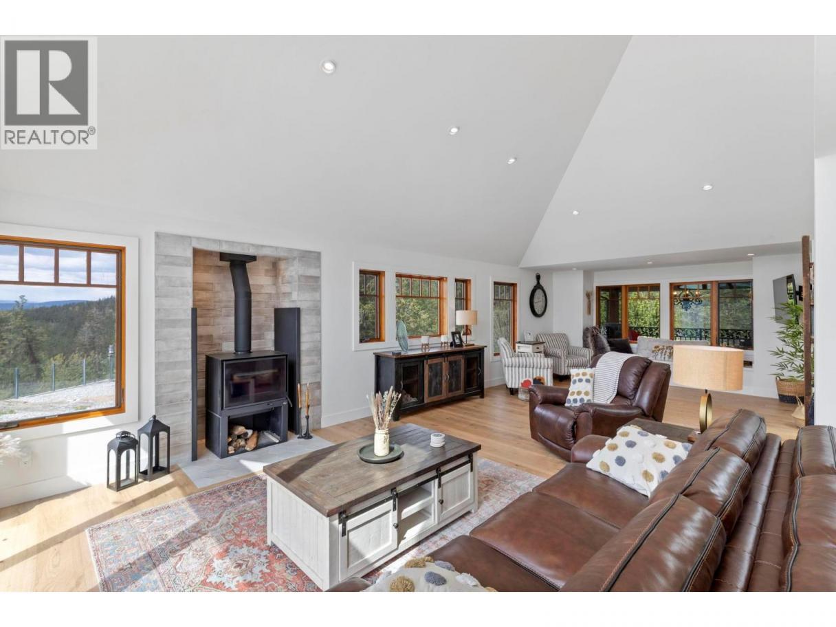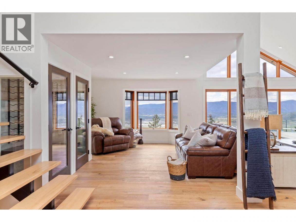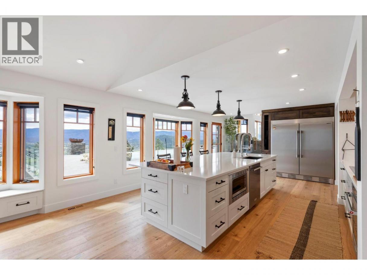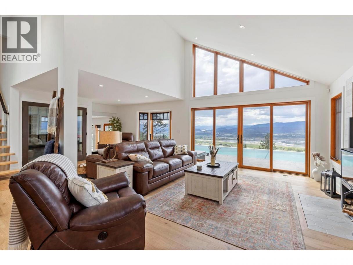 Over 6000 square foot recently renovated six bedroom, six bathroom residence situated on 9.364 acres of land in the Ellison area of Kelowna with a huge pool, lake views, and more. The home has been renovated from top to bottom and down to the studs, including newer electrical, plumbing, drywall, insulation, exterior (including roof), all cosmetic finishings, and more, making this a showstopping renovation by Caliber Developments. Through the gated entry, you are immediately drawn to the wood and stone exterior of the home, with a huge oversized triple car garage and additional side garage, perfect for a dedicated workshop. The living room with over height ceilings/windows is complimented by a wood-burning stove and a cooled wine room. Down a half-level is the new kitchen, complimented by brand-new appliances, an emphatic double island, and a family room, all opening up to the outdoor living space for a perfect indoor/outdoor transition. Off the kitchen is a powder room, and bedroom/office. Upstairs, the family-friendly layout offers three bedrooms, including a spacious master bedroom with his/her sinks, a freestanding tub, and tiled shower. There is a 35' by 34' recreational room, perfect for a studio/office, gym, kids room, etc, with a bathroom and rough-ins for a bar. There is a fully self-contained legal suite in the basement, great for guests! Outside, the infinity pool offers expansive views of the lake and valley ahead, and concrete areas for entertaining. (id:6769)
