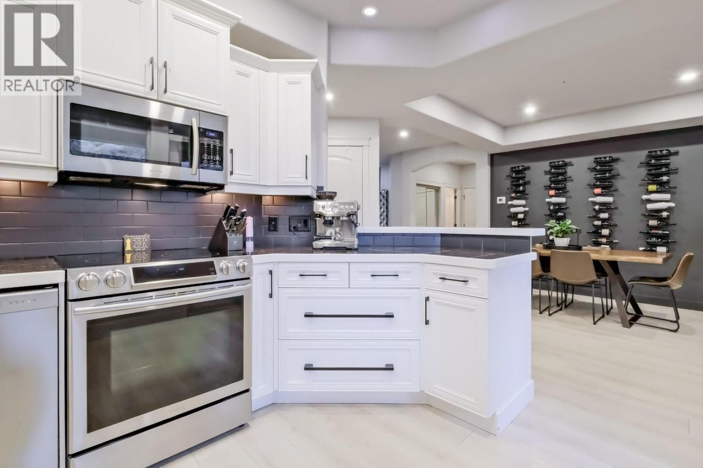 Nearly 1,300 sq. ft. of beautifully updated living space in this spacious 2 bedroom + den corner condo in Terravita. Thoughtfully renovated throughout, this home features newer flooring and paint, a stylish double vanity ensuite, custom primary closet, built-in entry storage, and a modern fireplace surround. The bright, open concept layout is ideal for entertaining, offering a generous dining area accented by a custom wine feature wall and a well appointed kitchen that flows seamlessly into the living space. Step outside to the large covered patio complete with sun shades, gas hookup, and direct access to greenspace - perfect for kids and pets. Additional highlights include secure underground parking, a designated storage unit, and a pet and rental friendly complex. Ideally located adjacent to Shannon Lake Golf Course and close to amenities, schools, hiking and renowned wineries. Downtown Kelowna is just a short 15 minute drive from your door - this home is move-in ready! (id:6769)