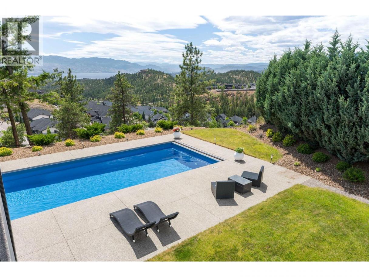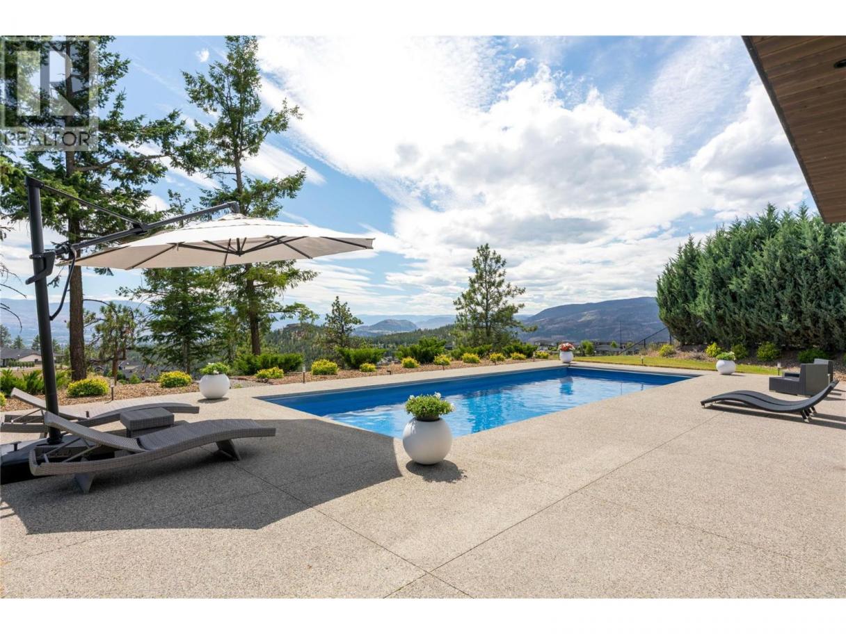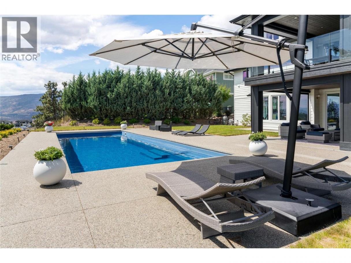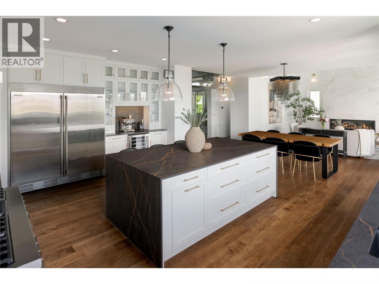 Completely renovated from top to bottom, this breathtaking residence embodies refined living in Wilden—Kelowna’s most coveted enclave. The striking modern exterior with crisp white & black accents makes a bold statement, setting the stage for the exceptional design inside. Expansive windows frame captivating lake & mountain views, while soaring ceilings & a stunning floor-to-ceiling fireplace create a grand yet inviting atmosphere. The designer kitchen is a showpiece, featuring a massive Dekton island, 6-burner Thermador range, butler’s pantry, beverage centre & seamless flow to the covered deck—ideal for entertaining. Upstairs, the primary suite is a private sanctuary with sweeping views & an ensuite that rivals a luxury spa, complete with heated floors & a double rain shower. Two additional bedrooms & a full bath complete the upper floor. The lower level offers ultimate versatility with engineered hardwood: an elegant family lounge, custom wine cellar, gym space, guest bedroom & a bathroom with direct access to the outdoor retreat. Step outside to the saltwater pool with auto cover, hot tub & multiple lounging areas—surrounded by protected green space for unparalleled privacy. Notable features include real hardwood throughout the rest of the home, a 3-zone furnace, 240V EV-ready 3-car garage, electric window coverings, UV-filtering windows & solid 8ft doors. A true legacy home—where sophisticated design meets everyday comfort in an irreplaceable setting. (id:6769)
