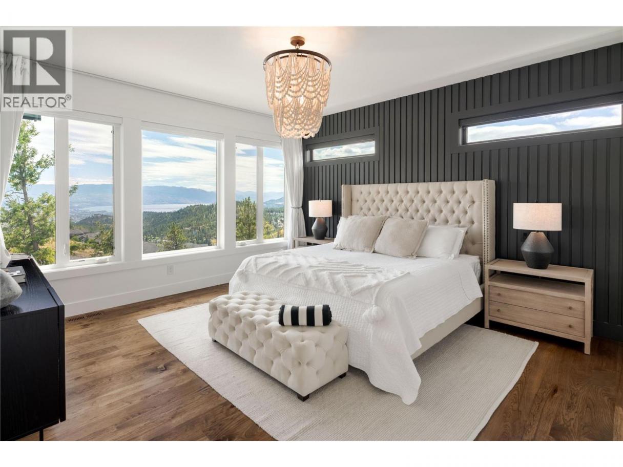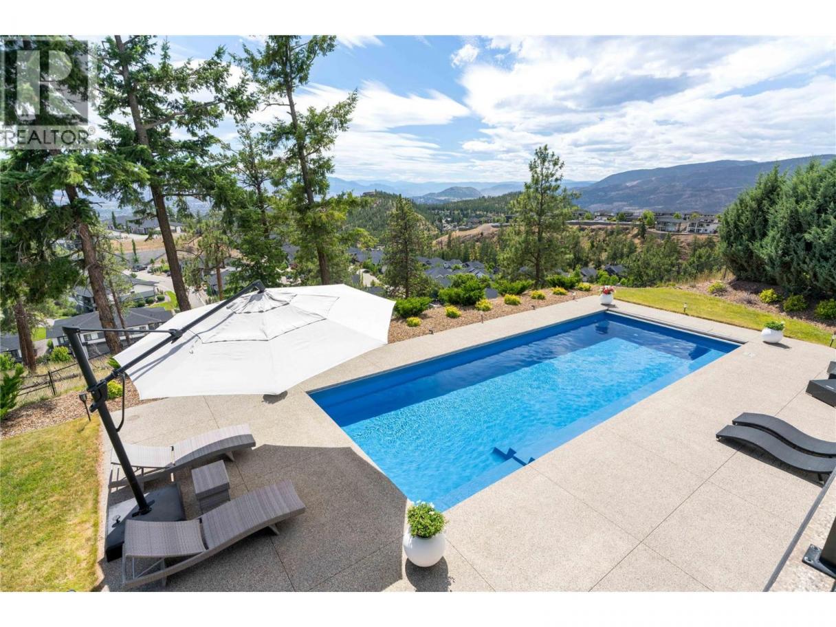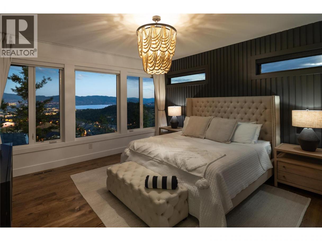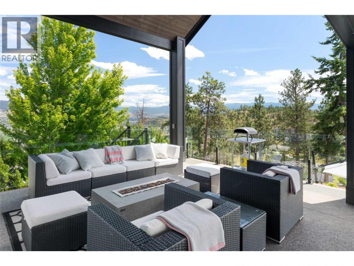 Completely renovated from top to bottom, this breathtaking residence embodies refined living in Wilden—Kelowna’s most coveted enclave. The striking modern exterior with crisp white & black accents makes a bold statement, setting the stage for the exceptional design inside. Expansive windows frame captivating lake & mountain views, while soaring ceilings & a stunning floor-to-ceiling fireplace create a grand yet inviting atmosphere. The designer kitchen is a showpiece, featuring a massive Dekton island, 6-burner Thermador range, butler’s pantry, beverage centre & seamless flow to the covered deck—ideal for entertaining. Upstairs, the primary suite is a private sanctuary with sweeping views & an ensuite that rivals a luxury spa, complete with heated floors & a double rain shower. Two additional bedrooms & a full bath complete the upper floor. The lower level offers ultimate versatility with engineered hardwood: an elegant family lounge, custom wine cellar, gym space, guest bedroom & a bathroom with direct access to the outdoor retreat. Step outside to the saltwater pool with auto cover, hot tub & multiple lounging areas—surrounded by protected green space for unparalleled privacy. Notable features include real hardwood throughout the rest of the home, a 3-zone furnace, 240V EV-ready 3-car garage, electric window coverings, UV-filtering windows & solid 8ft doors. A true legacy home—where sophisticated design meets everyday comfort in an irreplaceable setting. (id:6769)