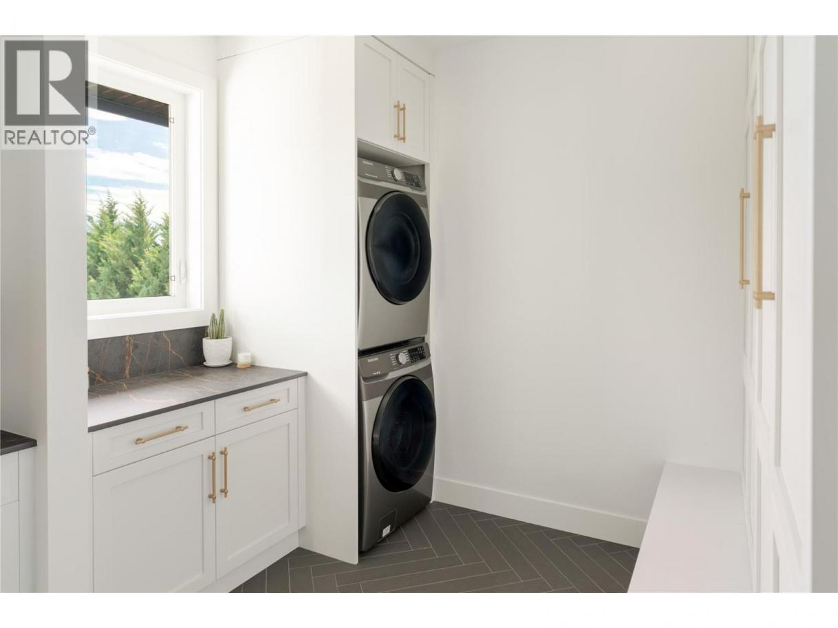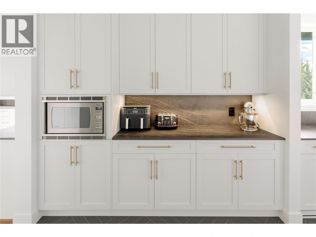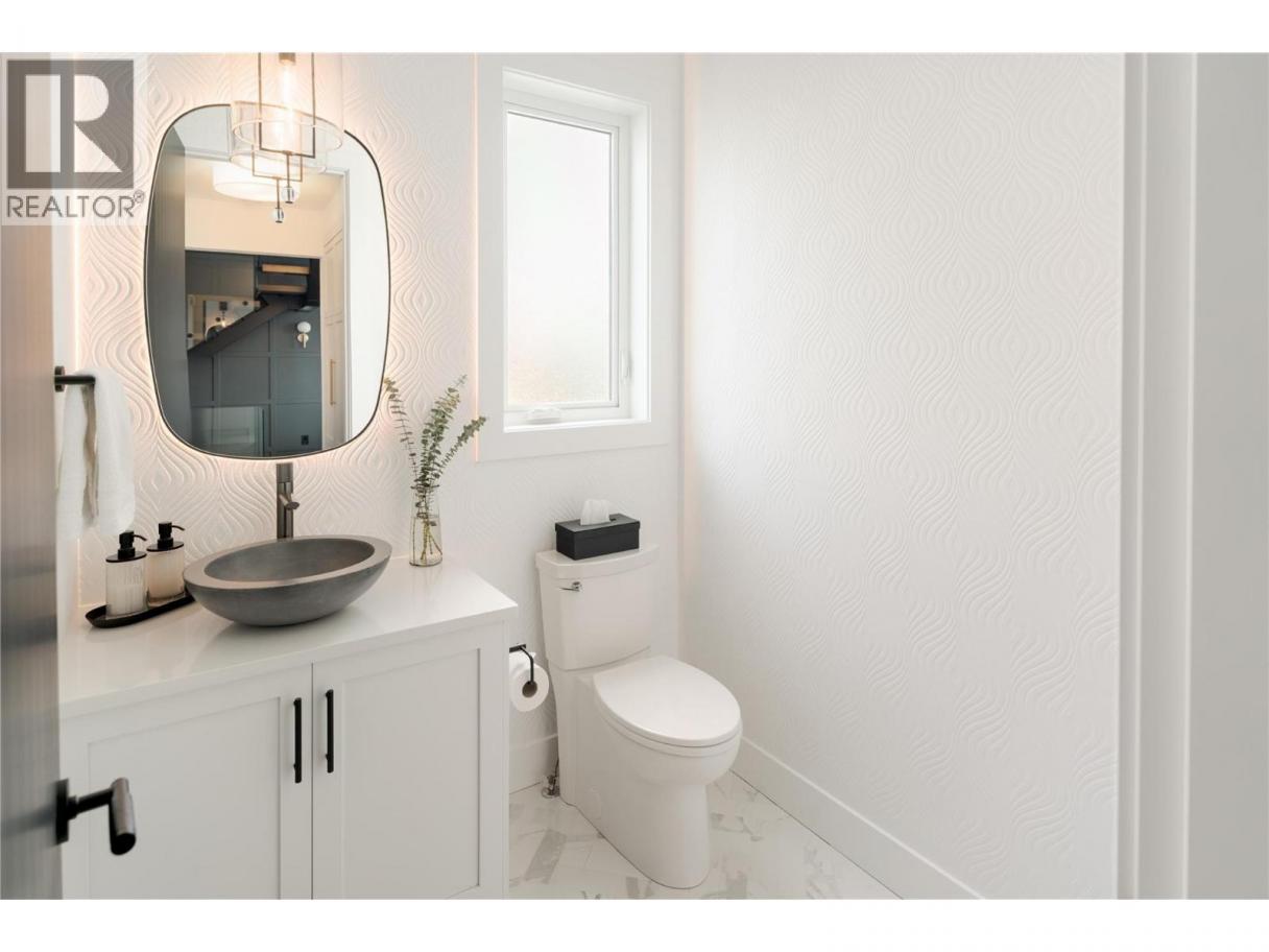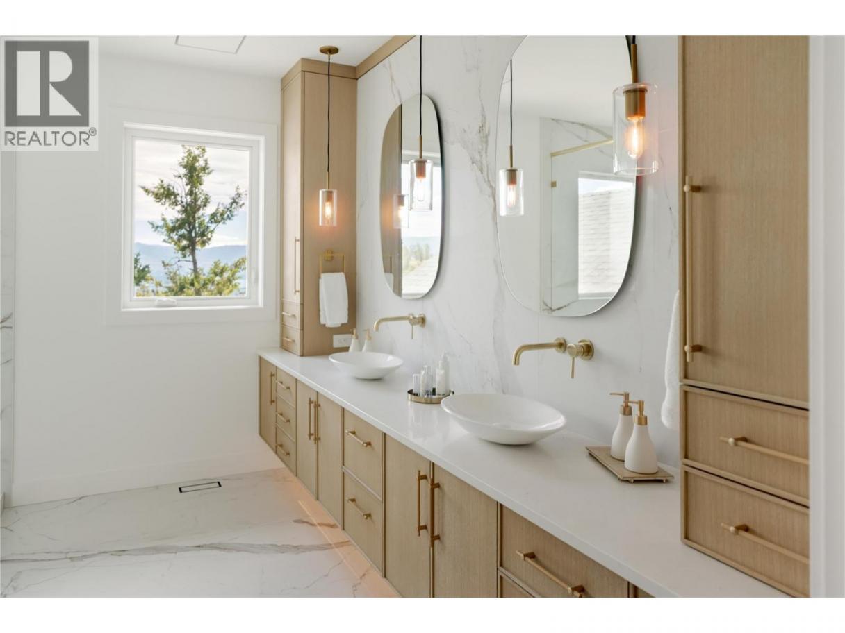 Completely renovated from top to bottom, this breathtaking residence embodies refined living in Wilden—Kelowna’s most coveted enclave. The striking modern exterior with crisp white & black accents makes a bold statement, setting the stage for the exceptional design inside. Expansive windows frame captivating lake & mountain views, while soaring ceilings & a stunning floor-to-ceiling fireplace create a grand yet inviting atmosphere. The designer kitchen is a showpiece, featuring a massive Dekton island, 6-burner Thermador range, butler’s pantry, beverage centre & seamless flow to the covered deck—ideal for entertaining. Upstairs, the primary suite is a private sanctuary with sweeping views & an ensuite that rivals a luxury spa, complete with heated floors & a double rain shower. Two additional bedrooms & a full bath complete the upper floor. The lower level offers ultimate versatility with engineered hardwood: an elegant family lounge, custom wine cellar, gym space, guest bedroom & a bathroom with direct access to the outdoor retreat. Step outside to the saltwater pool with auto cover, hot tub & multiple lounging areas—surrounded by protected green space for unparalleled privacy. Notable features include real hardwood throughout the rest of the home, a 3-zone furnace, 240V EV-ready 3-car garage, electric window coverings, UV-filtering windows & solid 8ft doors. A true legacy home—where sophisticated design meets everyday comfort in an irreplaceable setting. (id:6769)