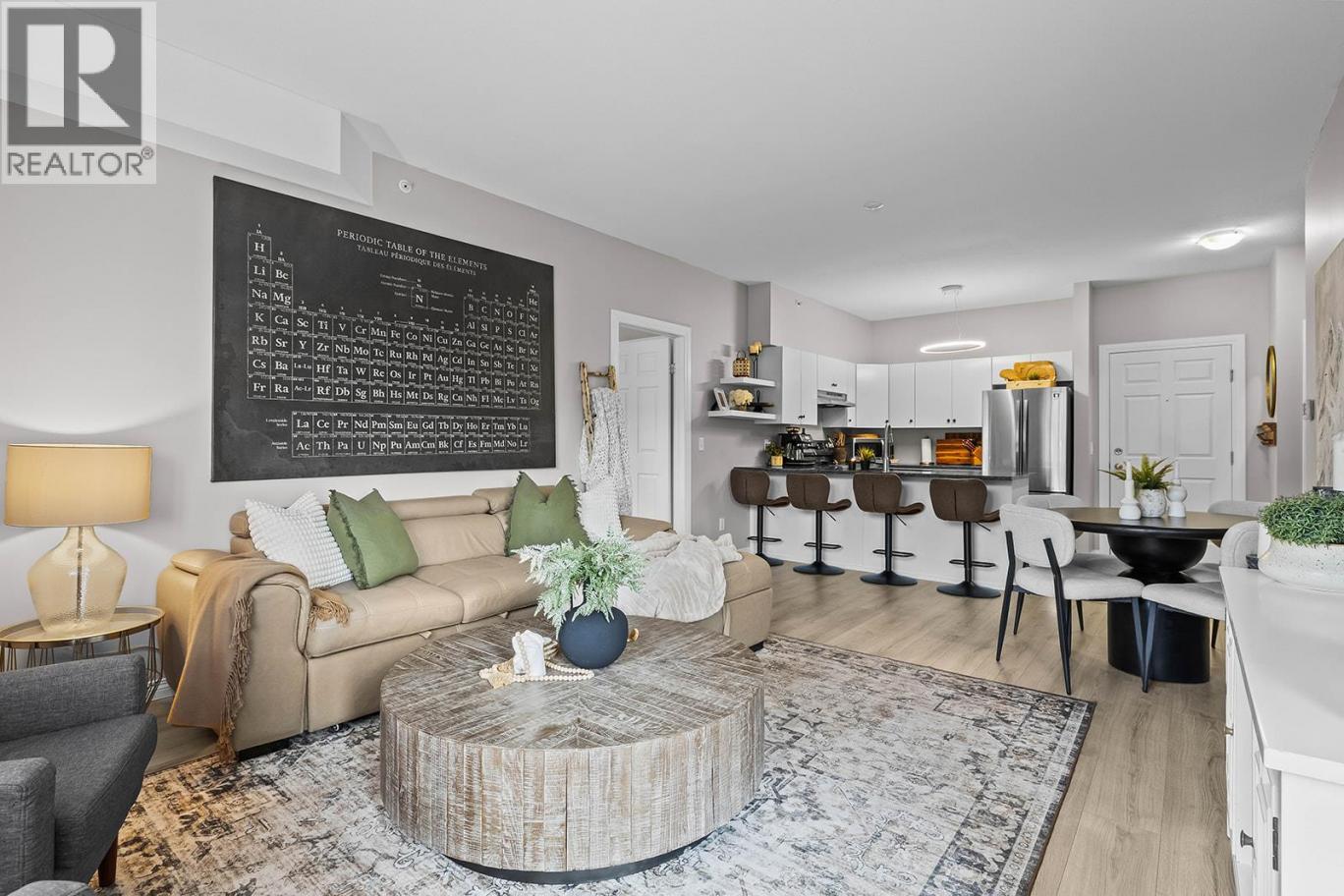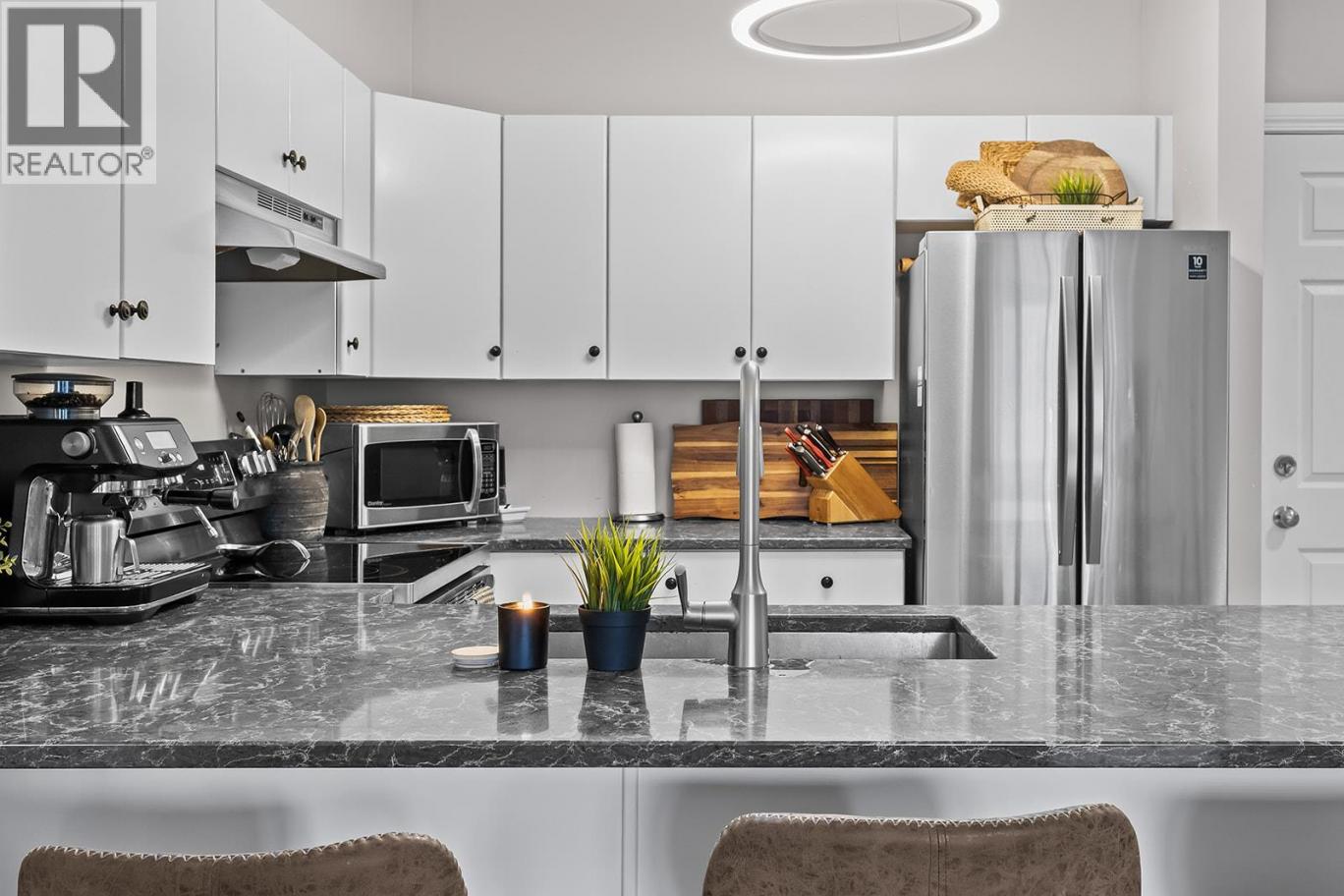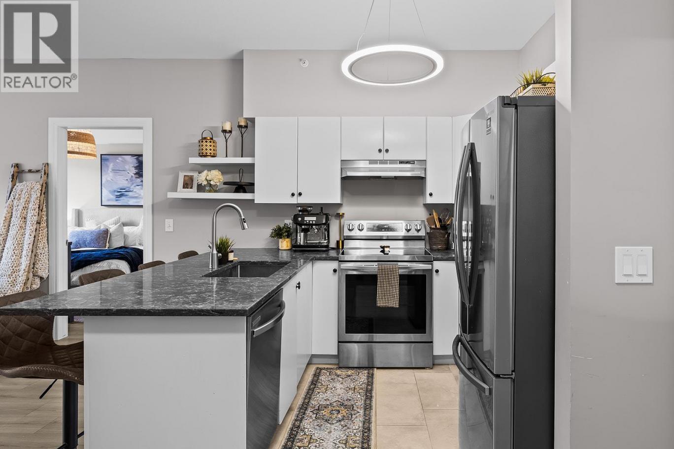 Beautifully updated, bright top floor 2 bedroom condo showcasing true pride of ownership. Finished in modern, soft pastel tones, this home features granite countertops, white cabinetry, stainless steel appliances, updated lighting, and stylish grey plank flooring, showing a perfect 10/10. Ideal as a primary residence or investment property, with both short- and long-term rentals permitted. Located just steps from the Quail Ridge Championship Golf Course and within walking distance or a short drive to UBCO. Conveniently close to shops, restaurants, coffee shops, a cidery, gas bar, pharmacy, and Kelowna International Airport. Includes one underground parking stall and access to a bike storage room. An excellent opportunity for investors, students, and golf enthusiasts alike, with quick access to the meeting office, fitness centre, and outdoor pool and hot tub amenities. (id:6769)