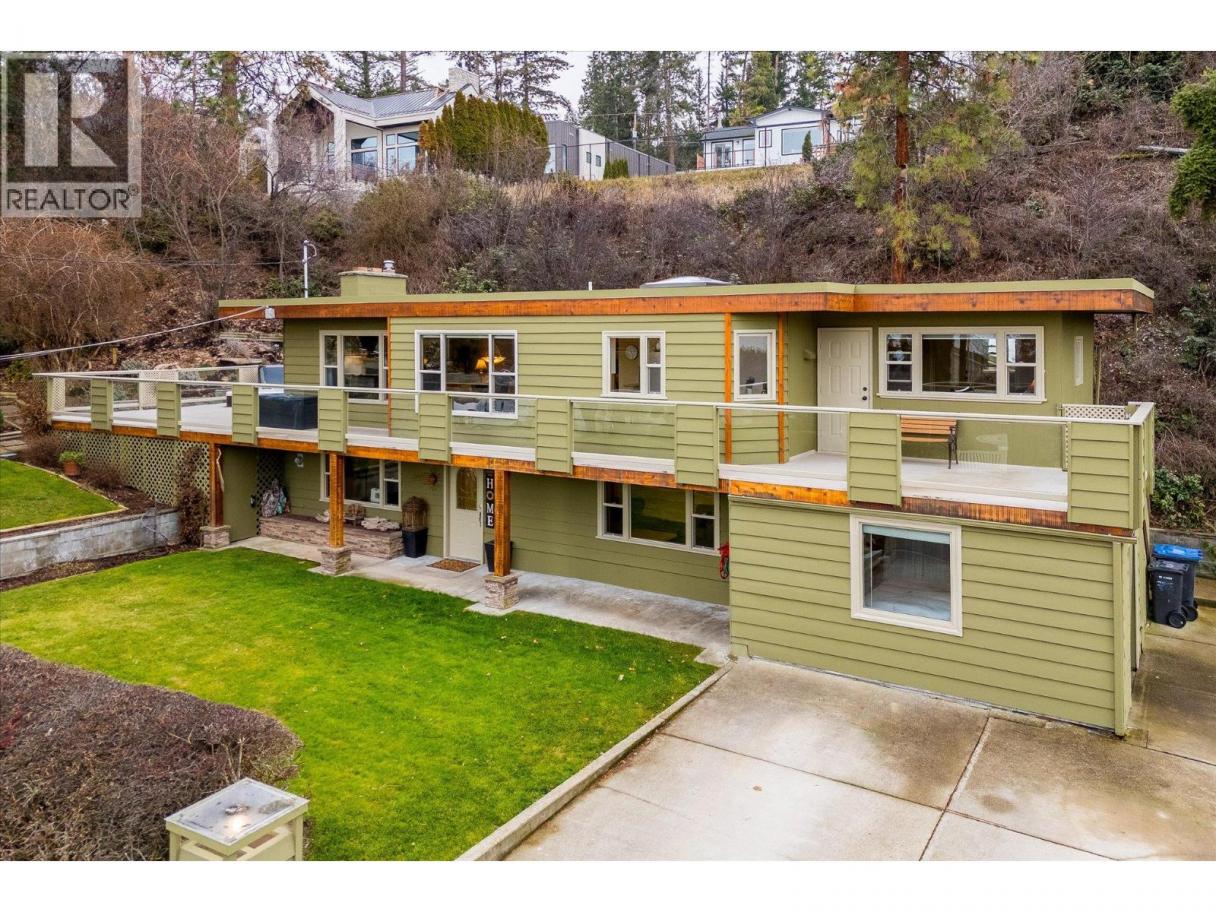 Welcome to 391 Braeloch Road, a beautifully situated family home in a quiet and private neighbourhood located across the street from the lake offering both space and lifestyle. Set on a generous 0.3-acre lot with mature landscaping, this property provides ample yard space for family, outdoor gatherings and room for a pool! Enjoy easy lake access across the street at Braeloch Beach where you can enjoy a swim or paddleboard, daily walks to nearby Cedar Creek Park (an off-leash dog park),close proximity to several of the Okanagan’s renowned wineries and world-class road biking route along Lakeshore Road. The home offers 4 bedrooms + den & 2 bathrooms, thoughtfully laid out with two berms and a four-pc bathroom on each level. Main floor features laminate flooring (added in 2018) thru out the kitchen, living & dining areas. The spacious open-concept living room is highlighted by a wood-burning fireplace with rock surround, perfect for staying cozy during the winter months. Step outside to the 1100 sqft wrap-around patio, complete with hot tub & gas hookup for a BBQ—ideal for entertaining or relaxing outdoors. The primary bedroom also enjoys private access to the front patio and peak a boo views of the lake. The lower level adds two additional bedrooms and a generous size family/rec room. First time offered for sale in over 40 years, this home offers the rare combination of location and lifestyle in one of the area’s most desirable settings. (id:6769)