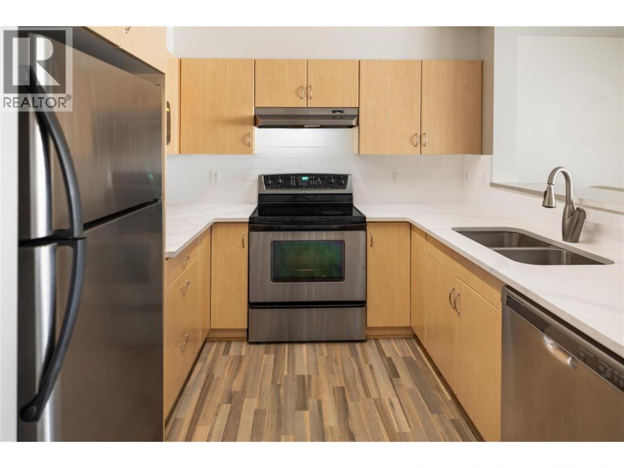 Immaculate & move-in ready, this 1 bedroom + den condo at The Verve combines stylish updates with everyday convenience. South-east exposure fills the home with natural light, highlighting the open-concept design. The kitchen is finished with quartz counters, stainless appliances & a sit-up bar that connects seamlessly to the dining & living area. A versatile den is perfect for a home office or guest space, while the spacious bedroom includes a walk-in closet with direct access to the bathroom. Step outside to the covered balcony overlooking the landscaped courtyard—a private spot for morning coffee or evening relaxation. Complete with in-suite laundry, secure underground parking & a storage locker. Residents enjoy resort-style amenities including an outdoor pool, volleyball courts & green space to gather with friends. An ideal choice for first-time buyers, young professionals or investors—this home offers both comfort & community in one of Kelowna’s most desirable condo developments. (id:6769)