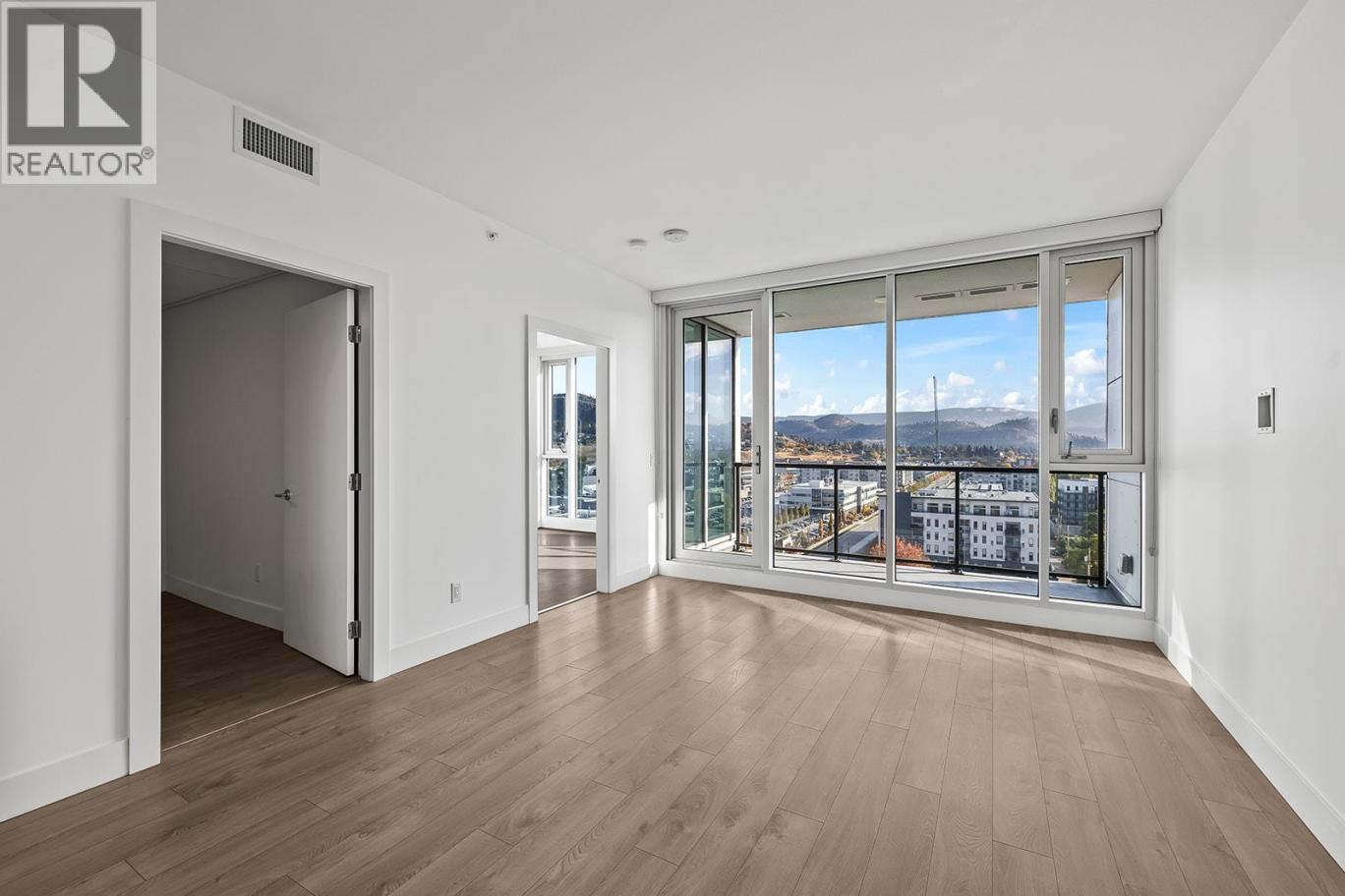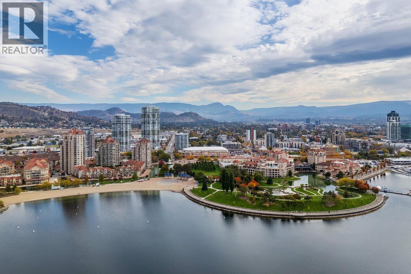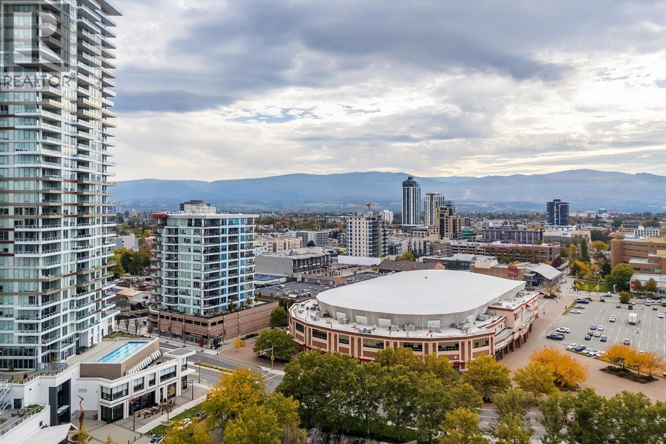 LIMITED-TIME INCENTIVE: Enjoy no strata payments for YOUR FIRST YEAR. Seller to prepay strata fees for any accepted offer in place before February 14th. Enjoy bright, panoramic 11th-floor views and a smart, modern layout in one of Downtown Kelowna’s most desirable buildings, Ellis Parc. This move-in-ready 2-bedroom home features rare east-facing city and mountain views that stay light and comfortable throughout the day, plus a covered balcony perfect for morning coffee or work-from-home breaks. Inside, the open-concept design offers 9-ft ceilings, floor-to-ceiling windows, and contemporary finishes throughout. The kitchen is both stylish and functional with flat-panel cabinetry, quartz countertops, under-cabinet lighting, and KitchenAid stainless steel appliances. The living space flows seamlessly to the balcony, creating an ideal setting for entertaining or unwinding after a busy day. The primary bedroom is bright and peaceful with impressive views, while the second bedroom is perfectly suited as a home office, guest room, or future nursery. Additional conveniences include in-suite laundry, roller blinds, secure underground parking, a private storage locker, and bike storage. Residents enjoy a fitness centre and lounge with outdoor terrace. Pet-friendly and rental-friendly, with low strata fees that include most utilities. Steps from Okanagan Lake, Waterfront Park, beaches, cafes, restaurants, and Prospera Place. (id:6769)