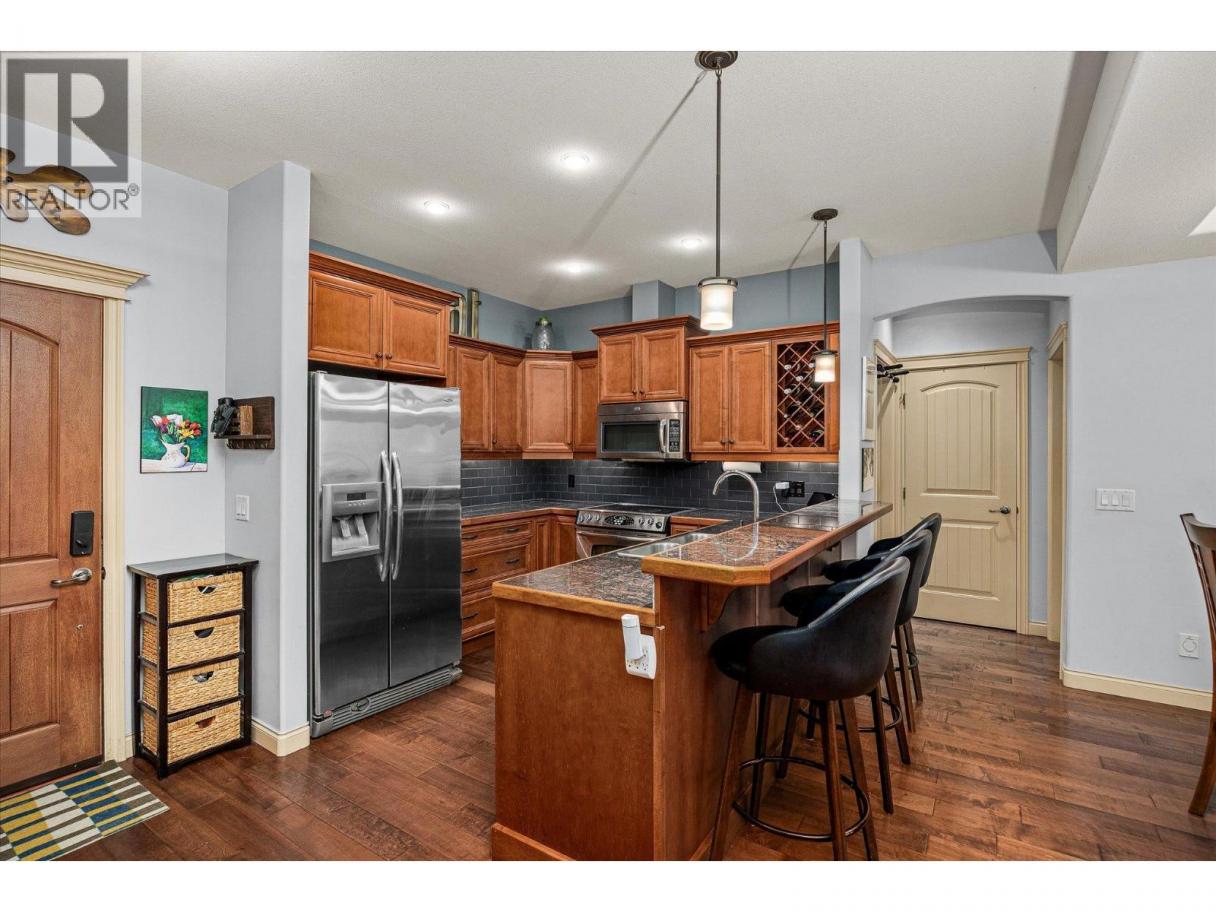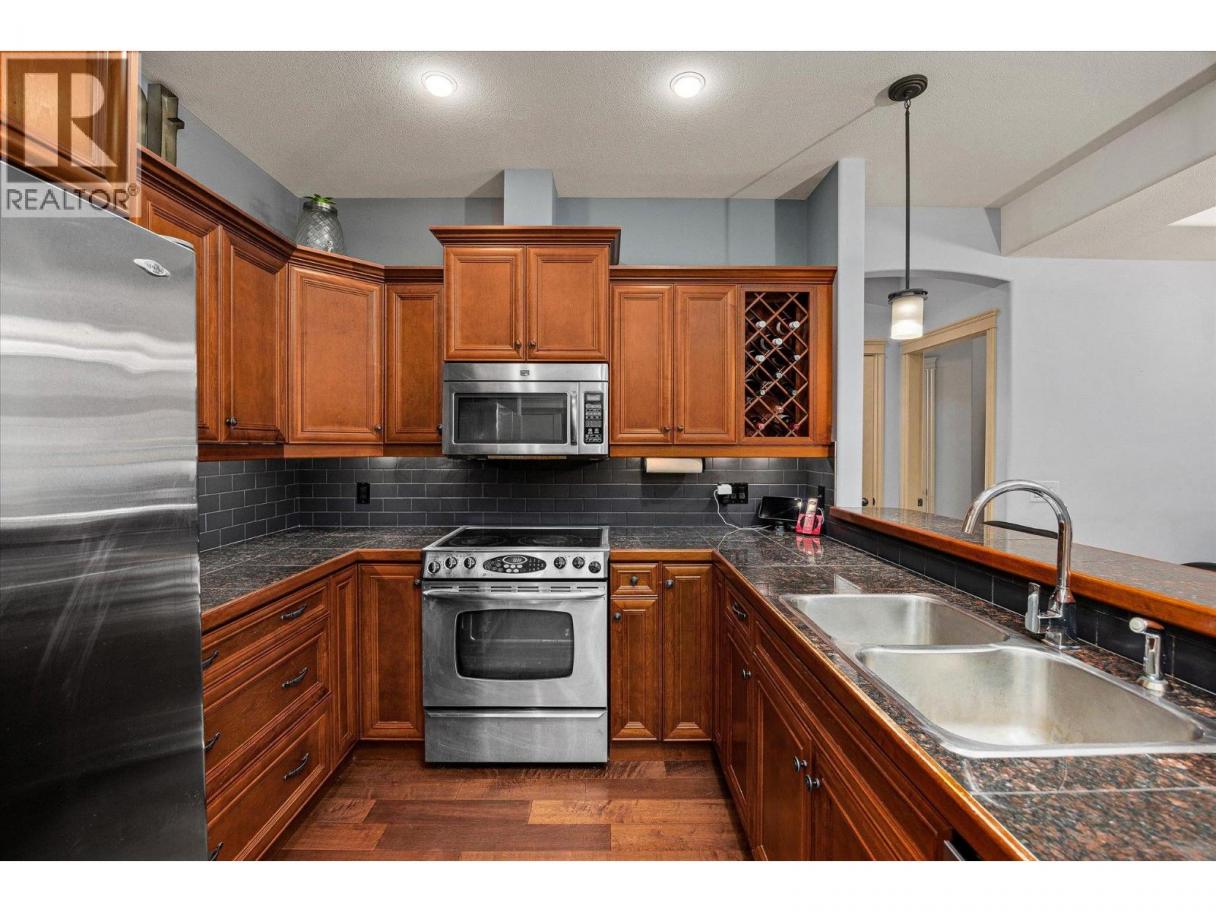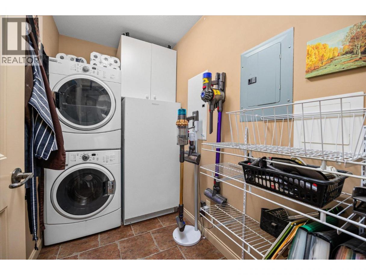 Welcome to Terravita, a gated community backing onto Shannon Lake Golf Course. This bright top-floor 2-bedroom, 2-bath home offers vaulted ceilings, a spacious open-concept layout, and abundant natural light throughout. The kitchen is well-appointed with stainless steel appliances, maple cabinetry, granite countertops, and a convenient eat-in bar, perfect for everyday living and entertaining. Relax by the rock-faced fireplace or step out onto your private deck, where you’ll enjoy peaceful views of the maple tree and nearby hiking trails. With no neighbouring units looking in, this elevated location offers exceptional privacy rarely found in condo living. One of the standout features of this home is the impressive amount of storage. In addition to generous in-unit storage and a dedicated in-suite laundry room, the unit includes a large private storage locker located in the parkade. The spacious primary bedroom comfortably accommodates a king-size bed and features a walk-in closet and a 3-piece ensuite. A second generously sized bedroom and a full main bathroom complete the thoughtful layout. This home also includes one underground parking stall, ample visitor parking, and beautiful golf course and mountain views. Ideally located just minutes from schools, shopping, restaurants, wineries, golf, and everything West Kelowna has to offer. Don’t miss this opportunity to enjoy top-floor living in a quiet, private setting. (id:6769)