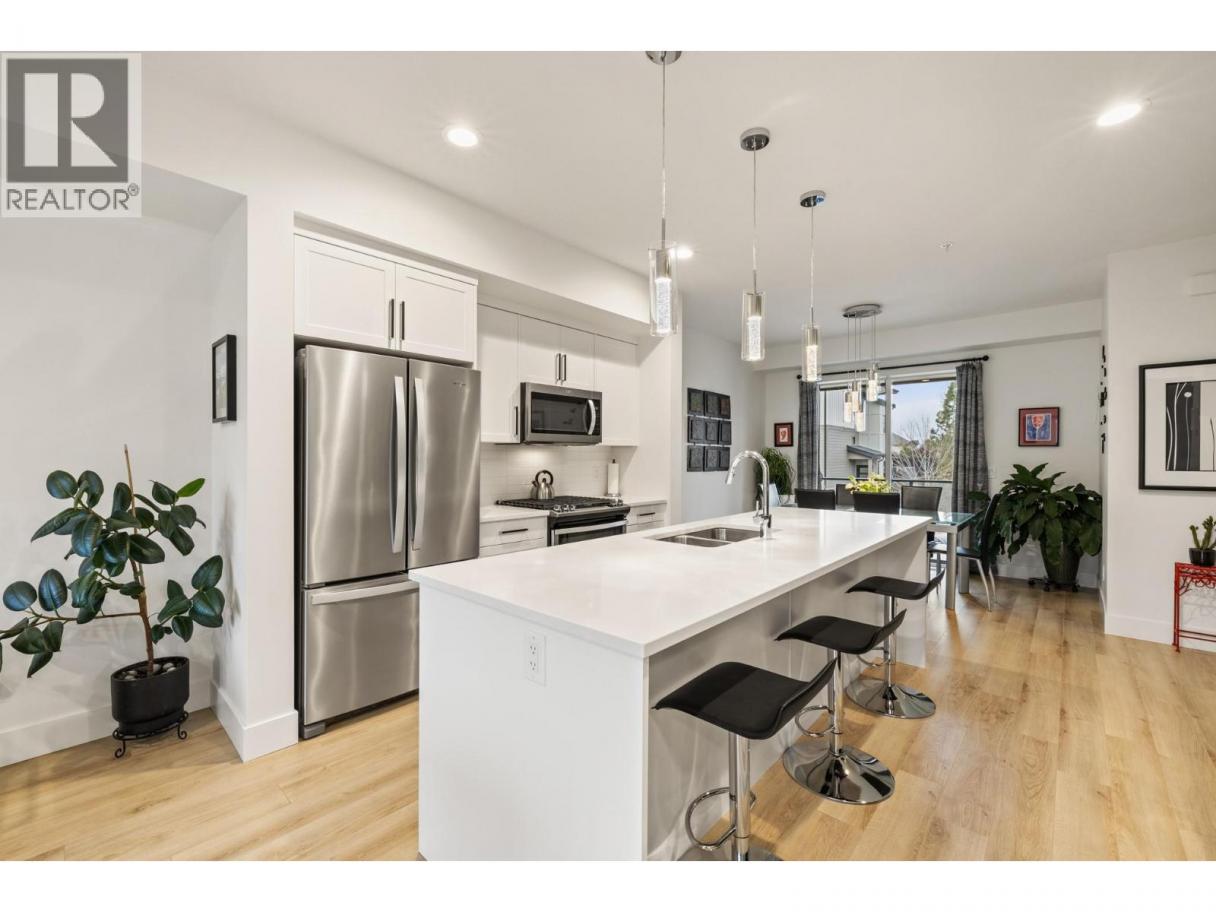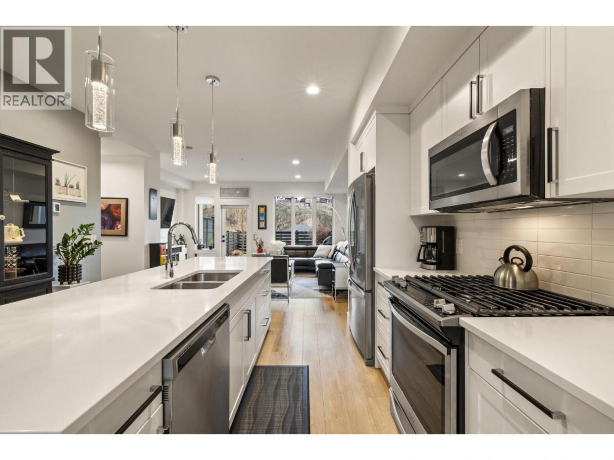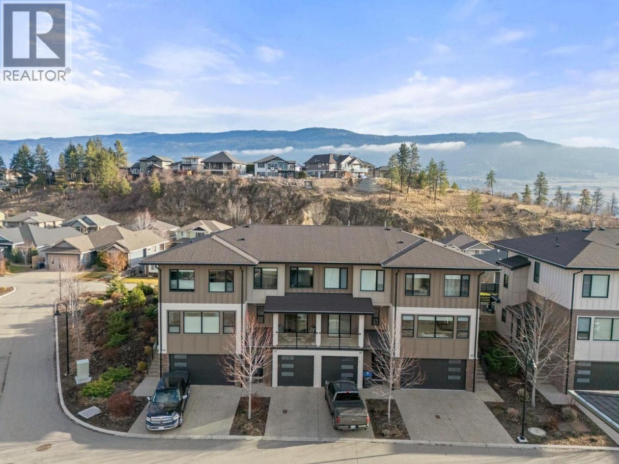 Best Location in the complex!! Modern 3-bedroom, 3-bathroom townhouse and ideally located in the heart of Lake Country. This well-designed 3-level home offers 1,478 sq. ft. of thoughtfully planned living space with a peaceful setting in a family friendly community. The bright, open-concept second level features a spacious great room, dining area, and contemporary kitchen with a large island—perfect for entertaining—along with a convenient 2-piece bath. Upstairs, you’ll find three bedrooms including a comfortable primary suite with a 3-piece ensuite, plus a full main bathroom for family or guests. The entry level includes a welcoming foyer and access to the oversized double tandem garage, providing parking for two vehicles plus an additional driveway space. Enjoy outdoor living with a private fenced yard, patio, and balcony, all within a landscaped, secluded complex close to parks, schools, shopping, transit, golf, and recreation. With central air, natural gas forced-air heating, quality finishes, and pets allowed with restrictions, this move-in-ready townhome offers exceptional value in a sought-after Lake Country location. (id:6769)