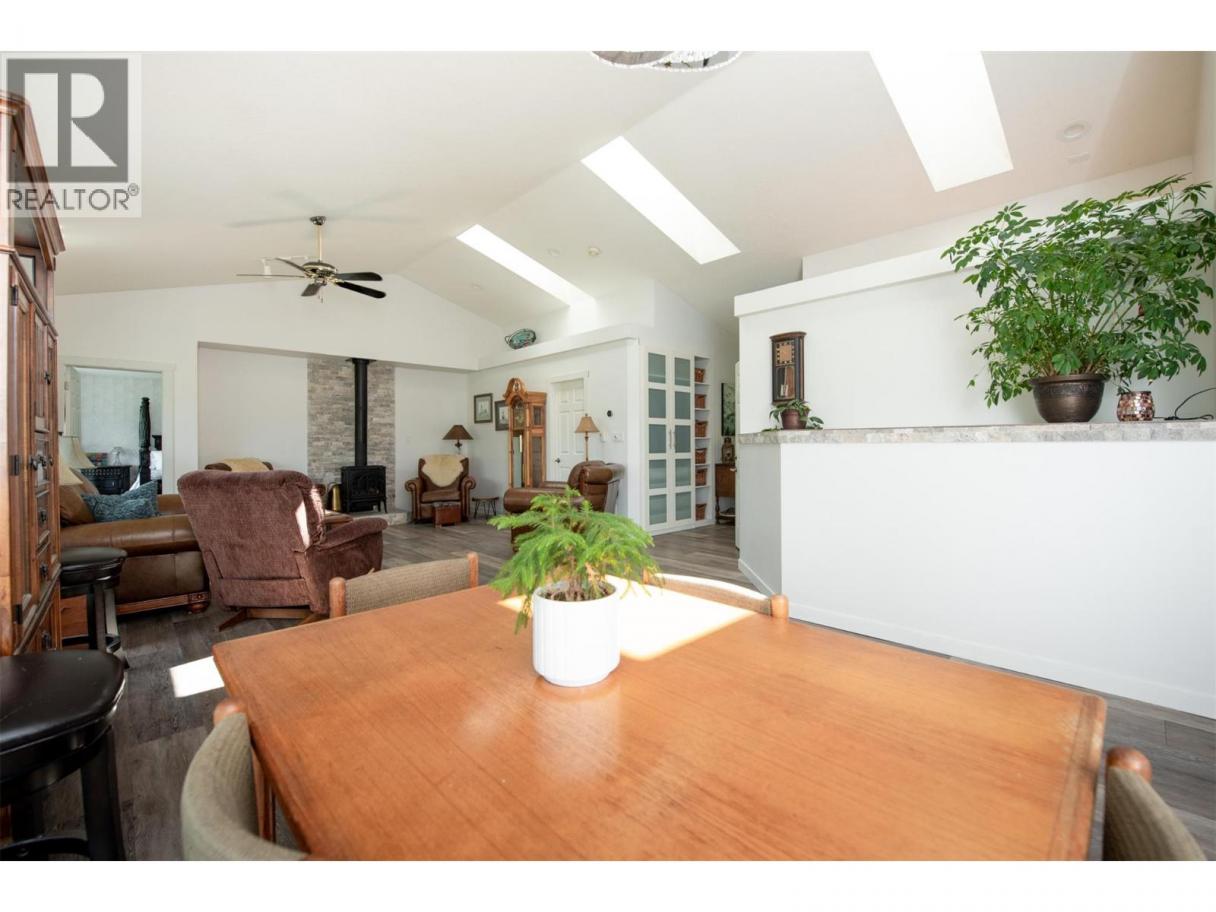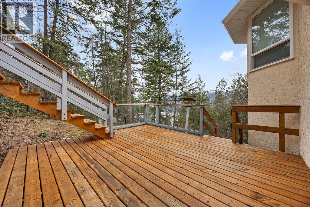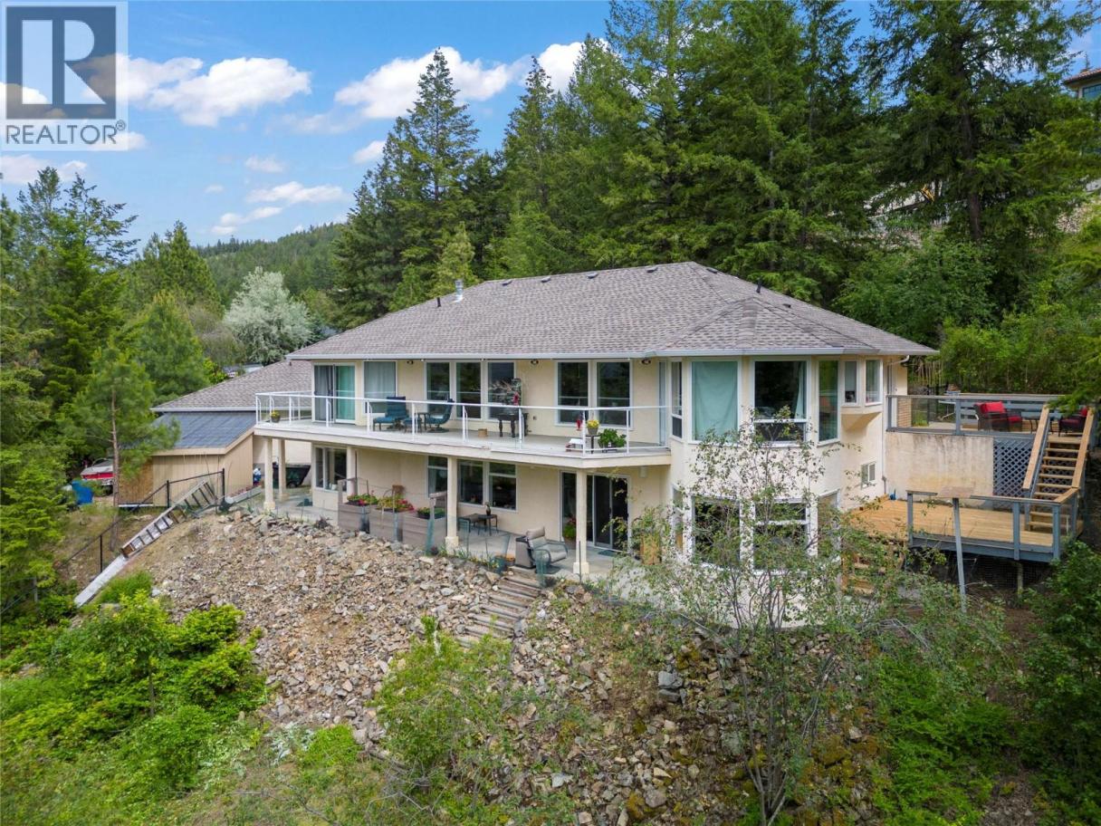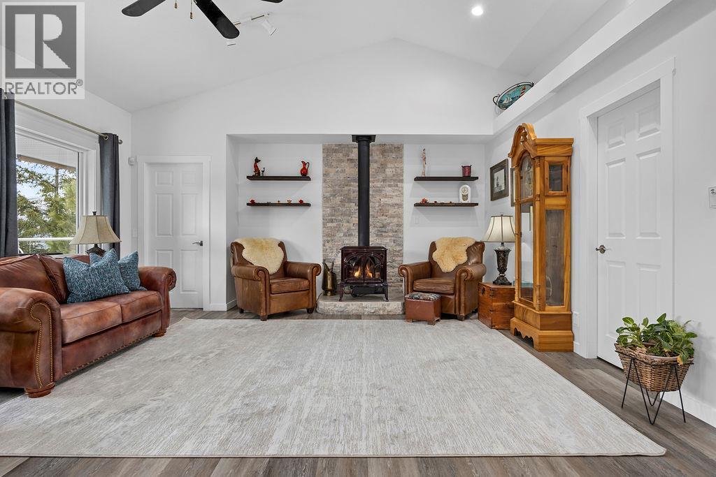 Discover your dream retreat on a private and quiet .63-acre lake view lot. New roof (2023), 10 new windows on main floor, flooring, and self-contained two-bedroom walkout suite! (Over $100,000 spent on renos in the last three years). This home offers lake views and natural light through vaulted ceilings and skylights. Custom kitchen with walk-in pantry and breakfast nook. Great room features Jotul gas fireplace, new hearth, dining area, and living room. Master suite with deck access, walk-in closet, and ensuite bathroom with Neptune tub and double sinks. Second bedroom ideal as den or guest room with Murphy bed. Daylight suite offers modern amenities and lake views. Features include: Jotul gas fireplace, Sound-deadening insulation - New heat pump - Updated appliances - Refinished deck and stairs - Insulated garage doors - Fire-smart clearing -Heated/cooled triple garage with workshop, RV & boat parking. Fenced yard with room for additional shop, plus private beach and boat launch access! (id:6769)