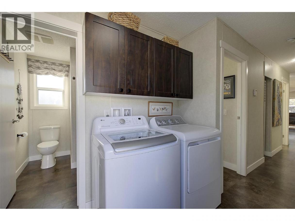 Modern, beautifully maintained, and move-in ready, this 3-bedroom, 1-bathroom home in Westview Village welcomes you with an inviting layout designed for effortless living. Located in the family-oriented section of the park, this property offers the rare advantage of no age restrictions and a flexible pet policy, allowing for two small dogs, one larger dog, or two indoor cats. The heart of the home features a spacious open-concept living area where vaulted ceilings and large bay windows fill the room with natural light. The kitchen offers plenty of cupboard and counter space, newer appliances, and flows into a dedicated dining area. The primary bedroom offers a peaceful retreat, with a full 4-piece bathroom located just off the main hallway. Two additional bedrooms provide versatility to serve as a home office, hobby room, or for extra storage. The home is also equipped with A/C for those hot summer days and a fibre optic connection for seamless connectivity. Outside, you'll find a semi-fenced yard with thoughtful landscaping and a custom-built deck ready for you to enjoy the West Kelowna summers. The property also includes two storage sheds, a single carport, and an additional driveway parking spot. Situated in a convenient central location, you are only minutes from the lake, shopping, wineries, golf courses, and local dining. This is a rare opportunity to own an affordable, turn-key home in one of West Kelowna’s most desirable parks. Book a viewing today! (id:6769)
