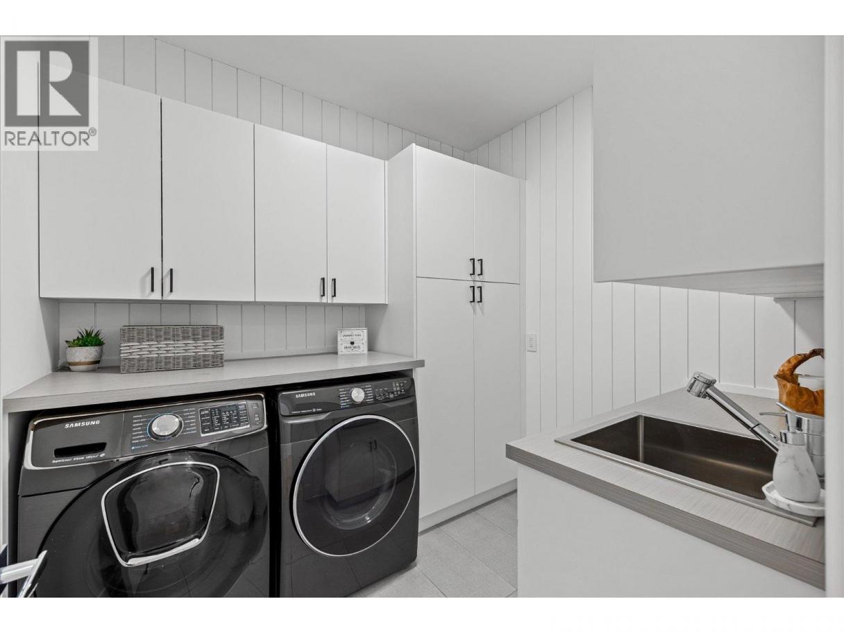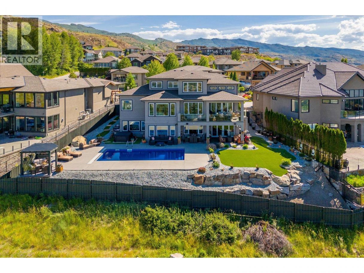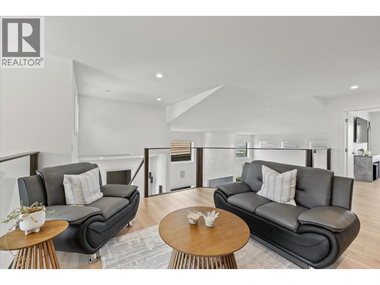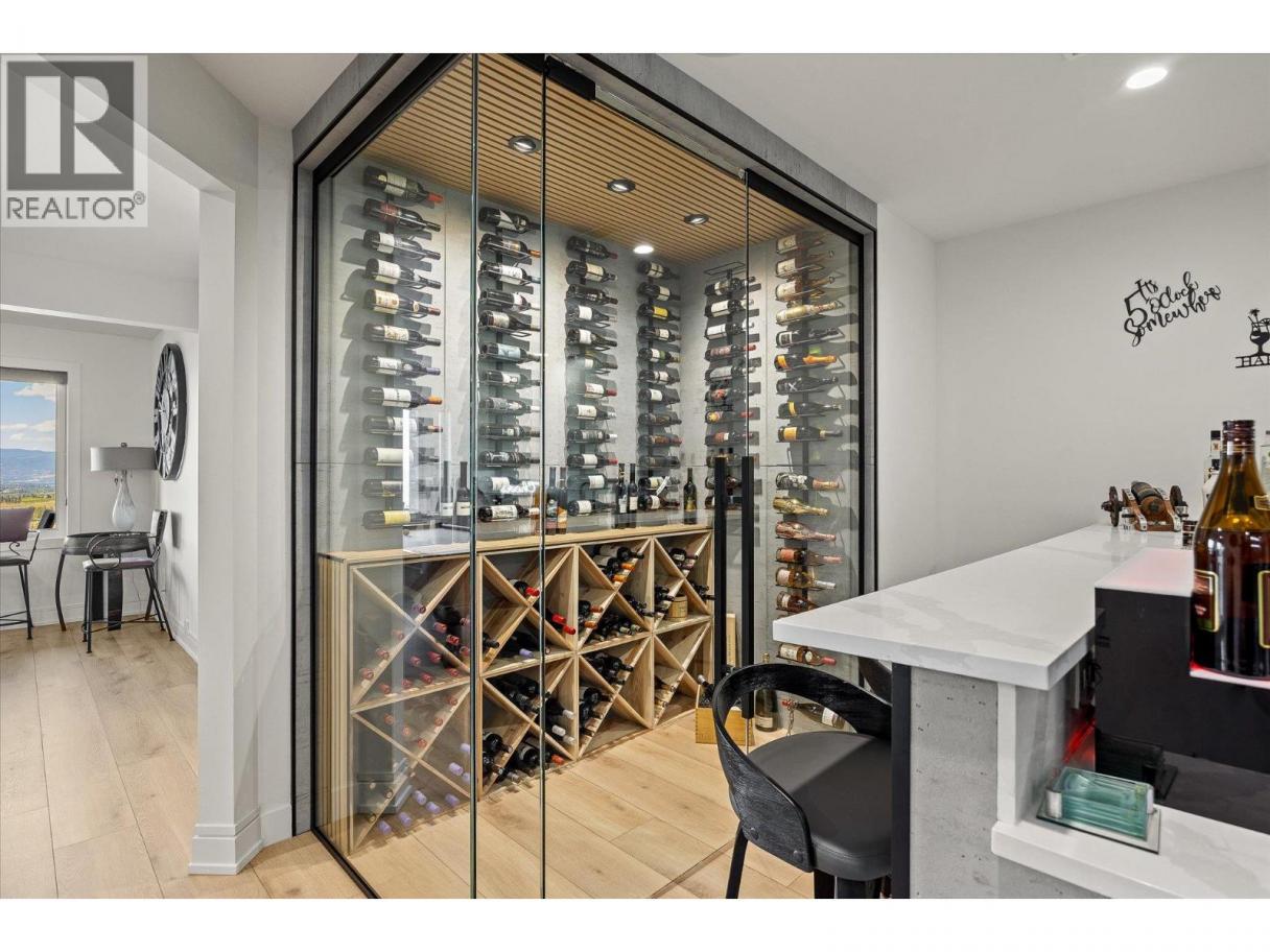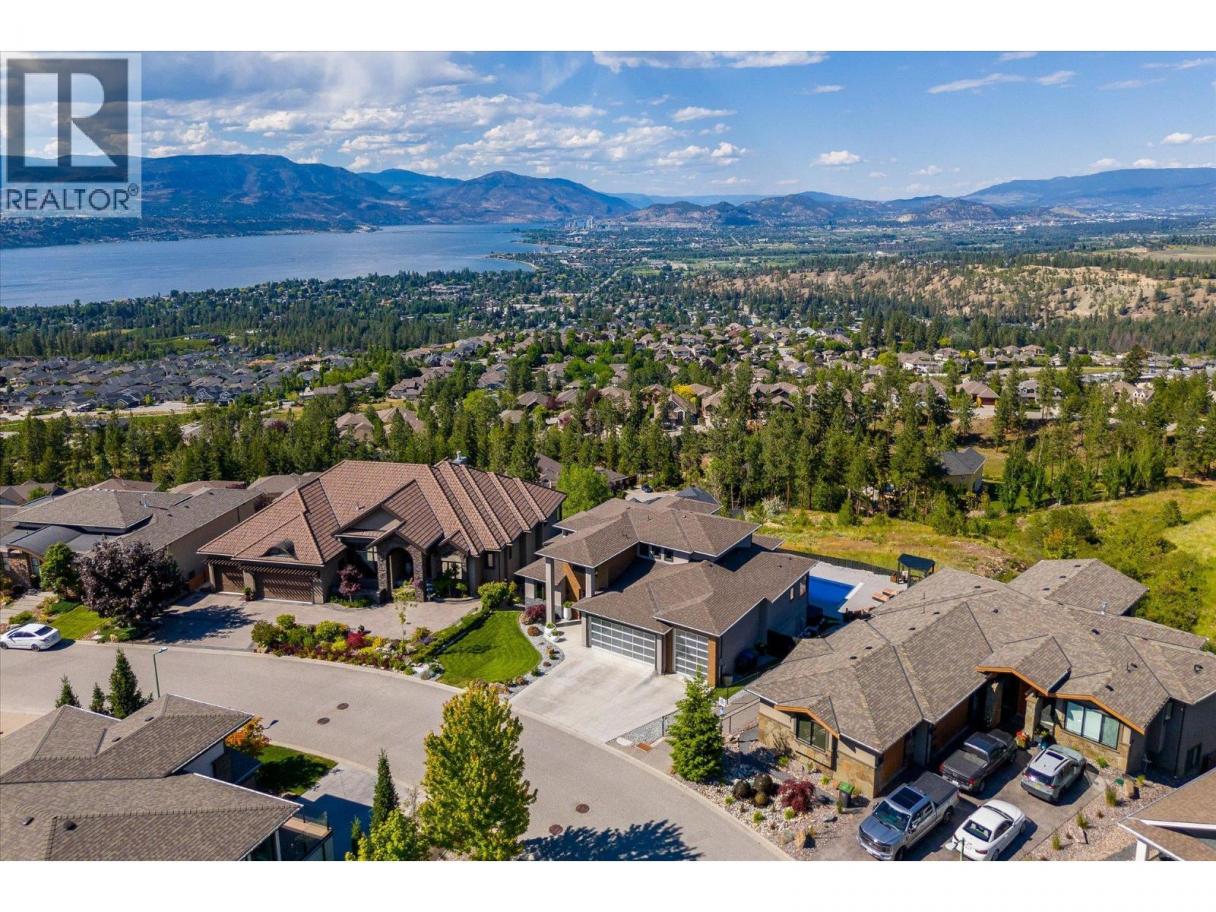 Step into elevated living in this beautifully re-imagined 5-bed + den, 4-bath residence, where luxury, comfort, and panoramic views converge. From the moment you arrive, the grand entry and soaring vaulted ceilings set the tone for a home designed to impress, while the chef’s kitchen, featuring premium appliances and a butler’s pantry, anchors the heart of the main level with style and function. Expansive windows frame breathtaking 180-degree vistas across the city of Kelowna and Okanagan Lake, creating an extraordinary backdrop for everyday living and entertaining. The primary retreat, privately positioned on the main floor, offers a serene escape complete with stunning lake views and a spa-inspired ensuite. Two additional spacious bedrooms upstairs offer comfort and privacy for family and guests. The walk-out lower level is an entertainer’s haven, thoughtfully designed with a refined whiskey tasting room, temperature-controlled wine cellar, sleek bar, generous recreation space, and a state-of-the-art theatre. Step outside to the private backyard and pool area, where the views become more spectacular and unforgettable. Completing this exceptional home are four garage spaces, including a double and tandem garage, with EV charging and abundant room for a boat or RV, along with extensive additional parking for guests. Every element of this residence blends elegance with practicality, offering an unparalleled lifestyle opportunity in one of Kelowna’s most desirable settings. (id:6769)